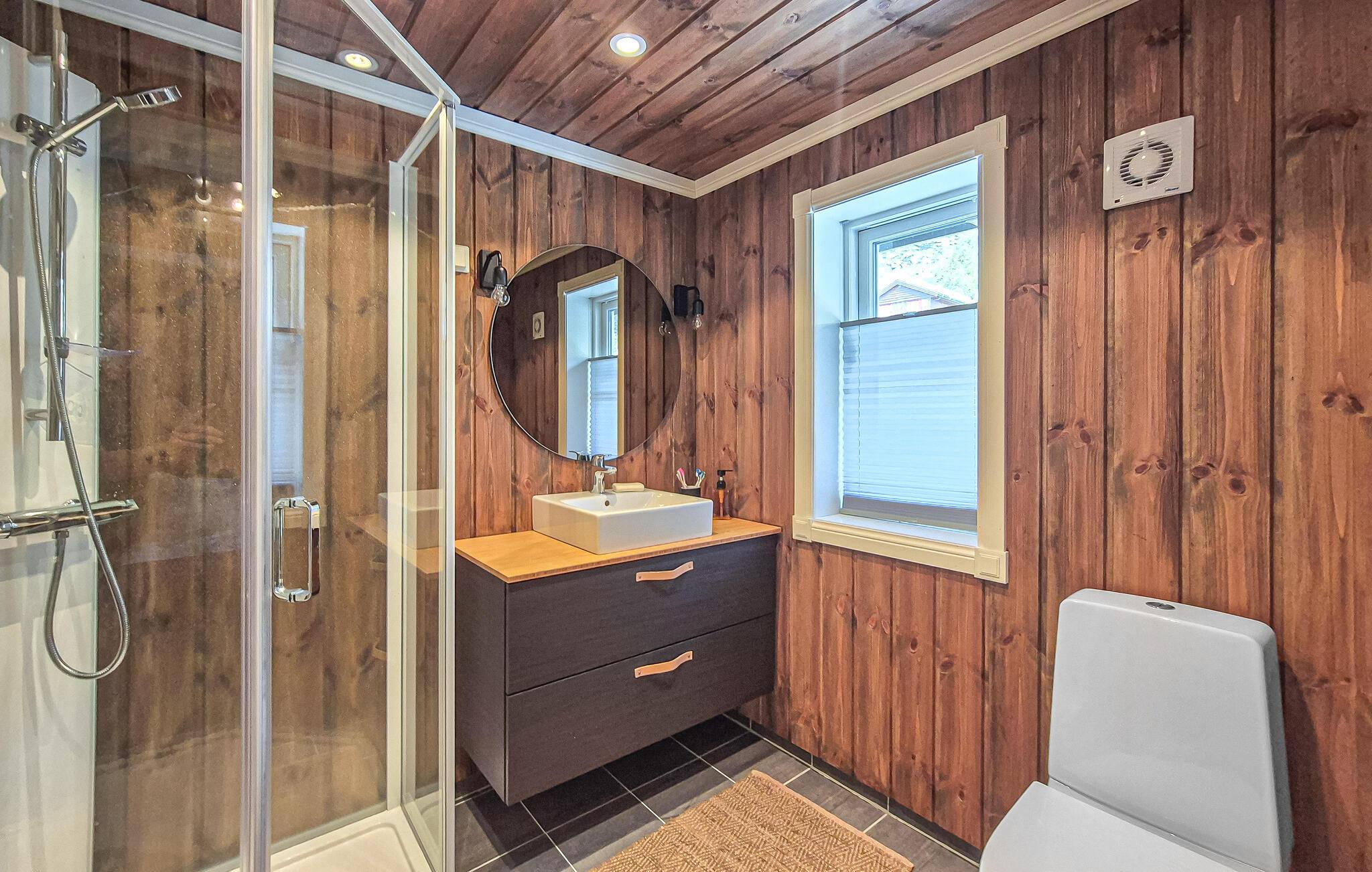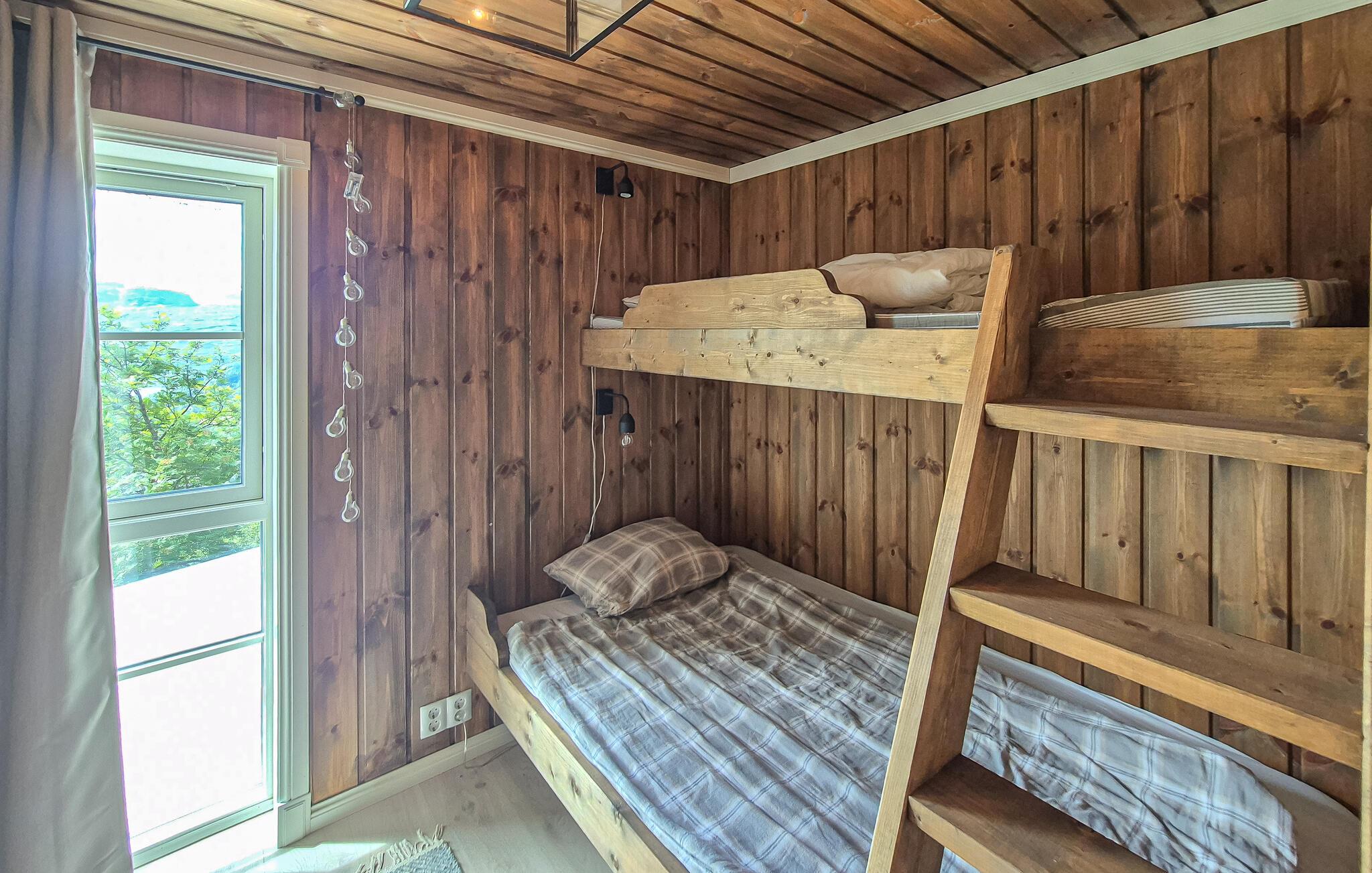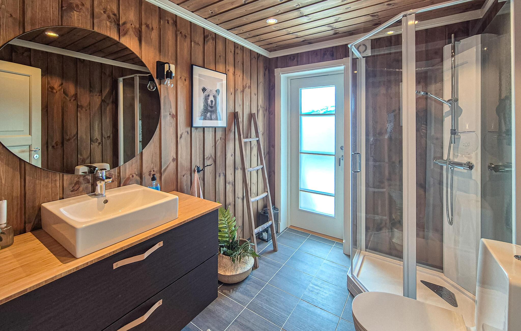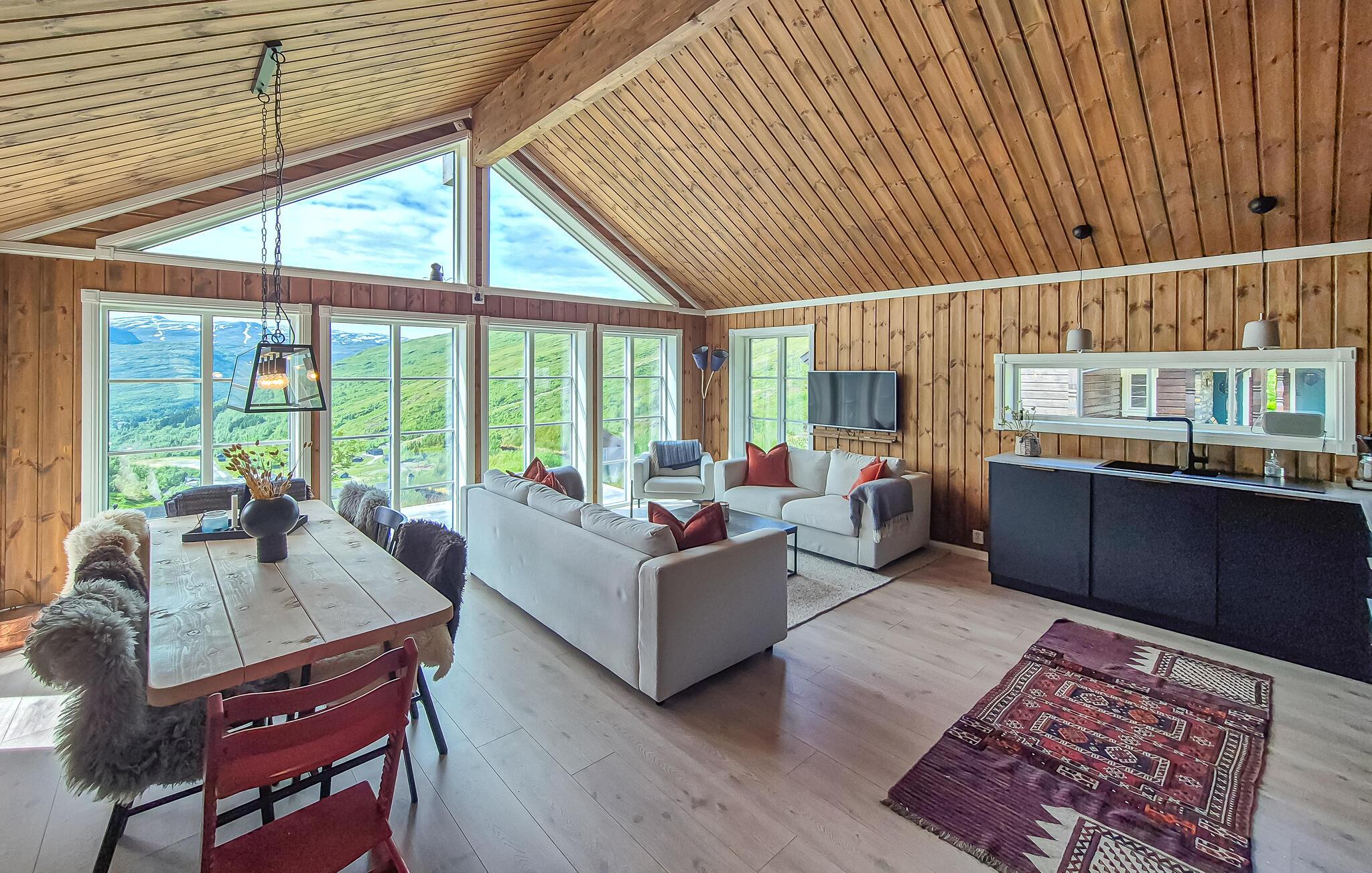 Lad jer fortrylle af den fantastiske udsigt over bjergene i dette feriehus. Det indbydende hus byder velkommen midt i et smukt landskab og er det ideelle sted for en familieferie med aktiviteter i naturen. Når I vågner, lad jeres blik vandre over de maleriske bjerge og gør jer virkelig godt tilpas i de moderne møblerede værelser. Om aftenen inviterer sofaen til at nyde en filmaften eller få en god snak i en venlig atmosfære ved pejsen. Træd ud på terrassen og nyd solen mod en magisk kulisse. Nyd naturen på en vandretur, området byder på adskillige vandrestier, der fører gennem betagende landskaber. Prøv lykken med at fiske i bjergsøerne, Hardangerfjorden er kun en kort køretur væk. Besøg Steinsdalsfossen-vandfaldet, Norheimsund med sin smukke sandstrand eller det lokale historiecenter og Fyksesund ved Hardangerfjorden. Glæd jer til en afvekslende ferie i dette komfortable feriehus.