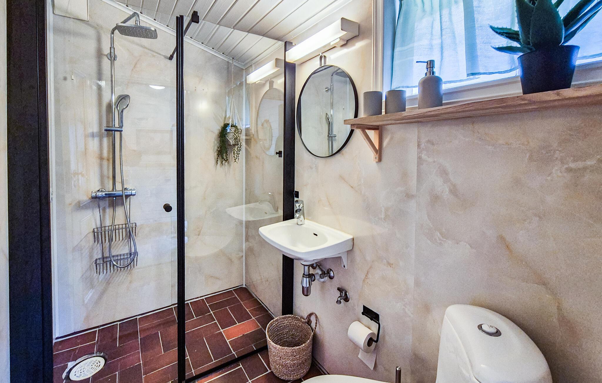Badeværelse (nr. 1) - WC. Varmt og koldt vand. Bruser