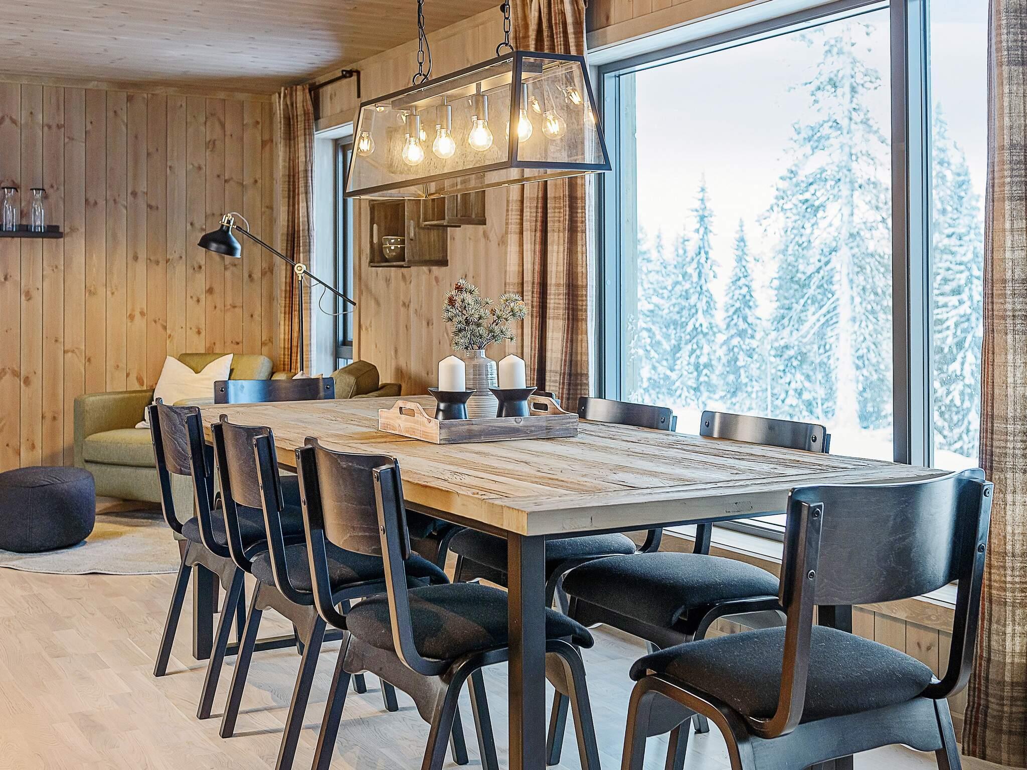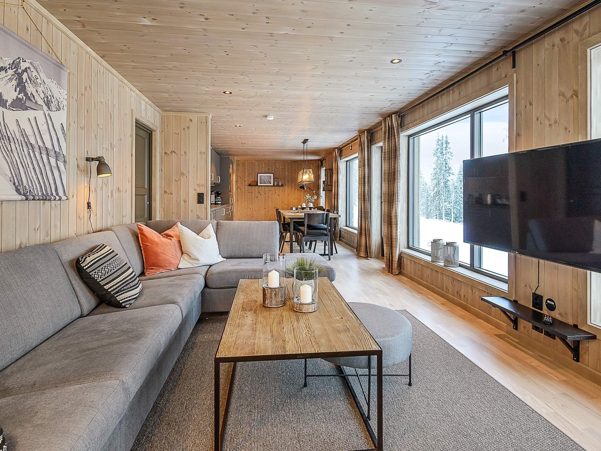 Etter en aktiv dag i naturen, som bokstavelig talt ligger rett utenfor døren, kan du slappe av i saunaen eller nyte varmen fra peisovnen i stuen. Her kan du lene deg tilbake i sofaen og nyte den fantastiske utsikten fra de mange panoramavinduene i oppholdsstuen. Du kan også bare koble av foran TV’en hvis du er mettet etter dagens naturopplevelser.