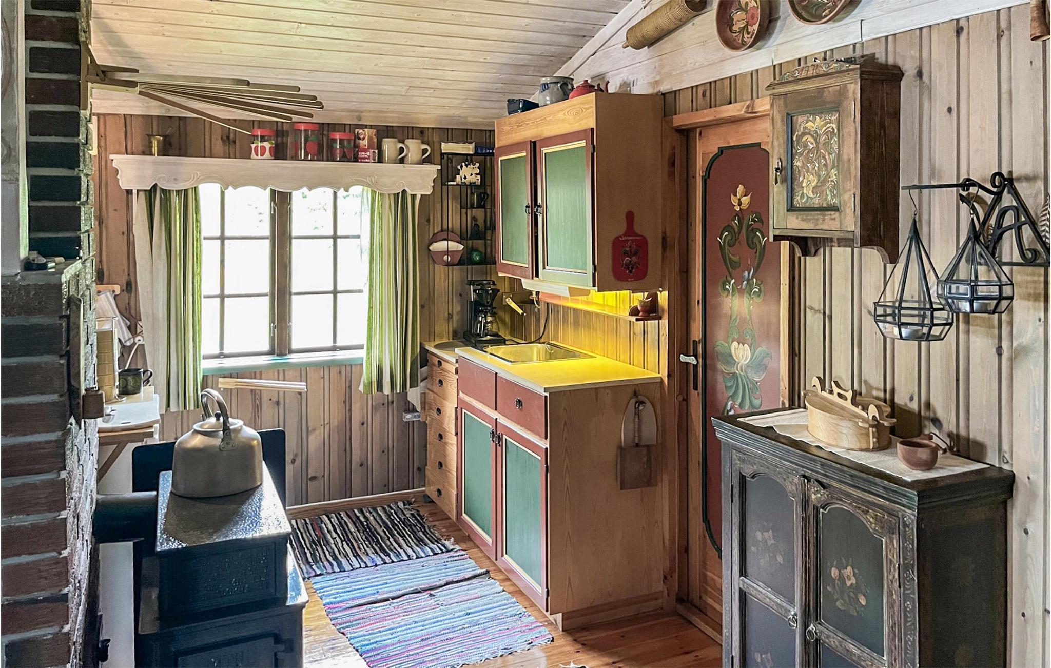 Dette feriehus, beliggende tæt på skoven, med en hjemlig atmosfære er en god base for aktive feriegæster og lystfiskere! Huset er fyldt med hyggeligt nips og kreative indslag som de smukt dekorerede døre. Tegn jeres vandrerute på kortet ved spisebordet om morgenen, og så er I afsted! Efter en lang dag indbyder kaffebordet til en sjov eftermiddag med brætspil og måske i aften i sofaen til en snak om morgendagens fisketur? Hvis I vil tilbage til naturen på ferie, er dette stedet for jer. Foran døren finder I et magiske bjerglandskab at opdage og en smuk sø til fisketure og svømning.