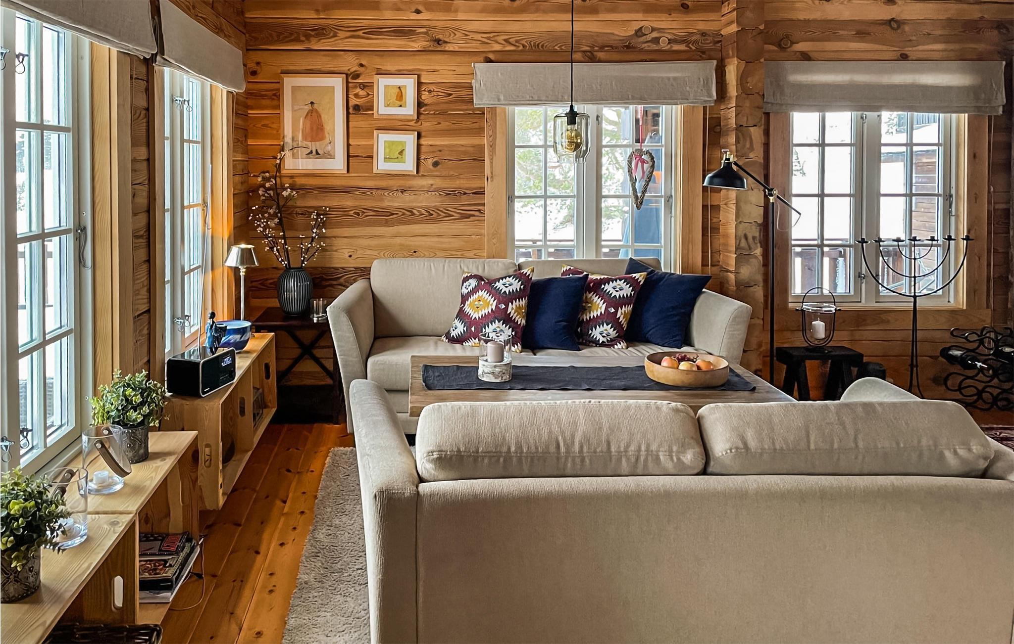 Velkommen til dette skønne feriehus med fantastisk beliggenhed ved Huvtjønnleiken med udsigt til Skofjellet og Breilivatn. Der er ingen tvivl om, hvorvidt I vil have det rart her. Fordi husets chikke, rustikke og hyggelige atmosfære er magisk og vil fortrylle alle i jeres familie. Huset er af høj kvalitet, som kalder på hvile og afslapning i opholds- og soveafdelingerne. Nyd en varm pejs, læs en god bog i en af ??de mange sofaer eller lav jeres yndlingsretter i køkkenet.