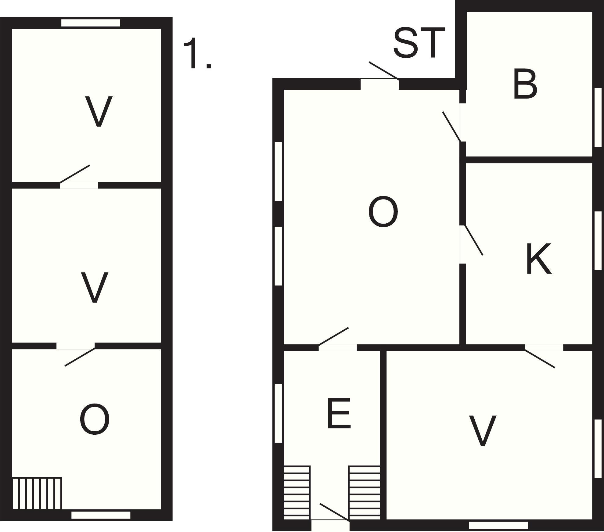 2 Opholdsstue: 18 m2, brændeovn, radio, tv