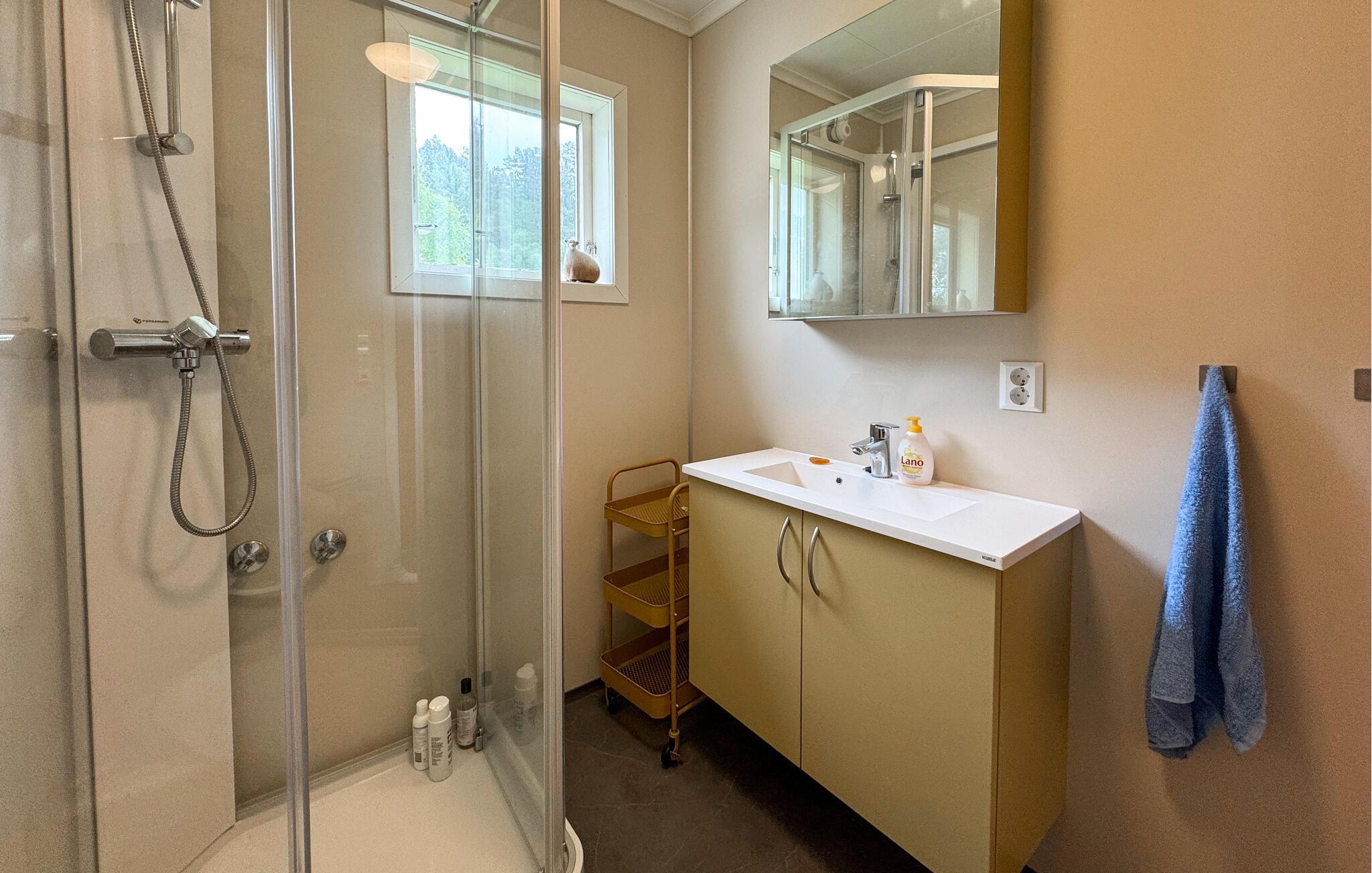 Gå en tur til den nærliggende fiskesø, hvor I kan svømme om sommeren. Udforsk Åkrafjorden i kajak og beundr det imponerende Langfoss-vandfald. Besøg charmerende Skånevik med dens hyggelige caféer og kunstgallerier, eller tag en tur til forlystelsesparken Tysværtunet i Aksdal.