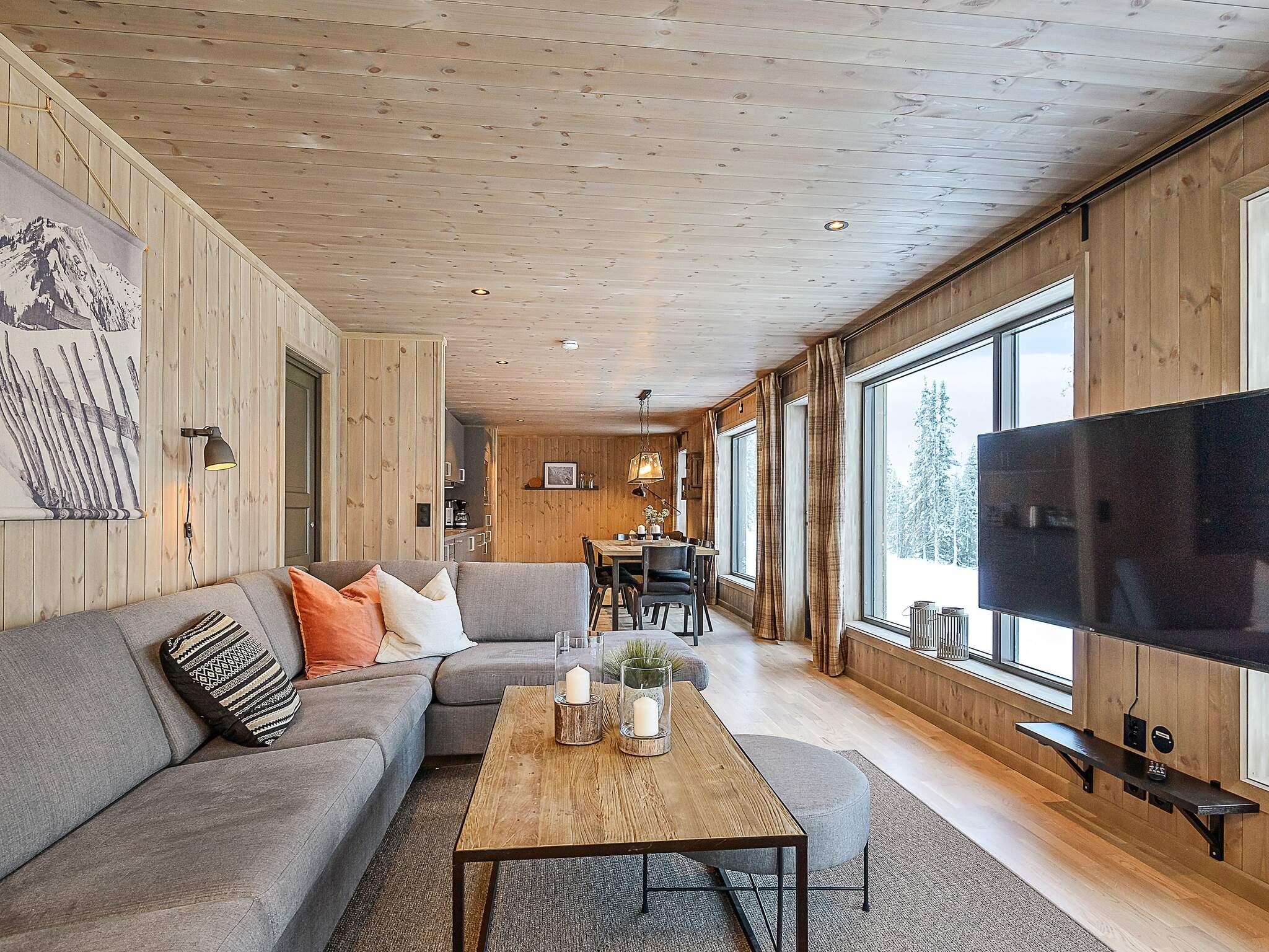 Etter en aktiv dag i naturen, som bokstavelig talt ligger rett utenfor døren, kan du slappe av i saunaen eller nyte varmen fra peisovnen i stuen. Her kan du lene deg tilbake i sofaen og nyte den fantastiske utsikten fra de mange panoramavinduene i oppholdsstuen. Du kan også bare koble av foran TV’en hvis du er mettet etter dagens naturopplevelser.