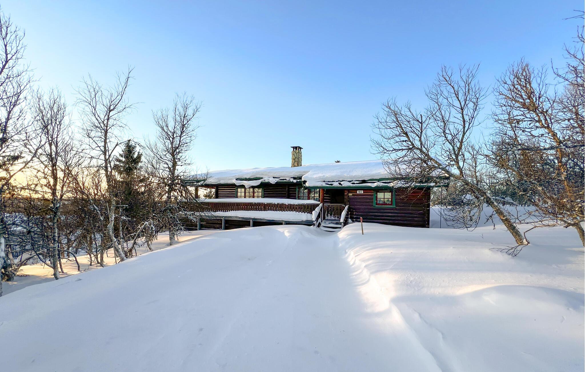 Hyggelig, rustik træhytte i bjergområdet Venabygdsfjell lige ved indgangen til Rondane Nationalpark.