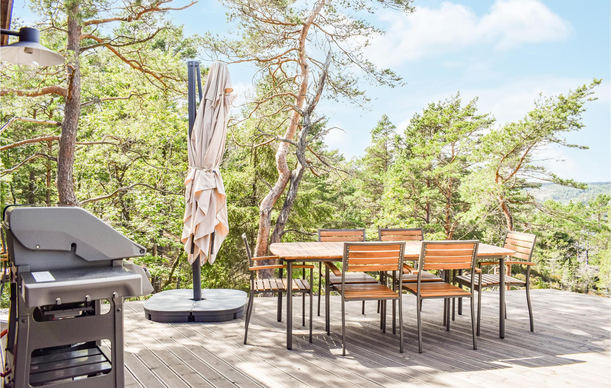 Huset har en smuk terrasse med flere siddepladser, hvor I kan nyde timerne til langt ud på natten. Husejeren tilbyder padlebrætter, hvis I har lyst til en tur på vandet.