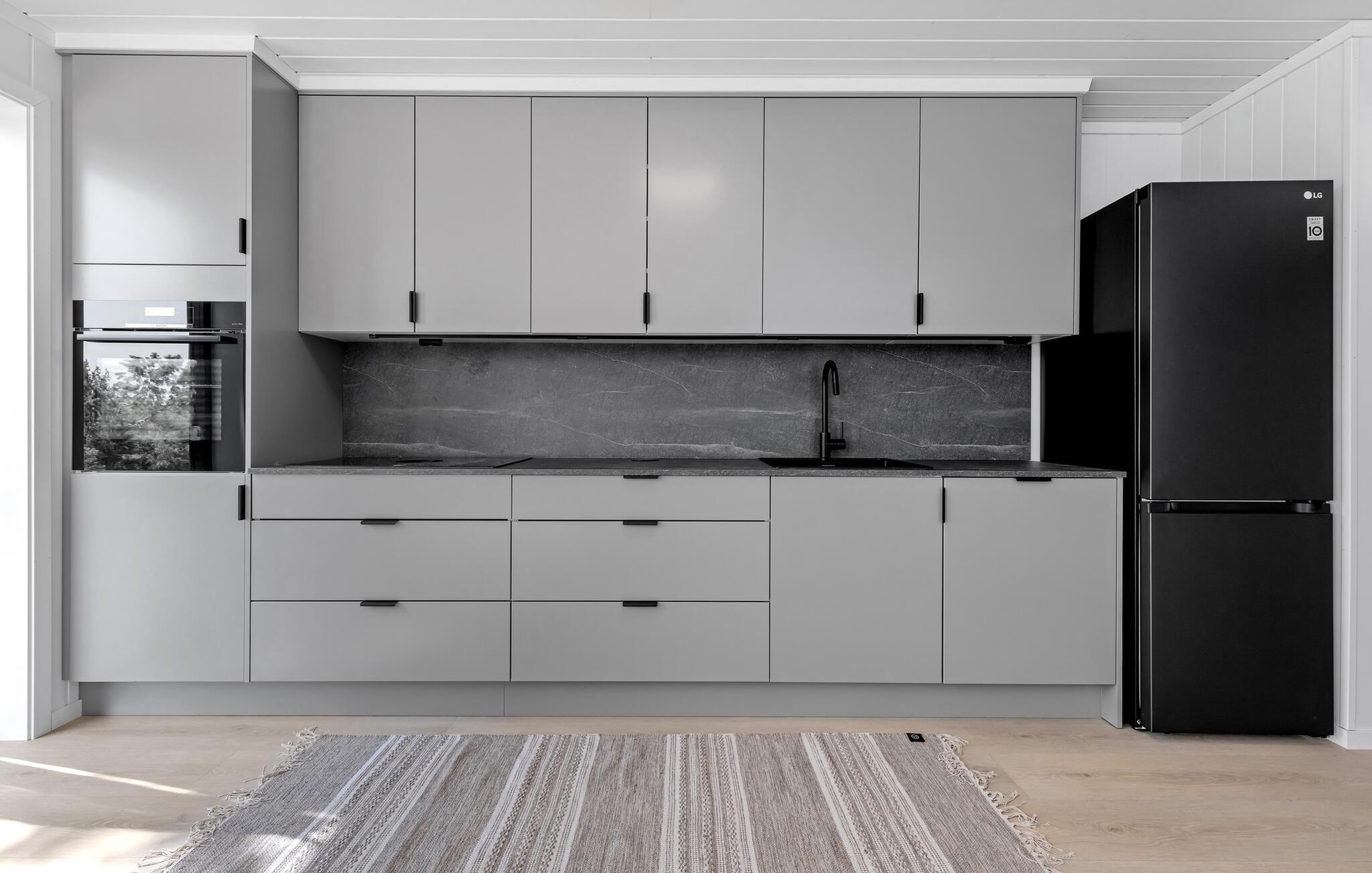 Jeres moderne feriehus nær Risør ligger indlejret i den rolige norske natur og byder på rummelige udendørsarealer og en hyggelig terrasse, hvor I kan nyde stilheden og udsigten over de omkringliggende skove. Slå jer ned i de komfortable siddemøbler og slap af med en kop kaffe eller te. Den lyse, åbent designede opholdsstue indbyder til afslapning og tilbyder jer det perfekte sted at lade op efter en dag fyldt med aktiviteter. Sæt jer ved spisebordet og lad de store vinduer trække naturen ind i rummet. Tilbered jeres yndlingsretter i det moderne køkken, og nyd dem sammen med familie eller venner.