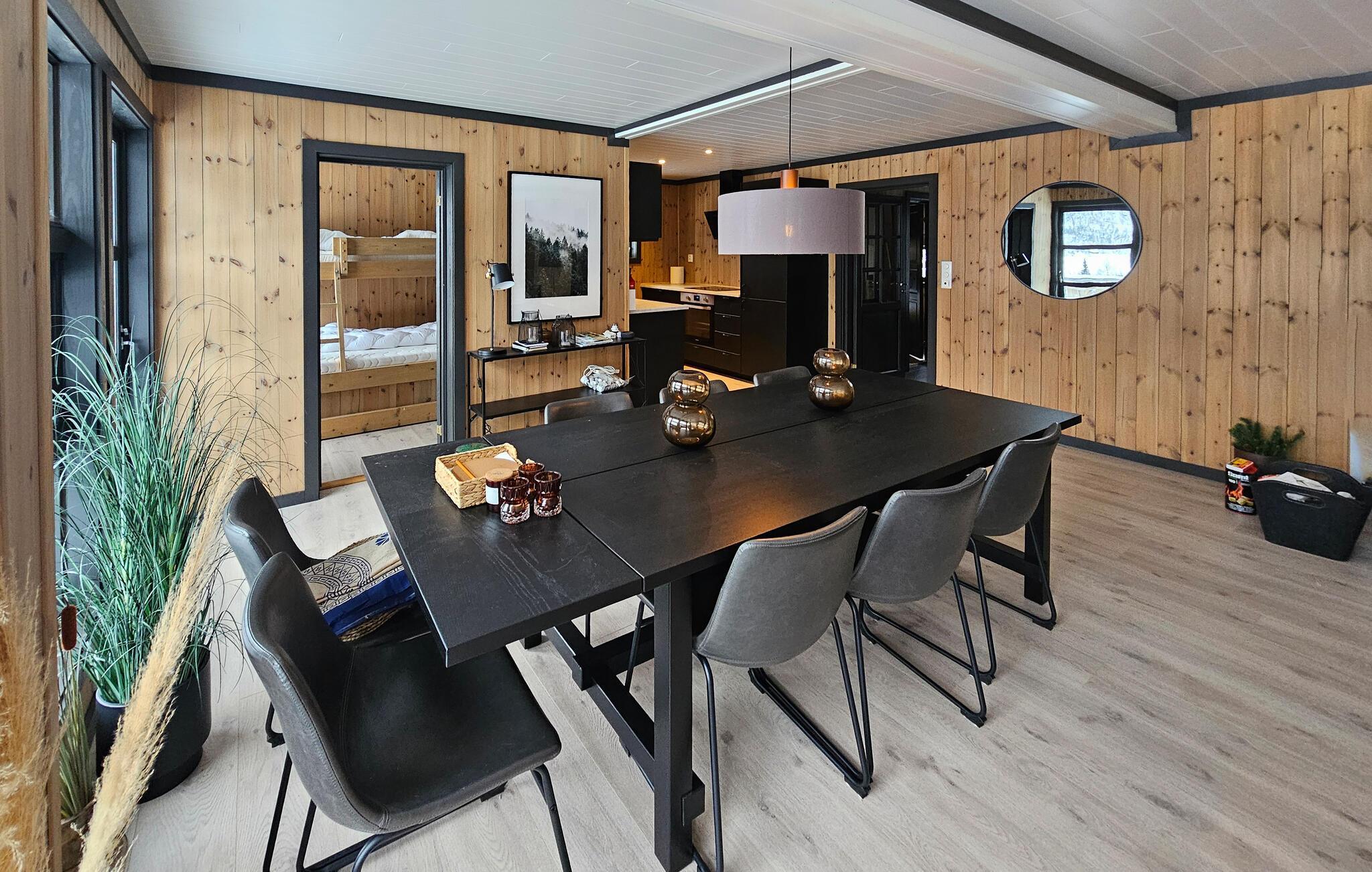 Velkommen til denne hyggelige ferielejlighed, hvor komfort, design og Norges majestætiske natur blander sig harmonisk. Flygt fra hverdagen og nyd en uforglemmelig pause med jeres kære i dette hyggelige tilflugtssted. Lav mad i det elegante, fuldt udstyrede køkken og nyd dagens måltider ved det rummelige spisebord med udsigt over det imponerende landskab. Så gør jer godt tilpas på de komfortable lædersofaer foran den knitrende pejs, mens I nyder den spektakulære udsigt eller afslutter aftenen med en afslappende afslapning med en god bog eller en film.