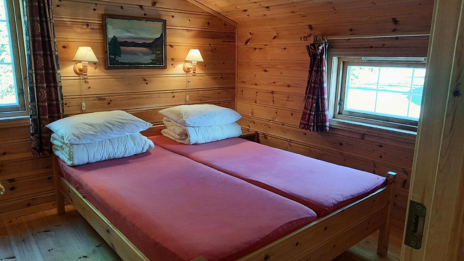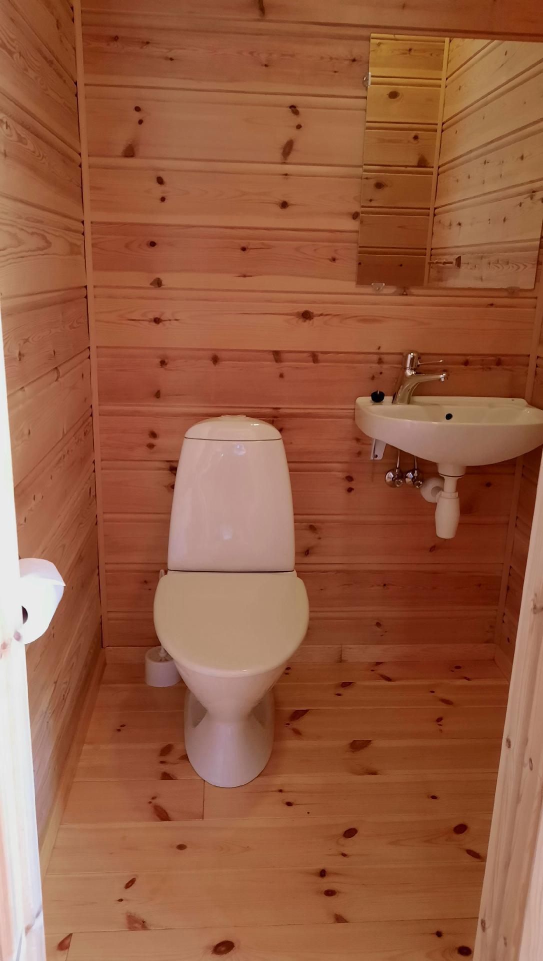 The cabin has three bedrooms that can accommodate up to six people, a spacious, open-plan living room with a kitchen, a bathroom, and a guest toilet.