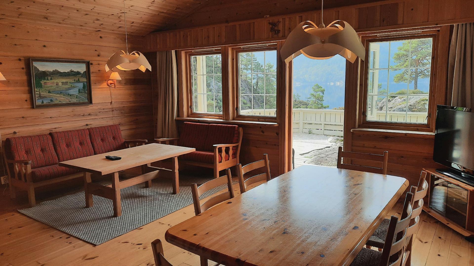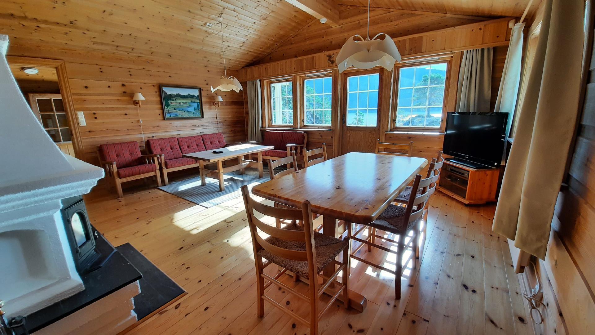 Welcome to our charming, classic Norwegian cabin – the perfect place for a relaxing holiday in beautiful surroundings. Here you can enjoy the tranquility of nature and a variety of outdoor activities. The bright rooms with wood paneling create a cozy and relaxed atmosphere. From the dining table, you can admire the breathtaking view of the forest and fjord. In the evenings, you can relax by the fireplace and listen to the soothing crackling of the flames.