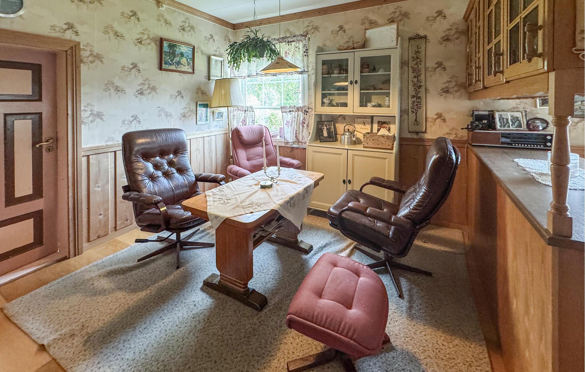 Glæd jer til afslappede dage i dette rummelige hus, der giver jer en hyggelig ramme for en afslappende pause. Træbeklædte vægge i forskellige nuancer, komfortable sofaer, rustikke møbler og brændeovne skaber en behagelig atmosfære, hvor I straks føler jer hjemme. Start dagen med en duftende kop kaffe, lyt til jeres yndlingsmusik, eller tryl i fællesskab lækre retter frem til hele familien.