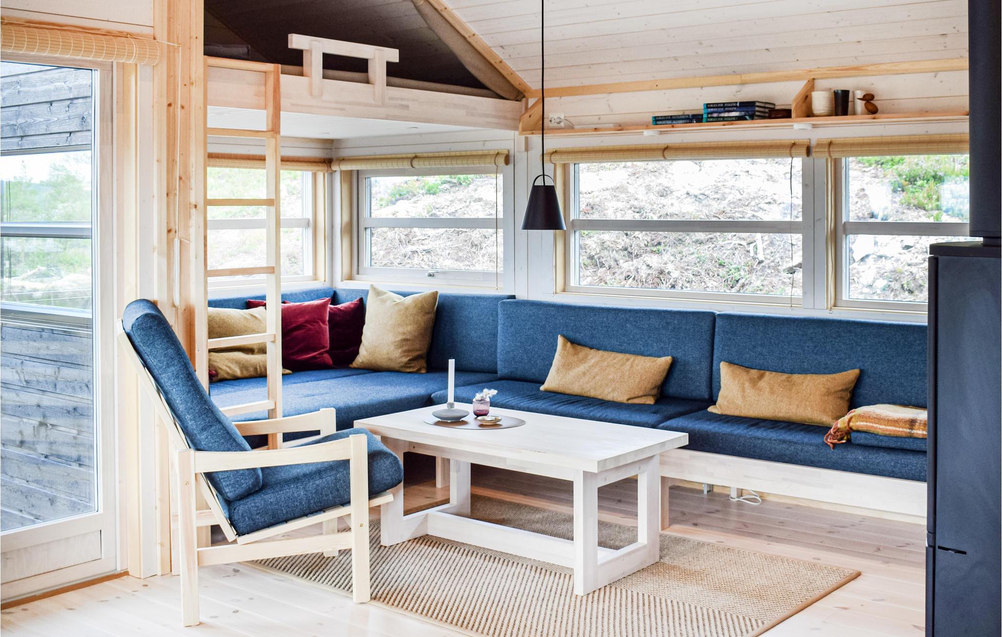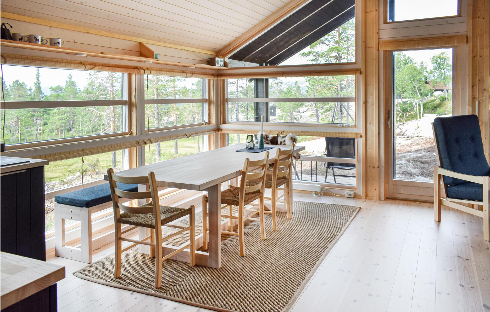 Huset er flot indrettet og har mange vinduer, så der er et dejligt lysindfald. I kan derfor nyde en dejlig morgenmad, mens I kigger ud på de smukke omgivelser. Huset kan rumme mange gæster og er udstyret med alle faciliteter. Fra den åbne grund er der en vidunderlig udsigt til bjergene, og huset har en overdækket terrasse, som giver jer mulighed for at sidde med morgenkaffen udendørs i al slags vejr. Udenfor hytten er der gode vandreruter både til sommeren og vinteren.