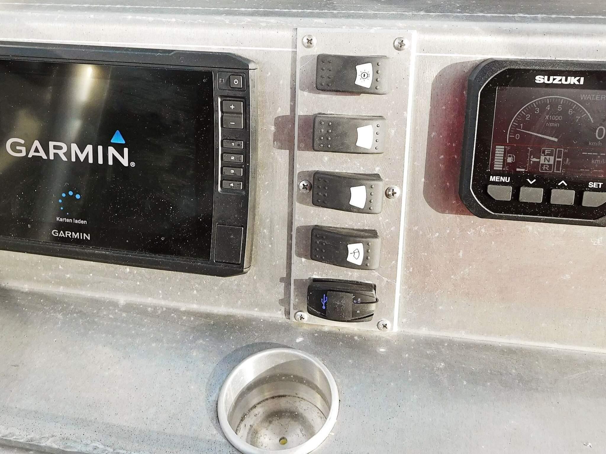 23 fots GJ750/Suzuki 300 4-takt (45 knop), Garmin 92sv kartplotter/gps/ekkolodd/fishfinder, hydraulisk styring, 10 stangholdere, 200l fast tank