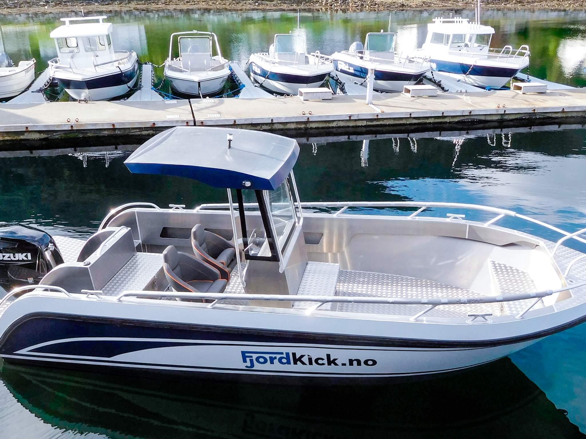 Eier leier ut båter, du kan velge mellom størrelser på 18-24 fot og 25-200 hk motor. Drivstoff fylles på kaien.