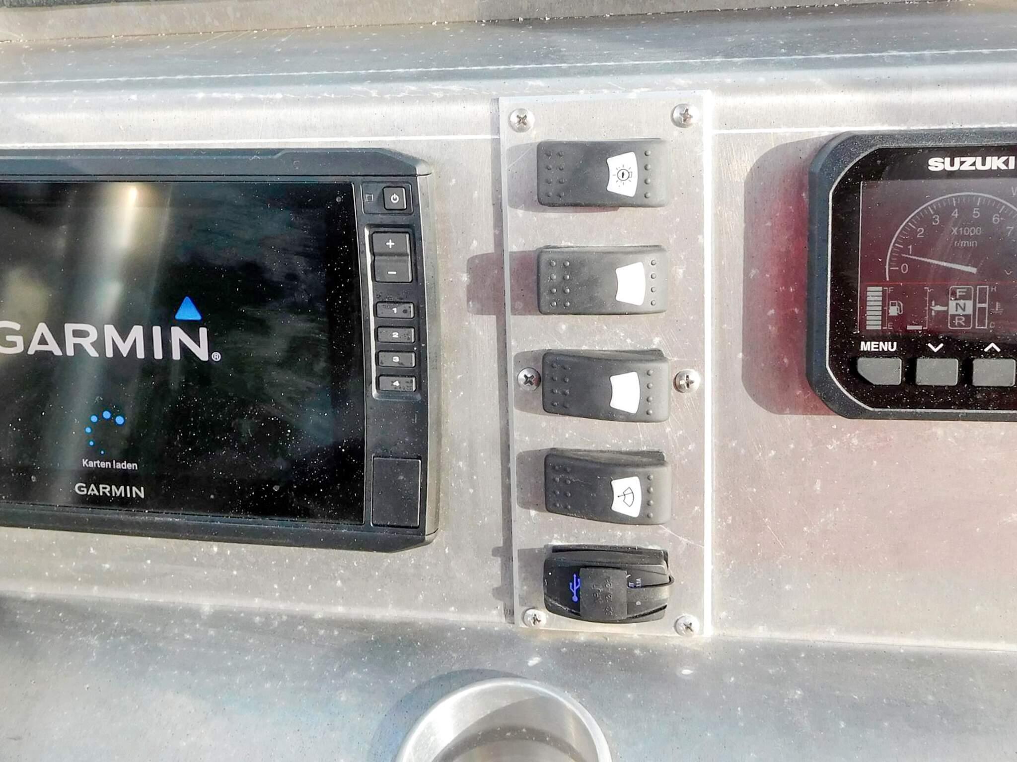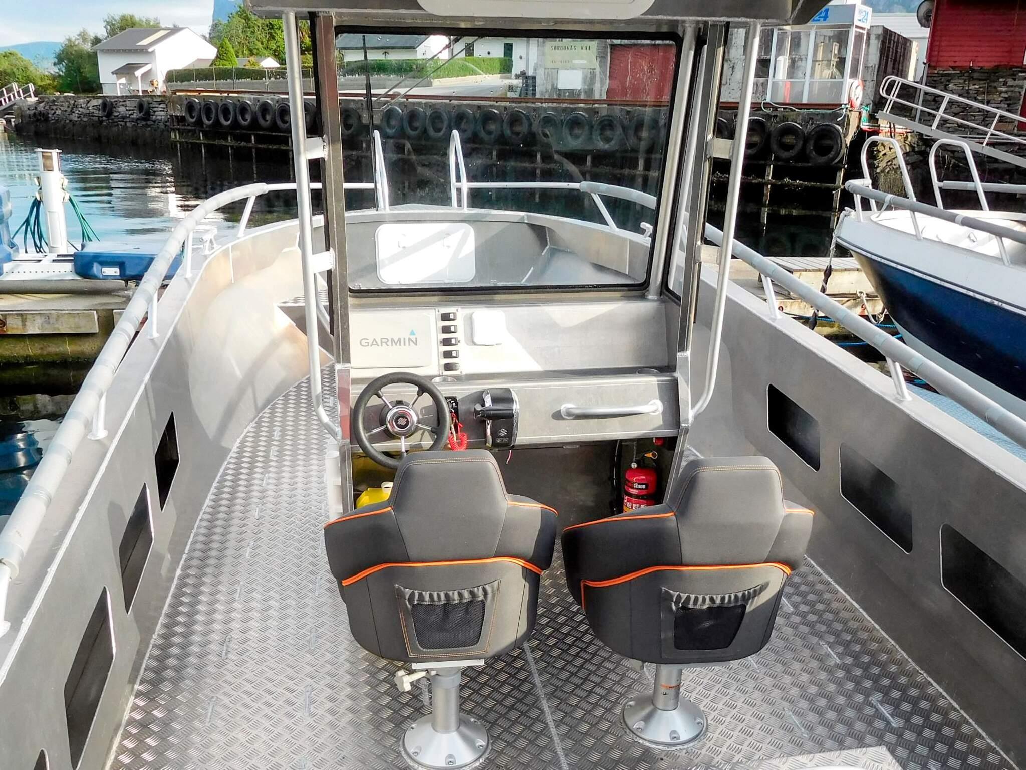 23 fots GJ750/Suzuki 300 4-takt (45 knop), Garmin 92sv kartplotter/gps/ekkolodd/fishfinder, hydraulisk styring, 10 stangholdere, 200l fast tank