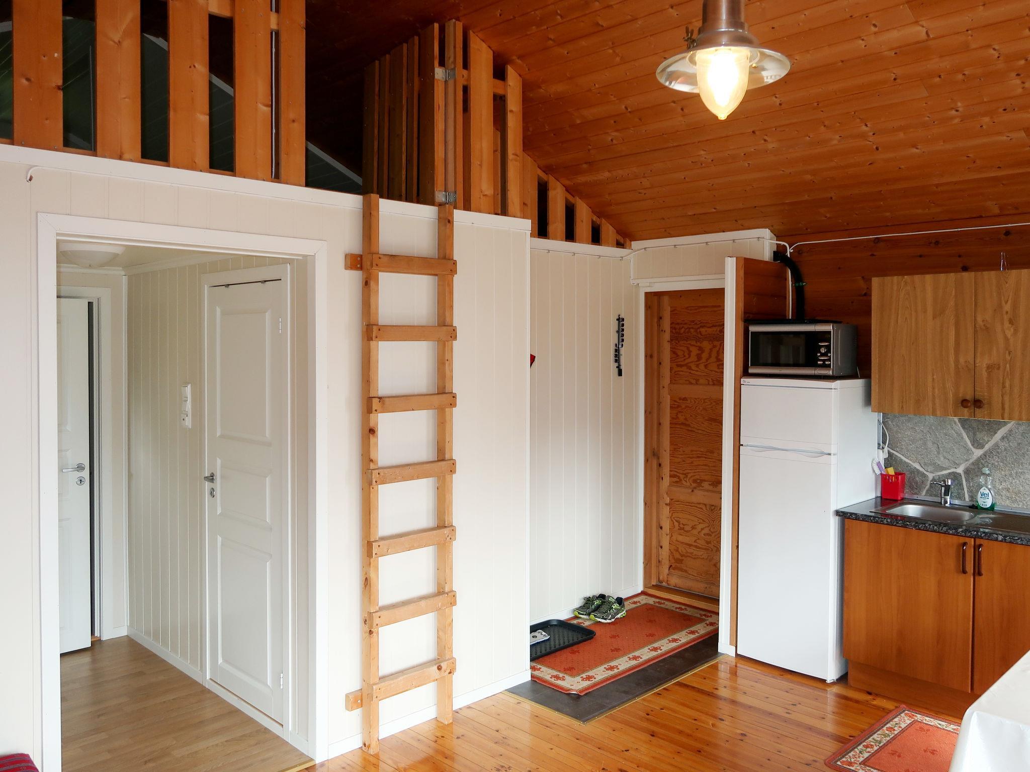 "Oasen", 3-room house 60 m2 on 2 levels. Partly renovated in 2016, cosy furnishings: living/dining room with dining table, satellite TV and international TV channels. Exit to the terrace. 2 rooms, each room with 1 double bed (150 cm, length 200 cm). Open kitchen (4 ceramic glass hob hotplates, toaster, kettle, microwave, freezer, electric coffee machine). Exit to the terrace. Shower/WC. Upper floor: (ladder) open gallery with sloping ceilings with 2 sleeping facilities. Electric heating. Terrace. Terrace furniture, barbecue (portable), box-room. View of the sea and fjord. Facilities: washing machine, children's high chair, baby cot. Internet (WiFi, free). Please note: maximum 1 pet/ dog allowed. Smoke alarm, fire extinguisher. Freezer approx. 350 l. Instead of an enclosed bedroom, some sleeping areas are located in an open-plan area (gallery, alcove, etc.). 924531169