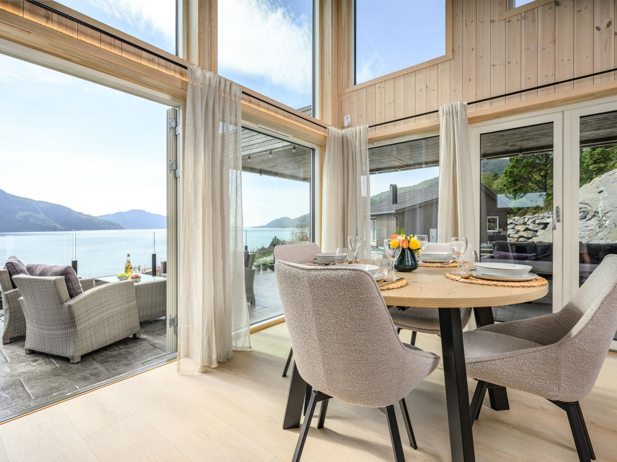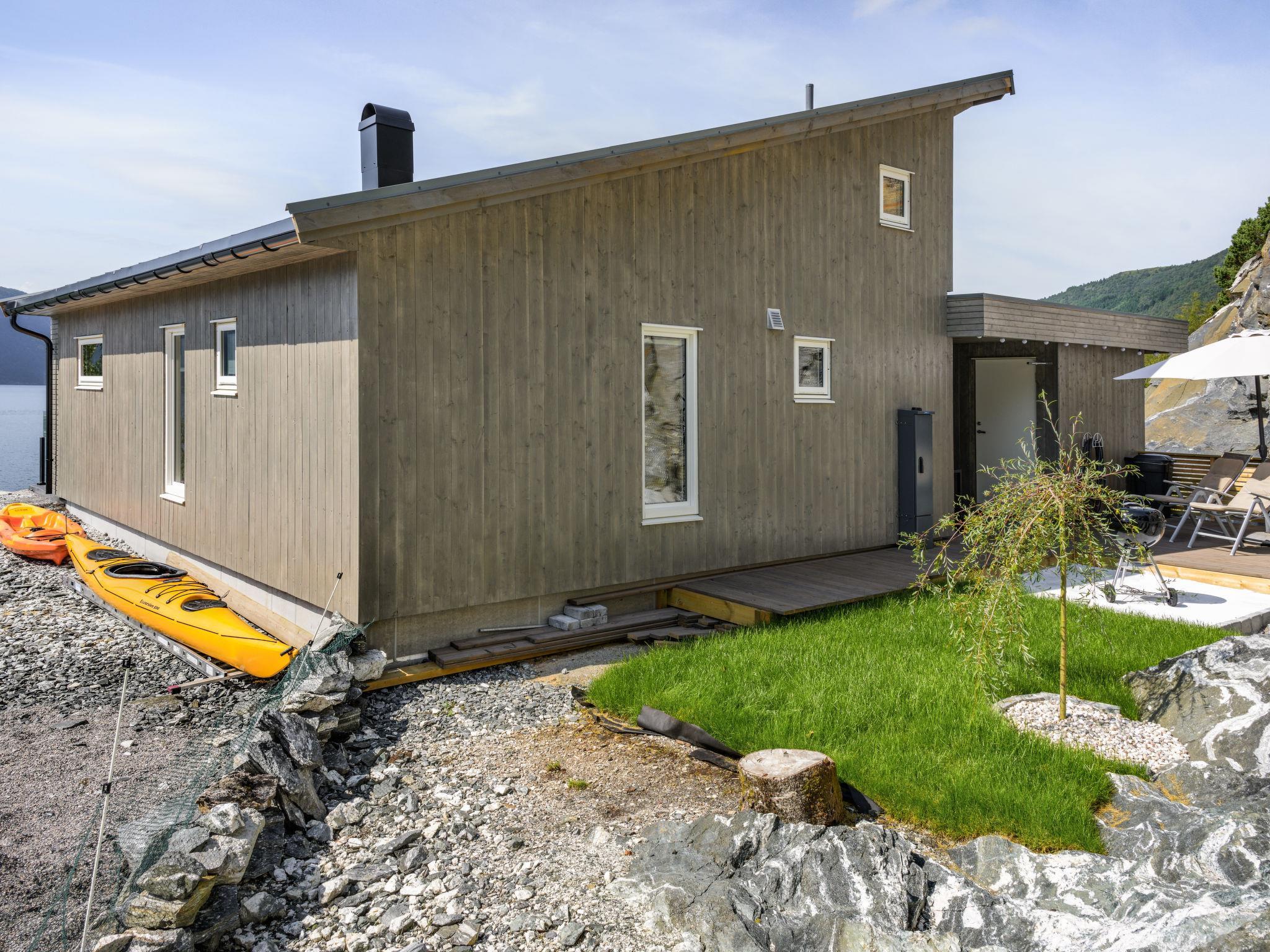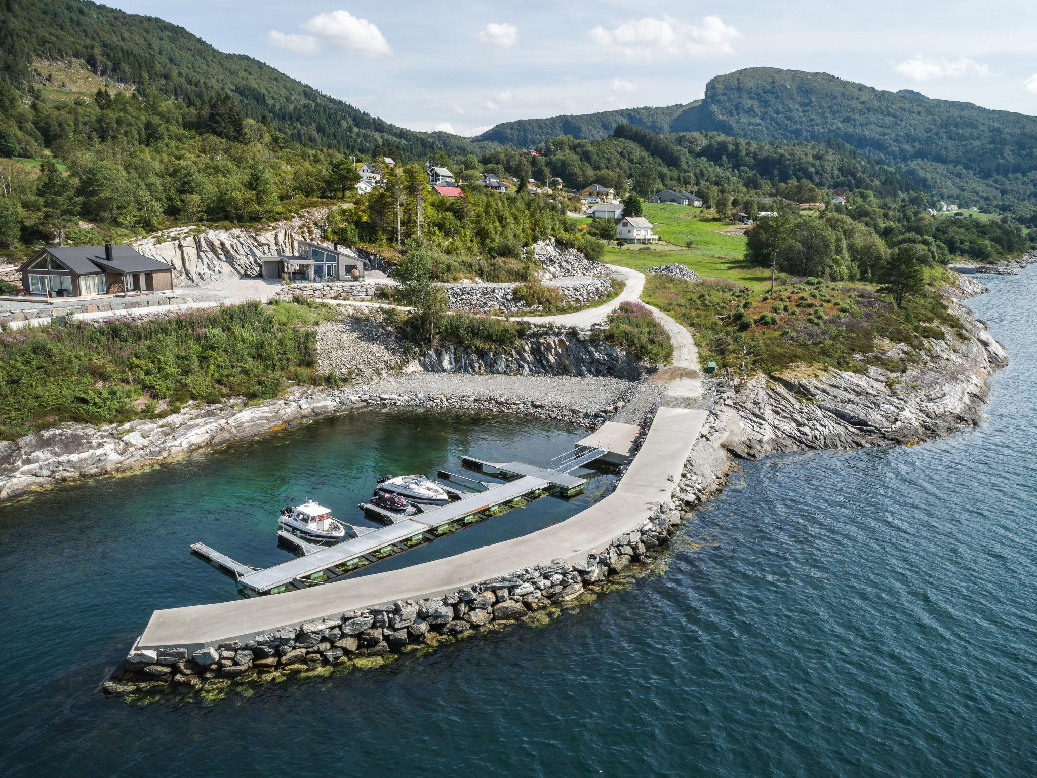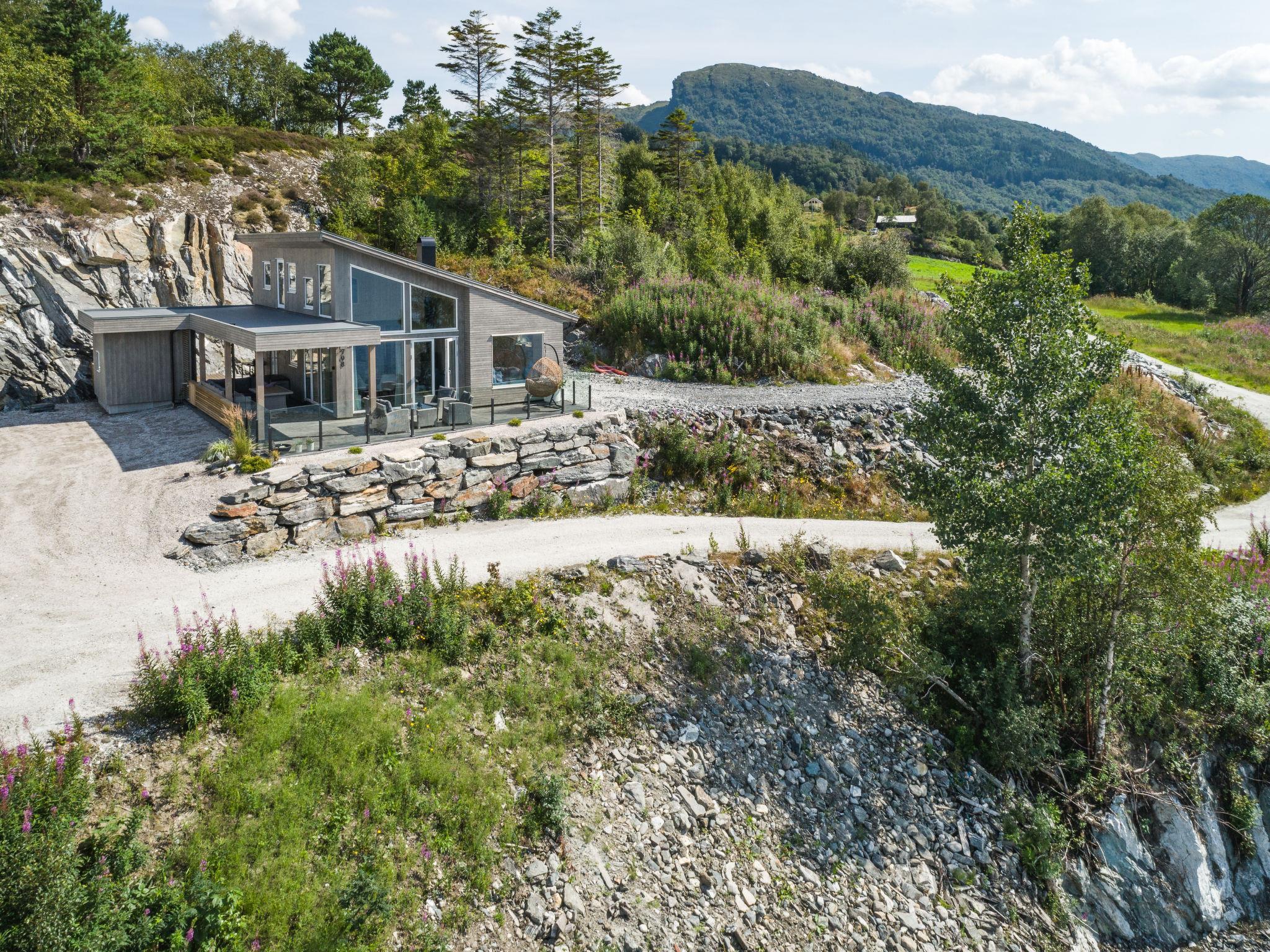 Modern, beautiful house "Hildebu", 10 m a.s.l., 2 storeys, built in 2023. 38 km from the centre of Dale, 80 km from the centre of Førde, at the seaside, at the fjord. Private: natural state property 500 m2, parking (for 2 cars) on the premises. Grocery 2 km, supermarket 2 km, bus stop "Øn Skule" 400 m, ferry "Bergen" 144 km. Walking paths from the house 100 m, fishing possibilities 50 m. Nearby attractions: Fjordkick Båtuteie 1,6 km.