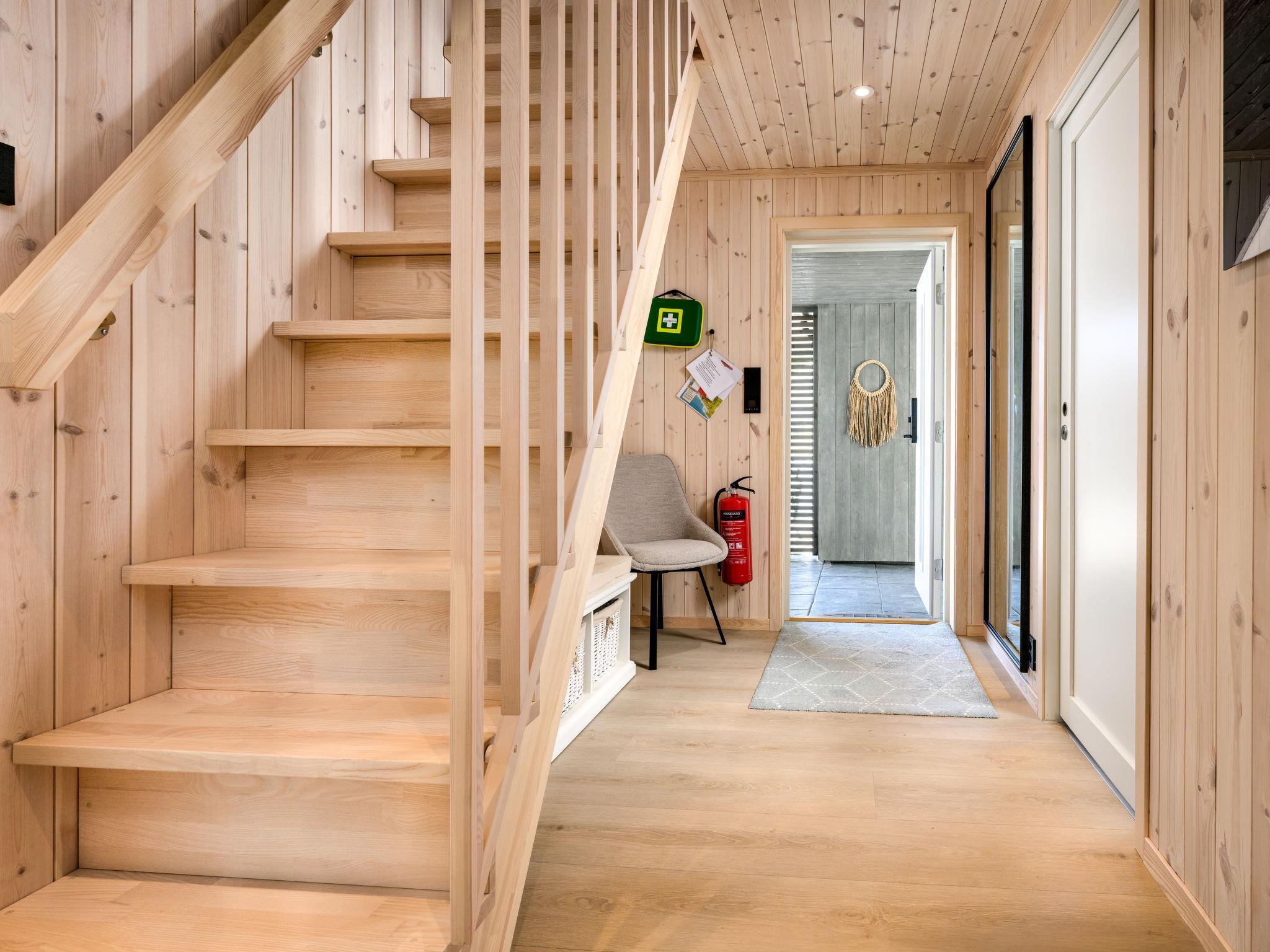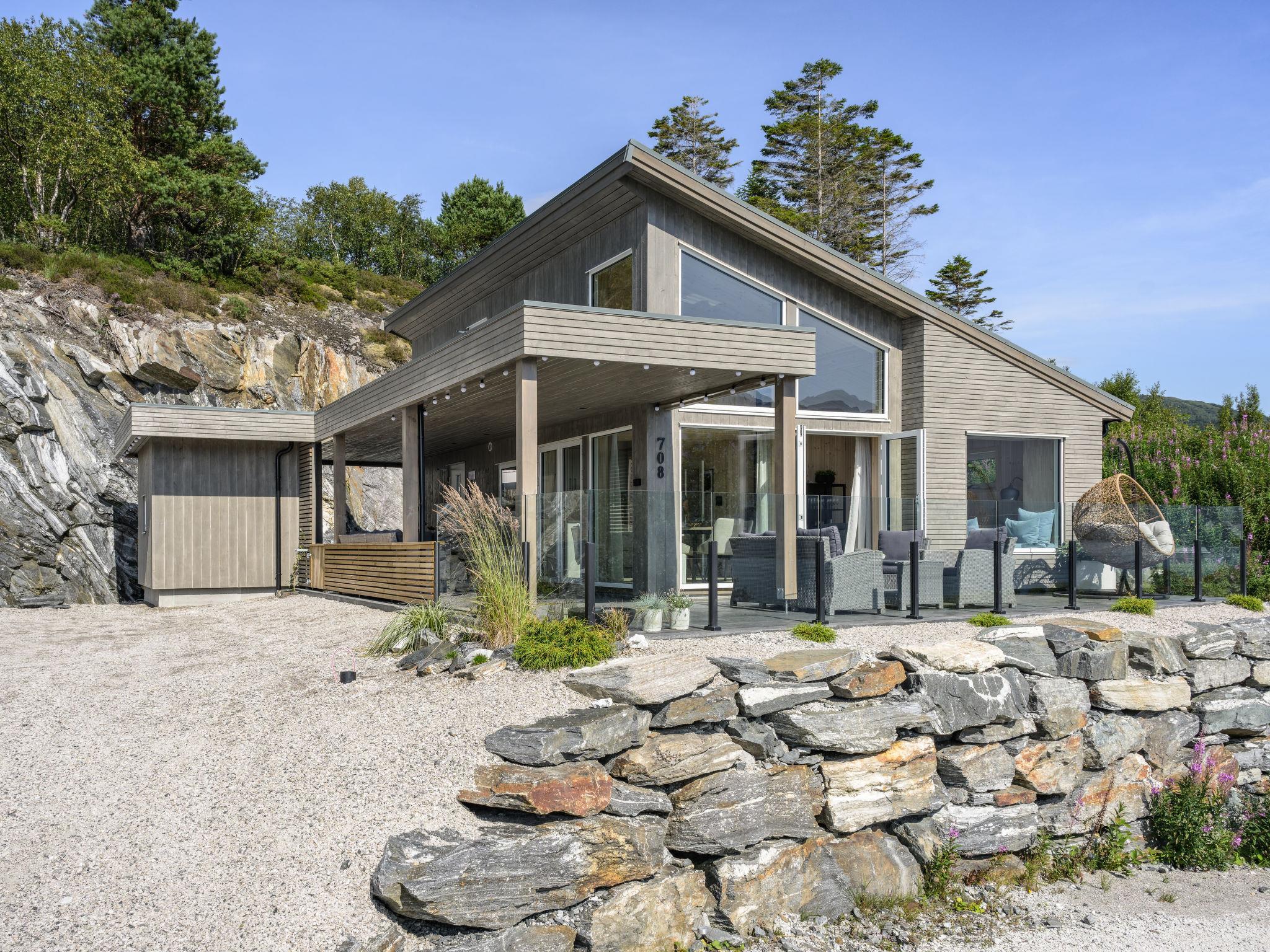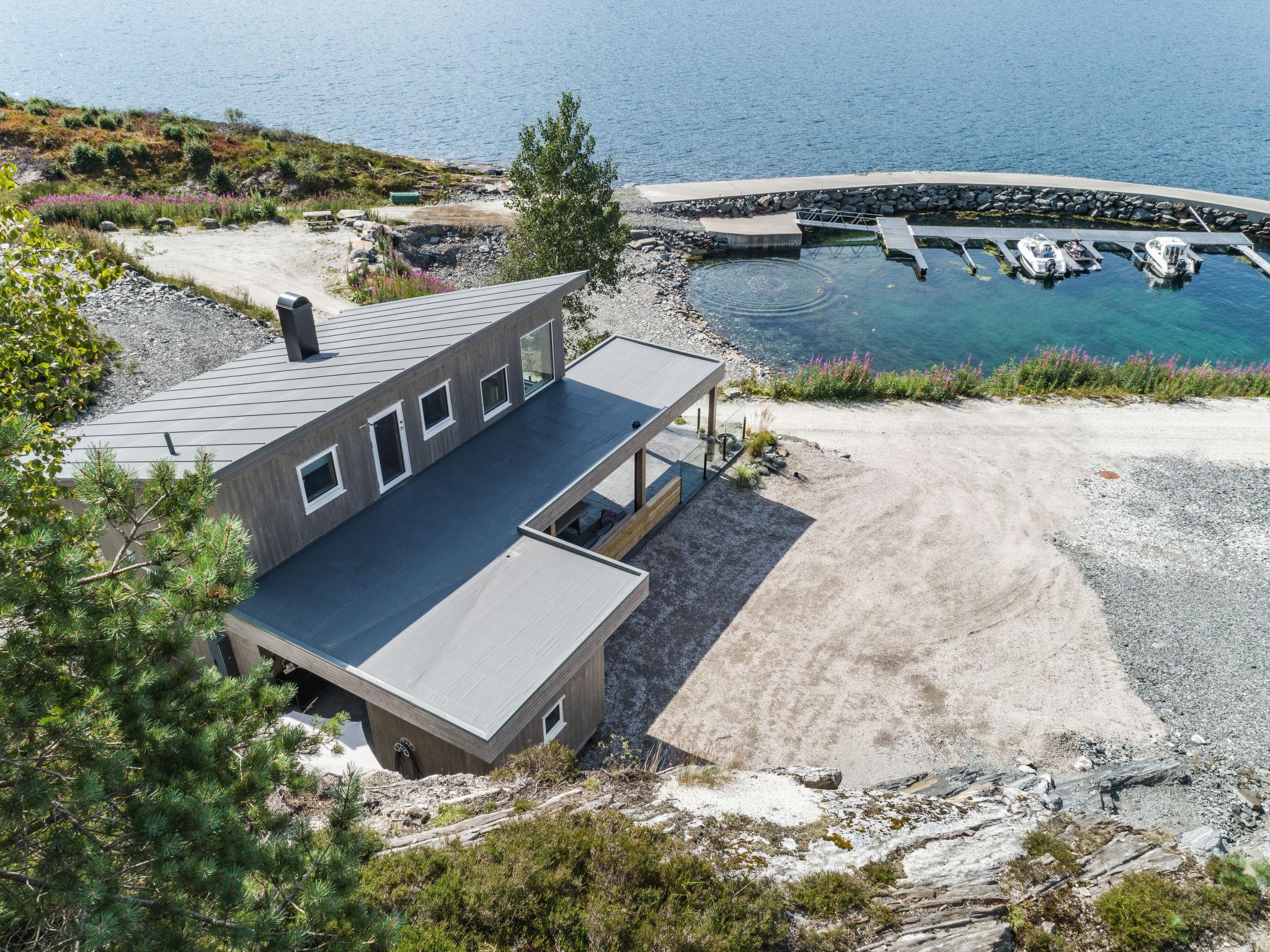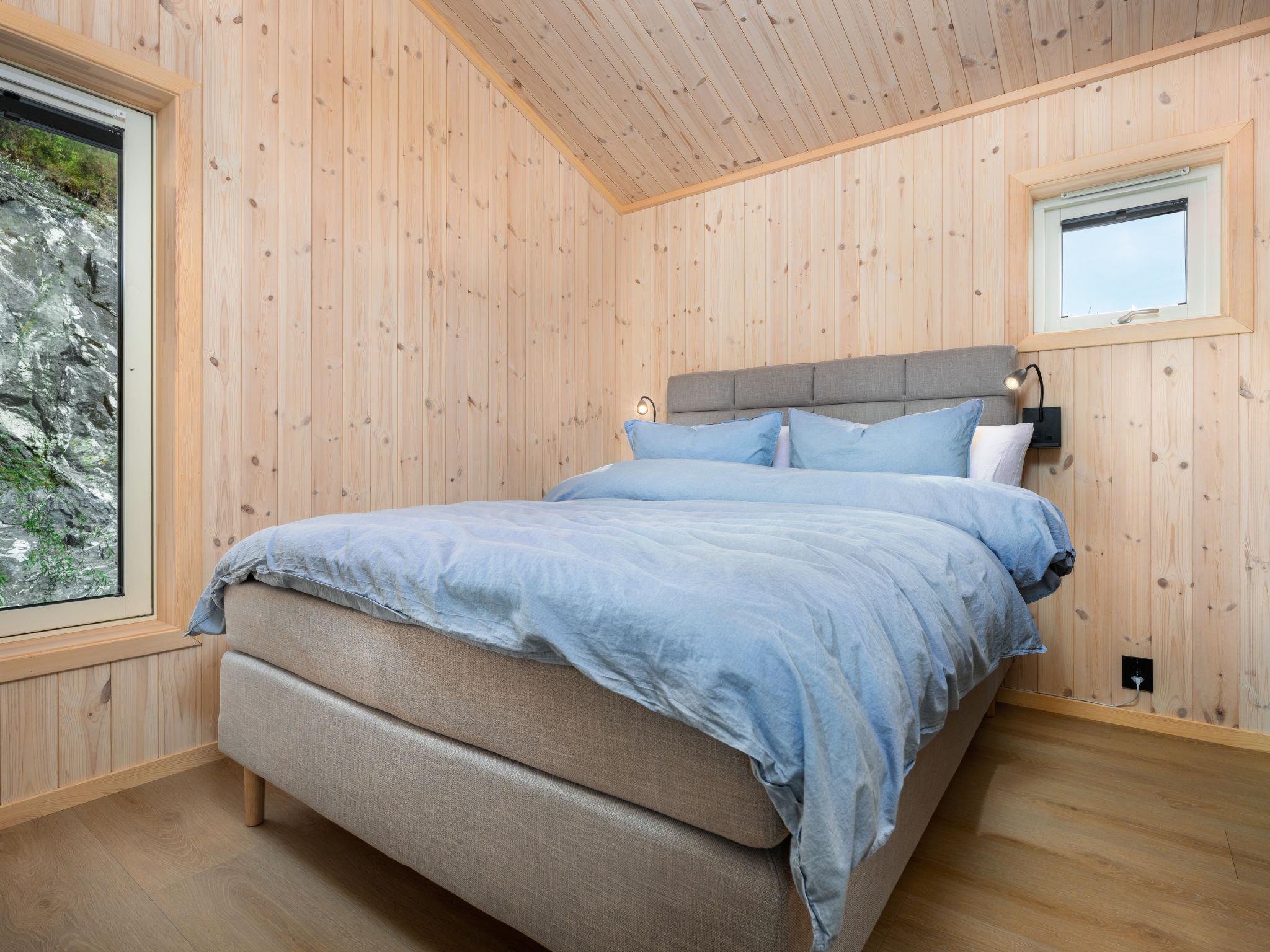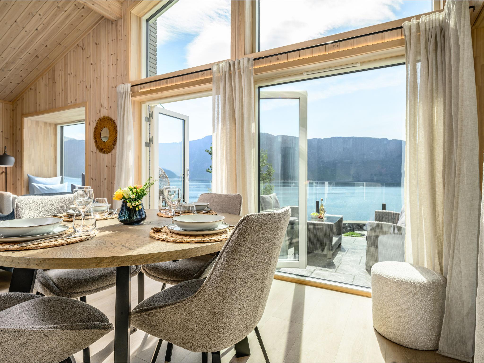 Modern, beautiful house "Hildebu", 10 m a.s.l., 2 storeys, built in 2023. 38 km from the centre of Dale, 80 km from the centre of Førde, at the seaside, at the fjord. Private: natural state property 500 m2, parking (for 2 cars) on the premises. Grocery 2 km, supermarket 2 km, bus stop "Øn Skule" 400 m, ferry "Bergen" 144 km. Walking paths from the house 100 m, fishing possibilities 50 m. Nearby attractions: Fjordkick Båtuteie 1,6 km.