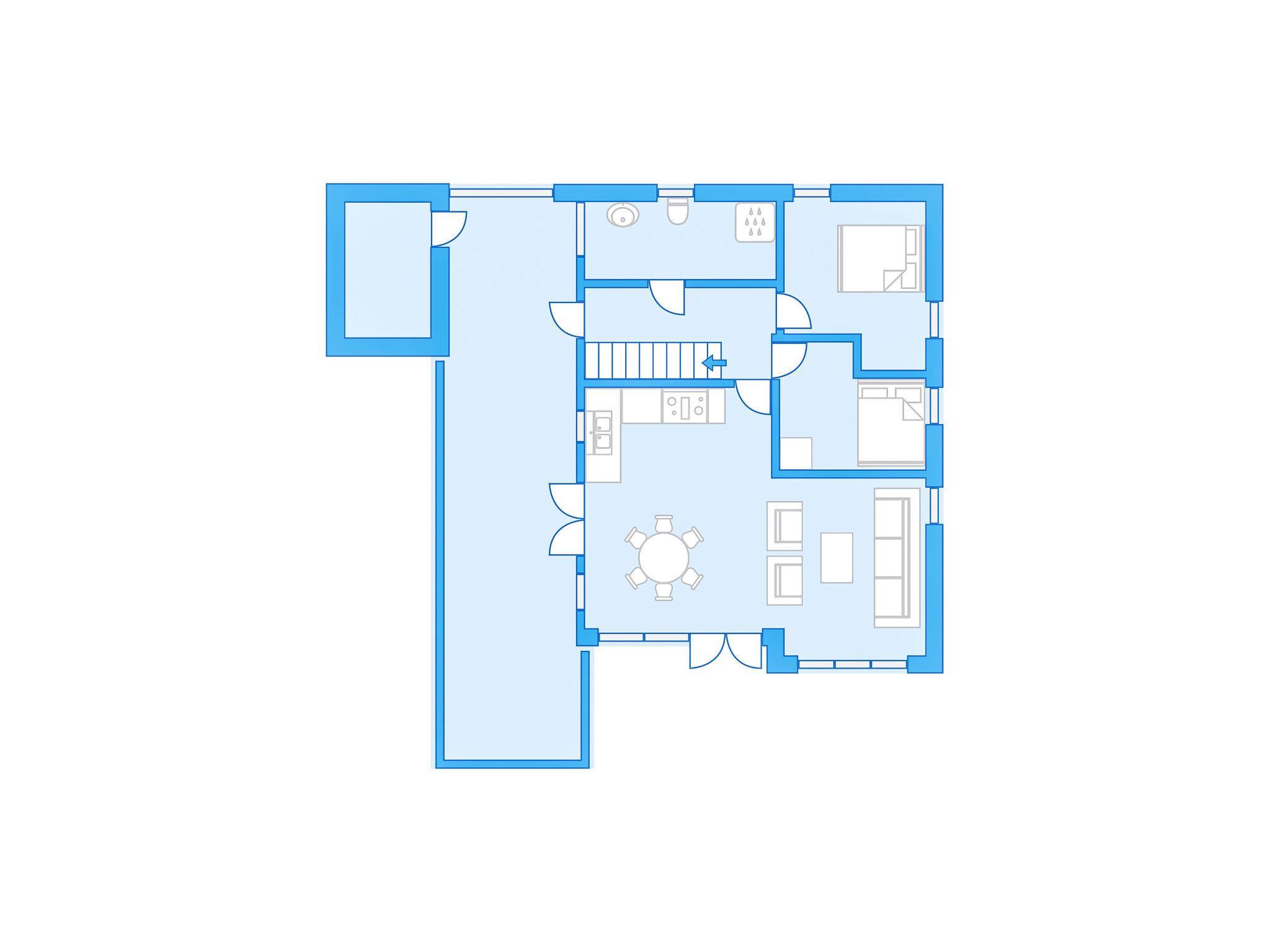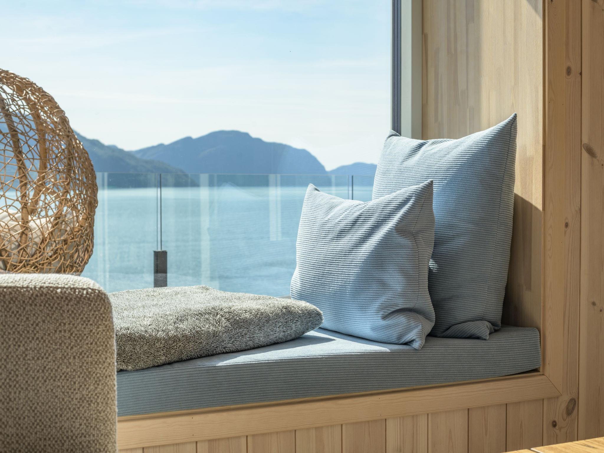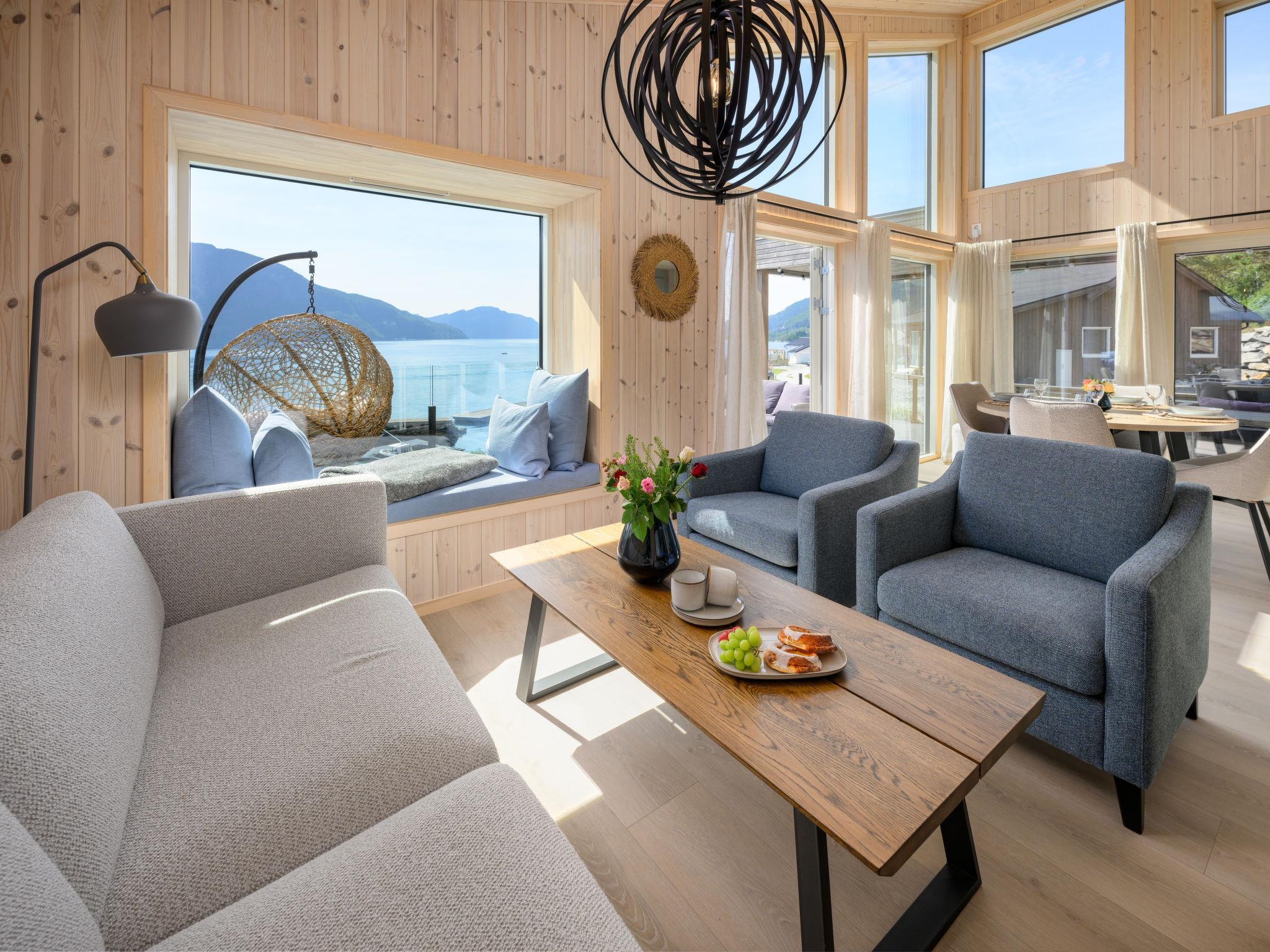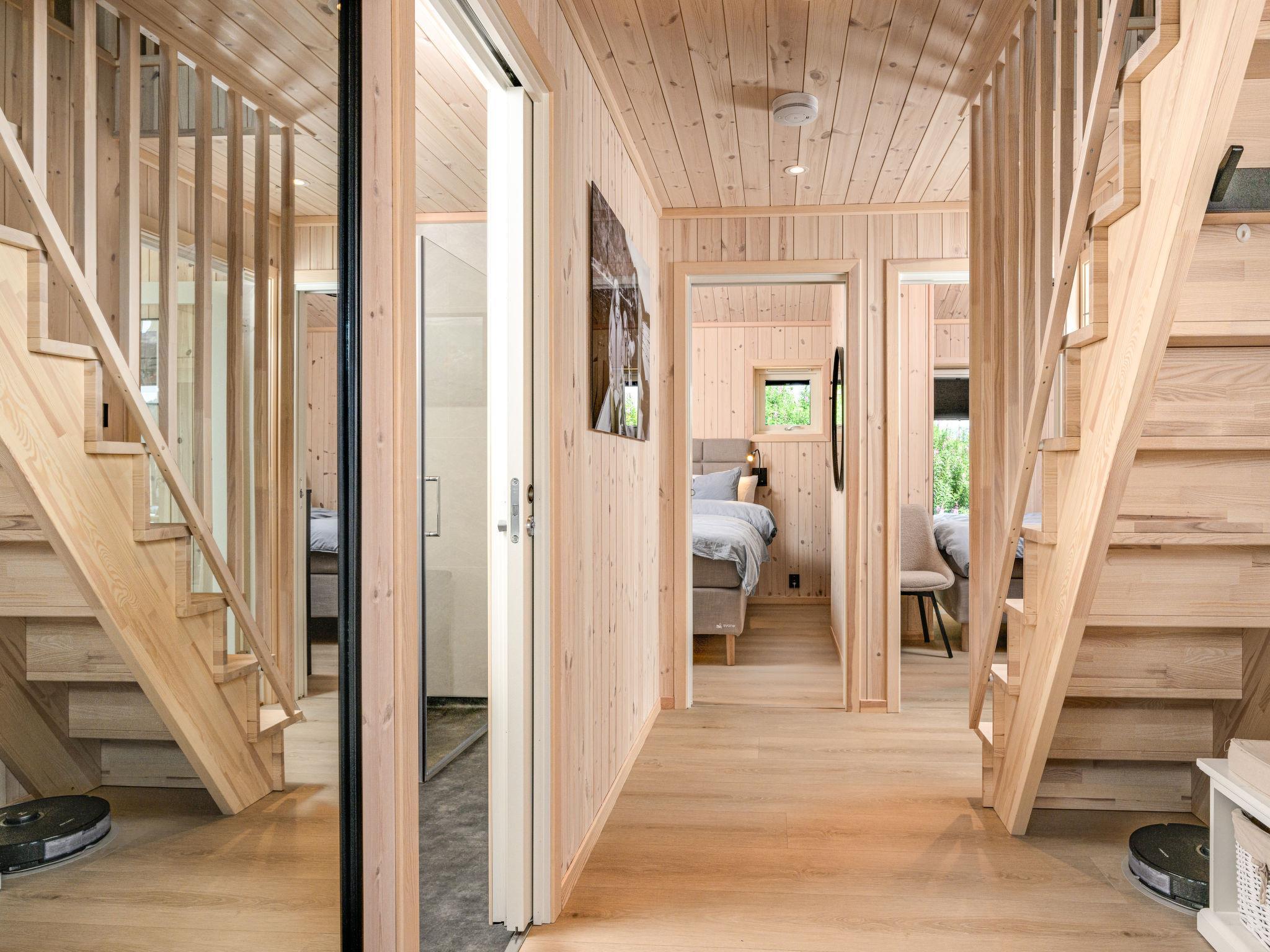 Modern, beautiful house "Hildebu", 10 m a.s.l., 2 storeys, built in 2023. 38 km from the centre of Dale, 80 km from the centre of Førde, at the seaside, at the fjord. Private: natural state property 500 m2, parking (for 2 cars) on the premises. Grocery 2 km, supermarket 2 km, bus stop "Øn Skule" 400 m, ferry "Bergen" 144 km. Walking paths from the house 100 m, fishing possibilities 50 m. Nearby attractions: Fjordkick Båtuteie 1,6 km.