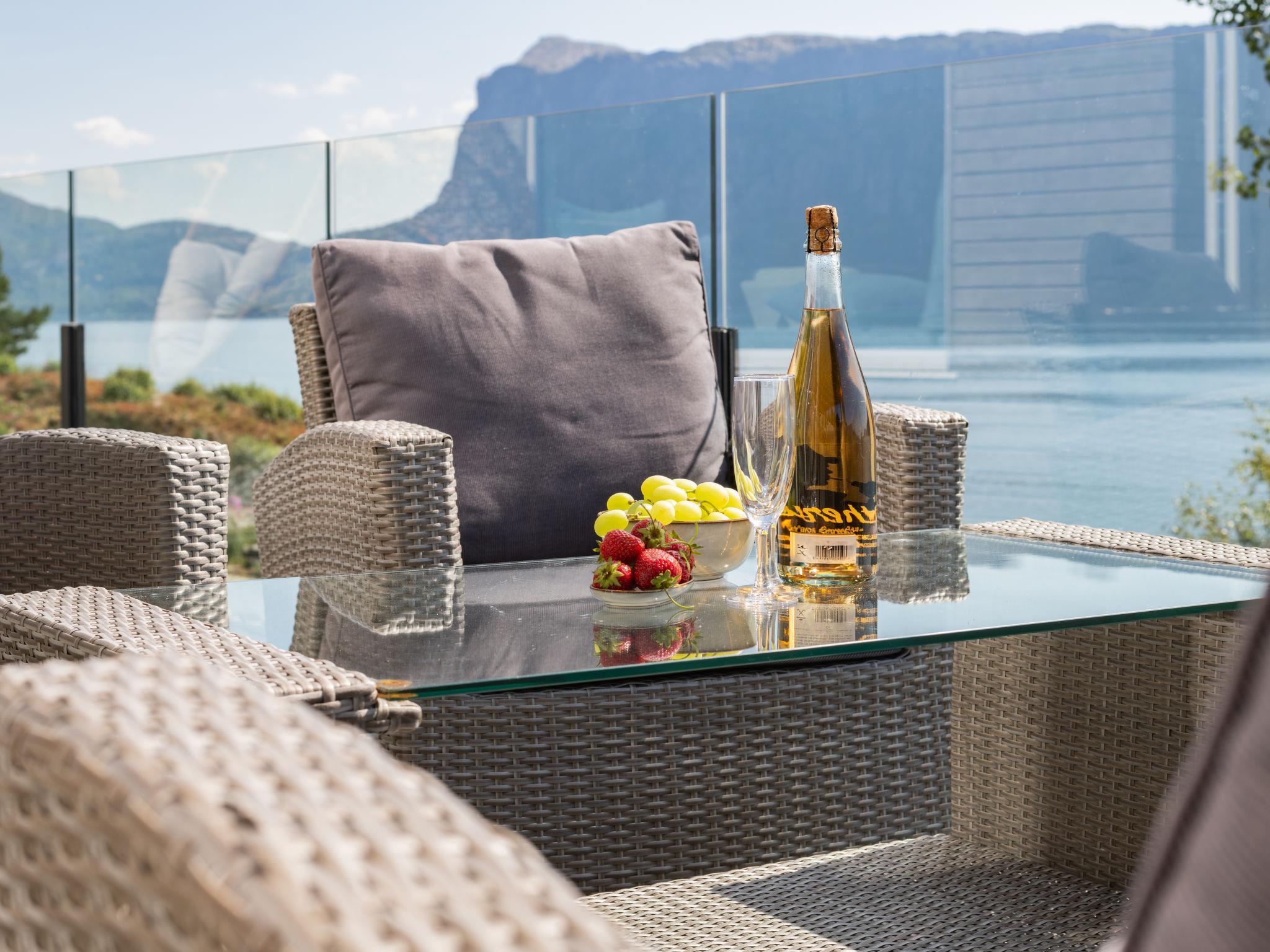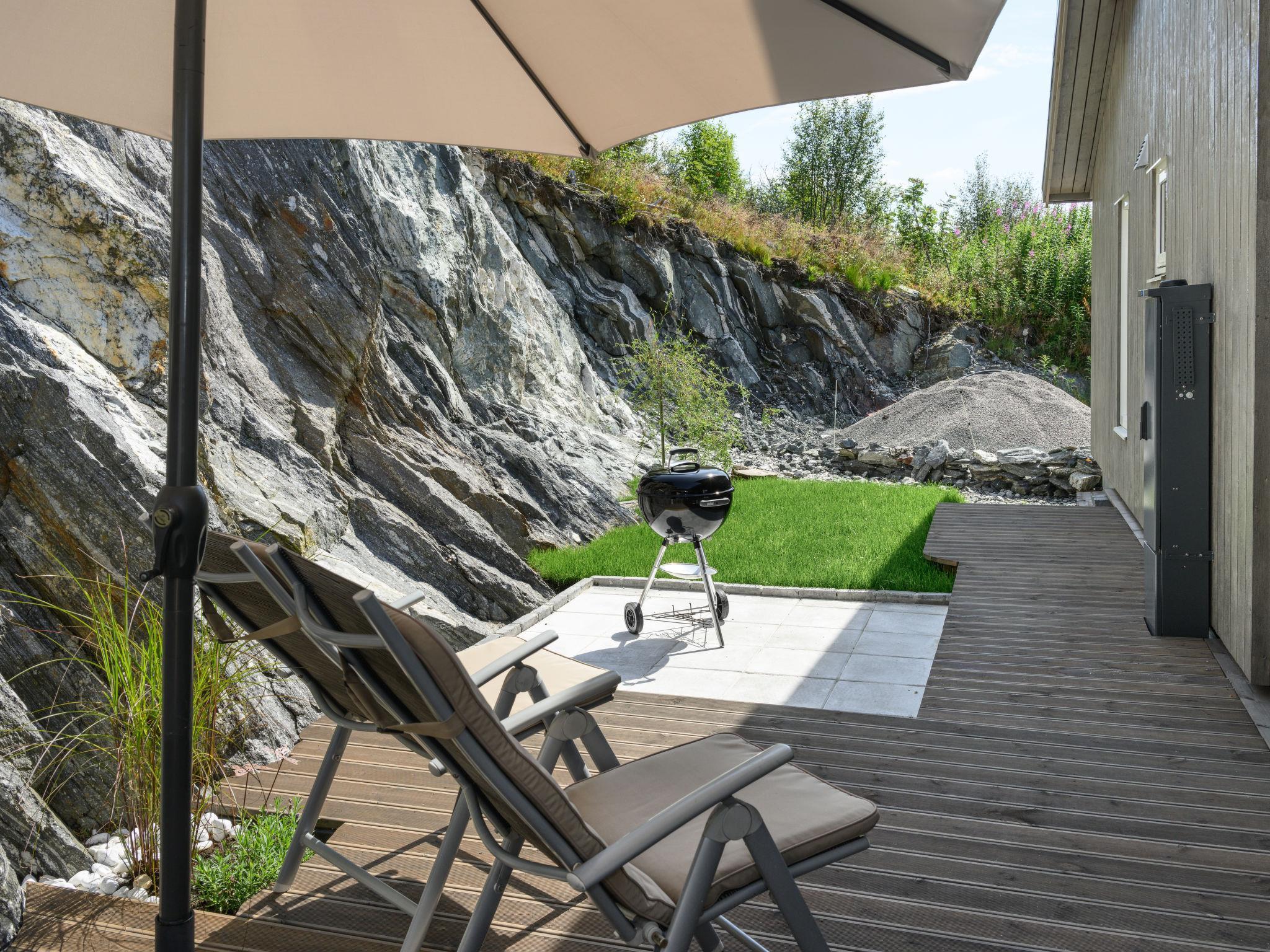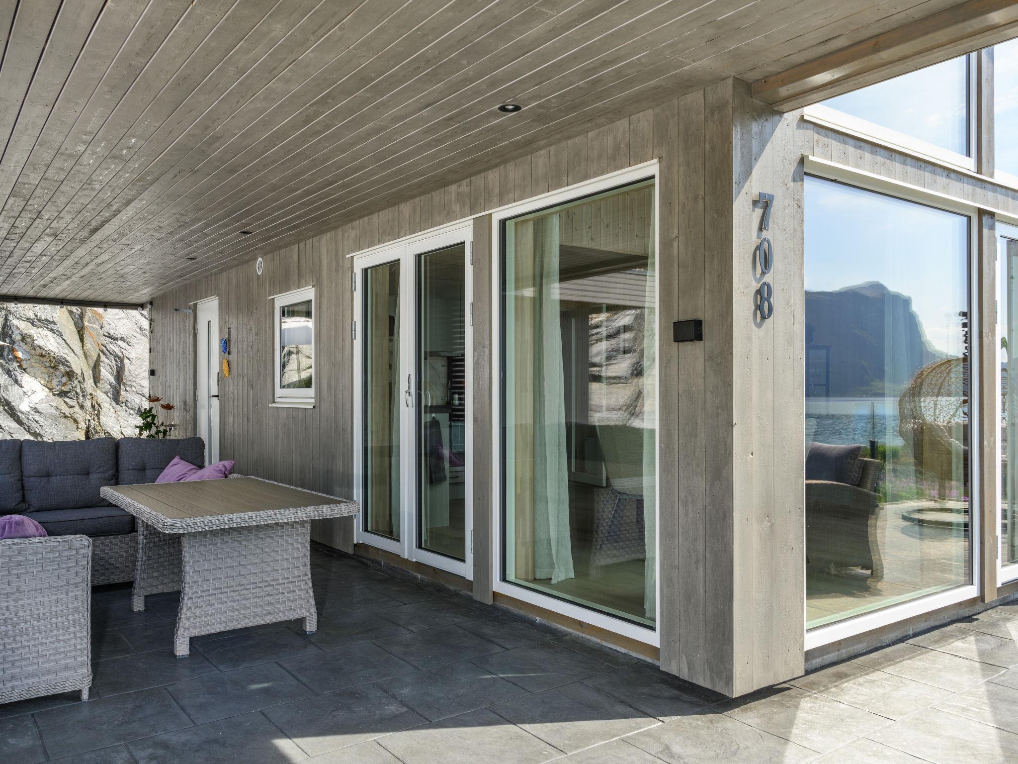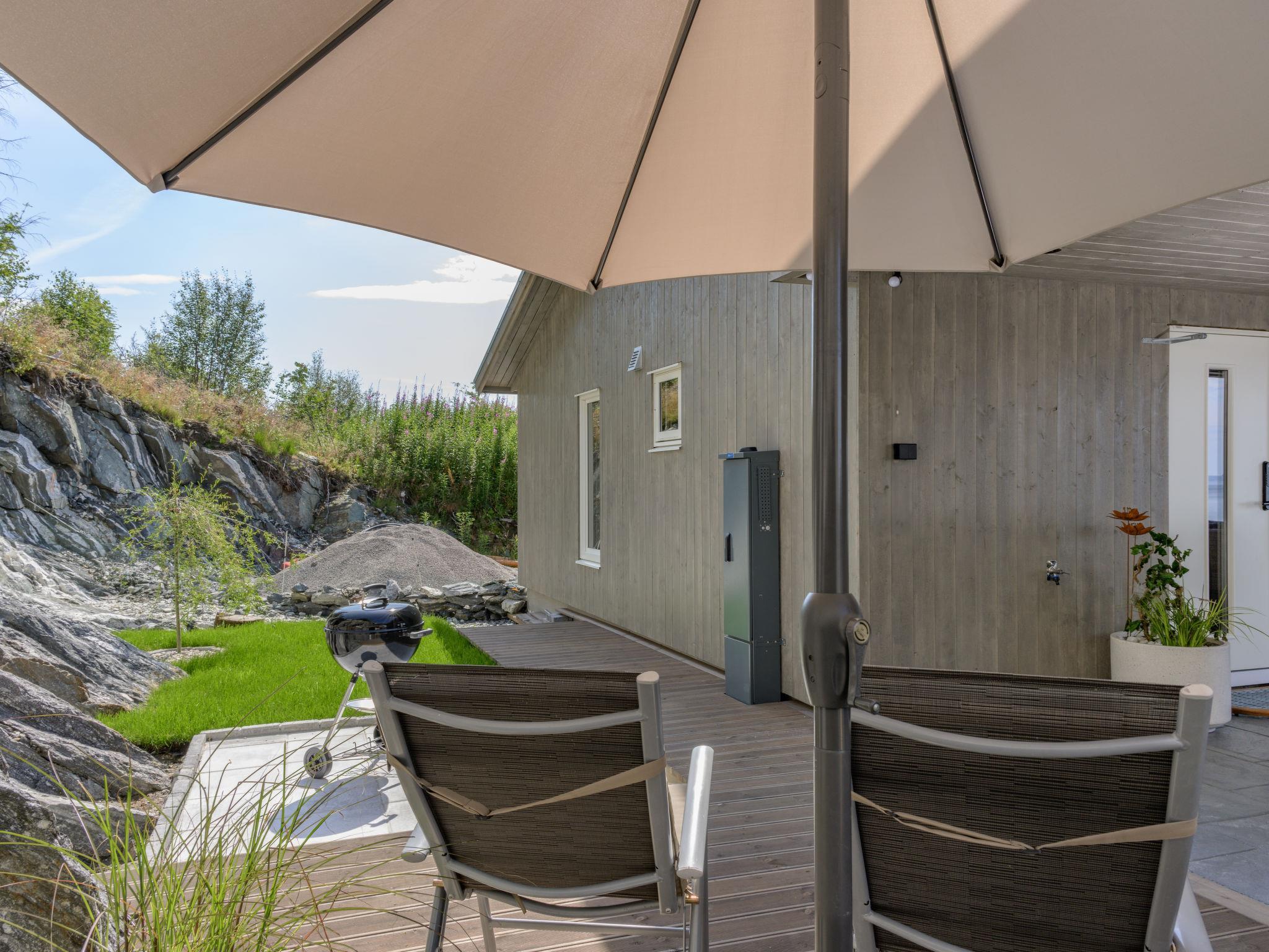"Hildebu", 4-room house 89 m2 on 2 levels. Bright, tasteful and cosy furnishings: open living/dining room with Scandinavian wood stove and dining table. Exit to the terrace. 2 rooms, each room with 1 double bed (150 cm, length 200 cm). Open kitchen (4 hot plates, oven, dishwasher, freezer, electric coffee machine). Exit to the terrace. Shower/WC. Electric heating. Upper floor: (steep stair), 1 room, ceiling height 165 cm with 1 double bed (150 cm, length 200 cm). Alcove with digital TV. Terrace 30 m2, terrace 30 m2. Terrace furniture, barbecue (portable). Very beautiful view of the sea, the mountains and fjord. Facilities: washing machine, dryer. Internet (WiFi, free). Please note: non-smoking house. 924531169