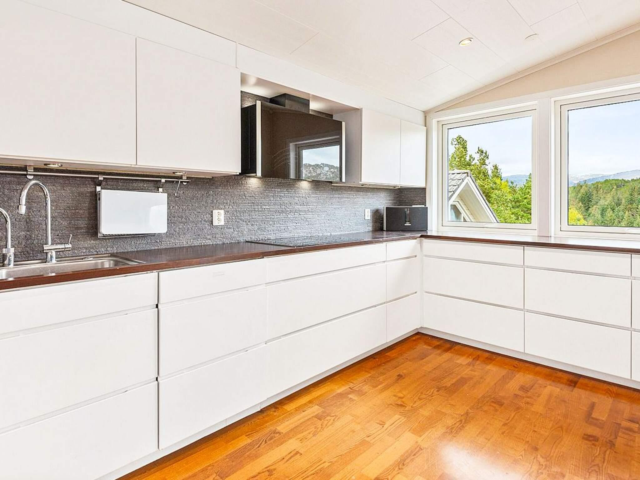 Det er terrasse (ca.330m2) rundt hele huset med flere ut/innganger, fantastisk panoramautsikt over fjorden og mange tilleggskvaliteter som boblebad, oppblåsbart barnebasseng med 5500 liter, lekeapparater. Det er et eget 18 kvm bygg på terrassen med et omkledningsrom og sauna for 8-10 personer. Kjellerstue med en liten klatrevegg og biljardbord (220 x 120 cm).