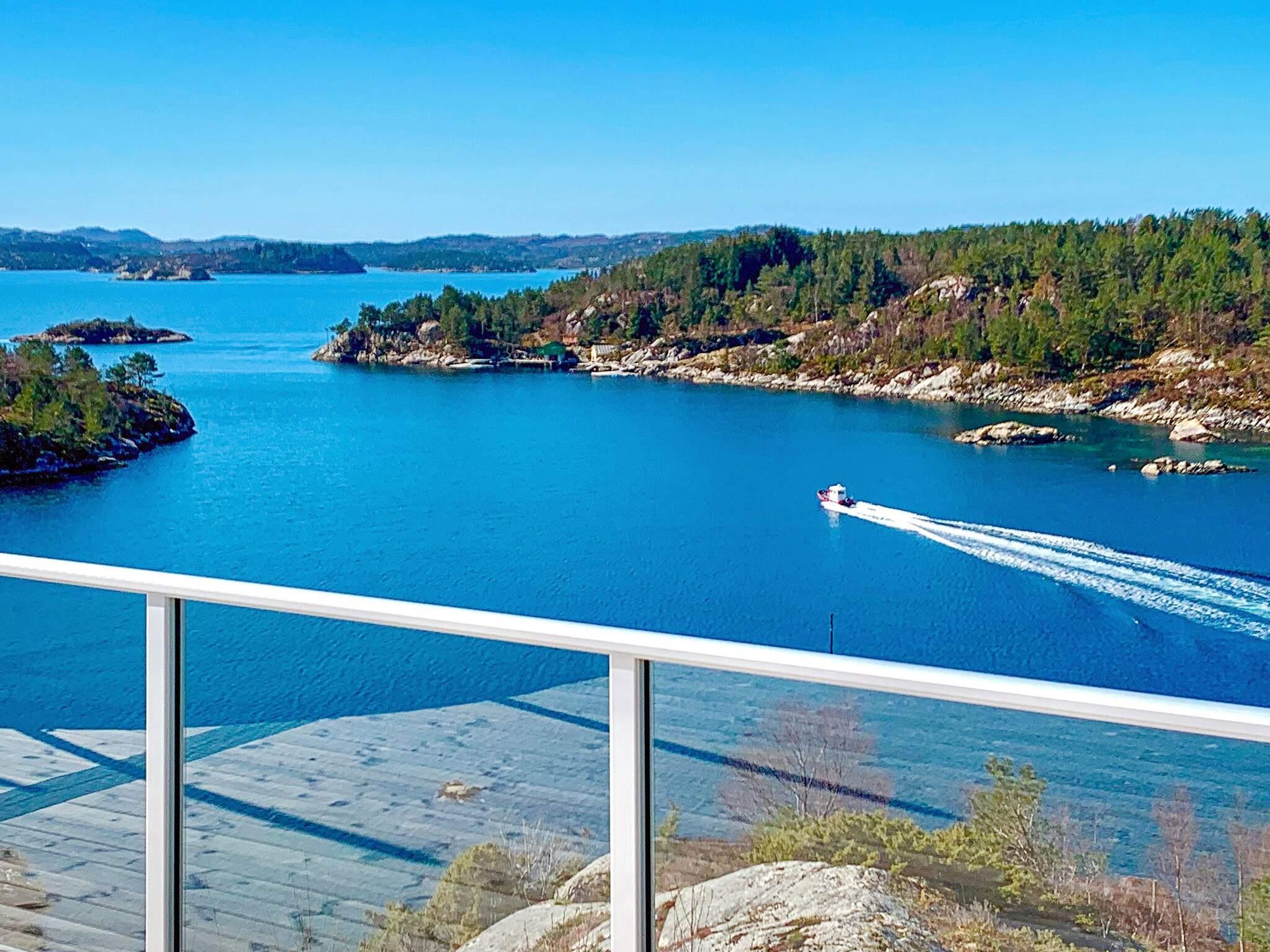 Moderne og eksklusiv feriebolig med panoramautsikt og sol fra morgen til kveld, boblebad, sauna, barnebasseng (5500l), naust med egen brygge og fantastiske fiskemuligheter. Her finner du alt til din perfekte ferie.