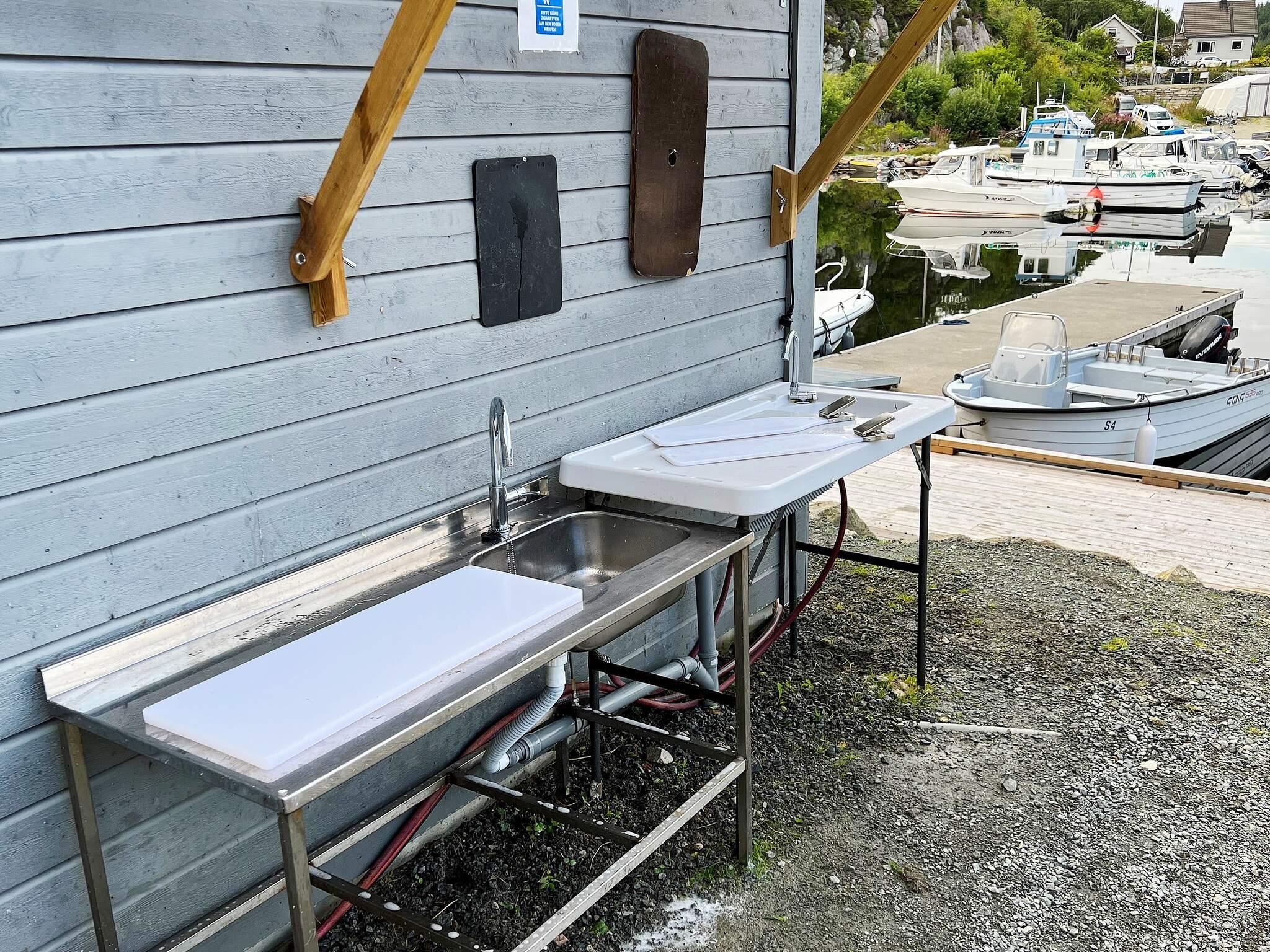 Til feriehuset hører også et naust som er et fint rekreasjonsområde direkte med vannet og marina med bademuligheter. 400 m til båtene i marinaen og låsbart naust for oppbevaring av fiskeutstyr, tørking av klær m.m., innendørs fileteringsplass for fisk og 400 l fryser. Meget gode fiskemuligheter hele året, fiske langs kysten eller lenger inne beskyttet av øyer og holmer.