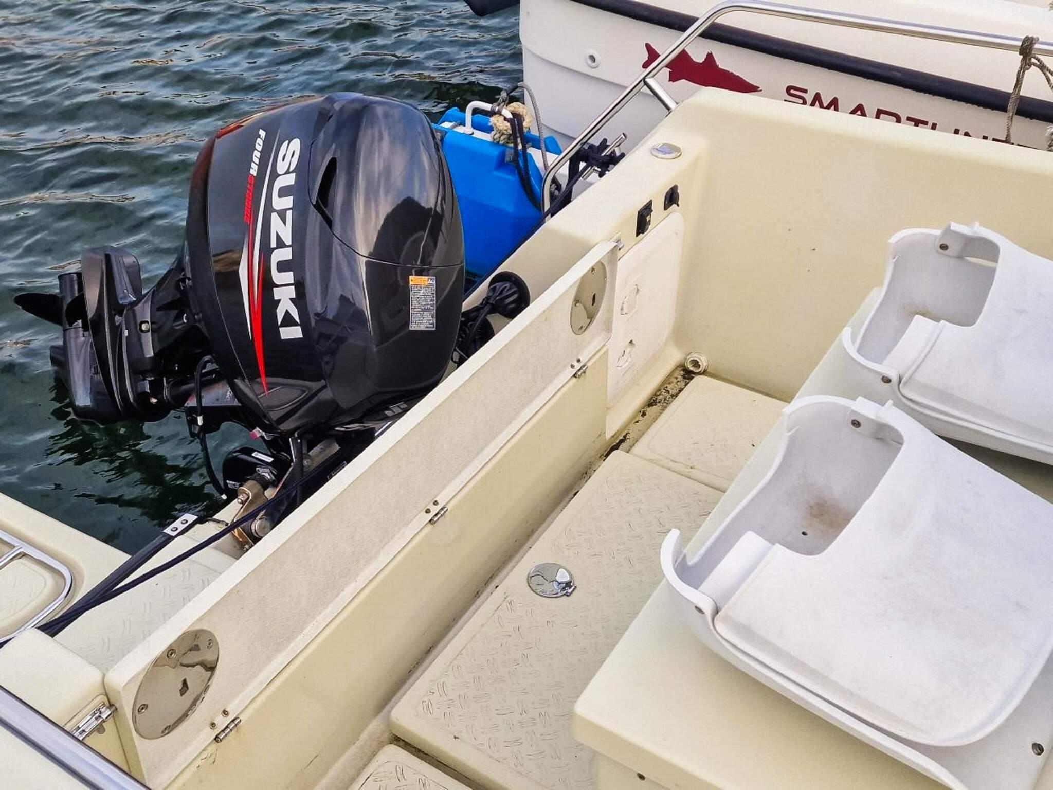 1x 18 fots Hobby540 med 50 HK Suzuki, 6 stangholdere