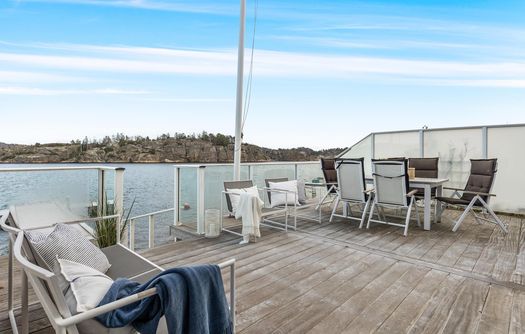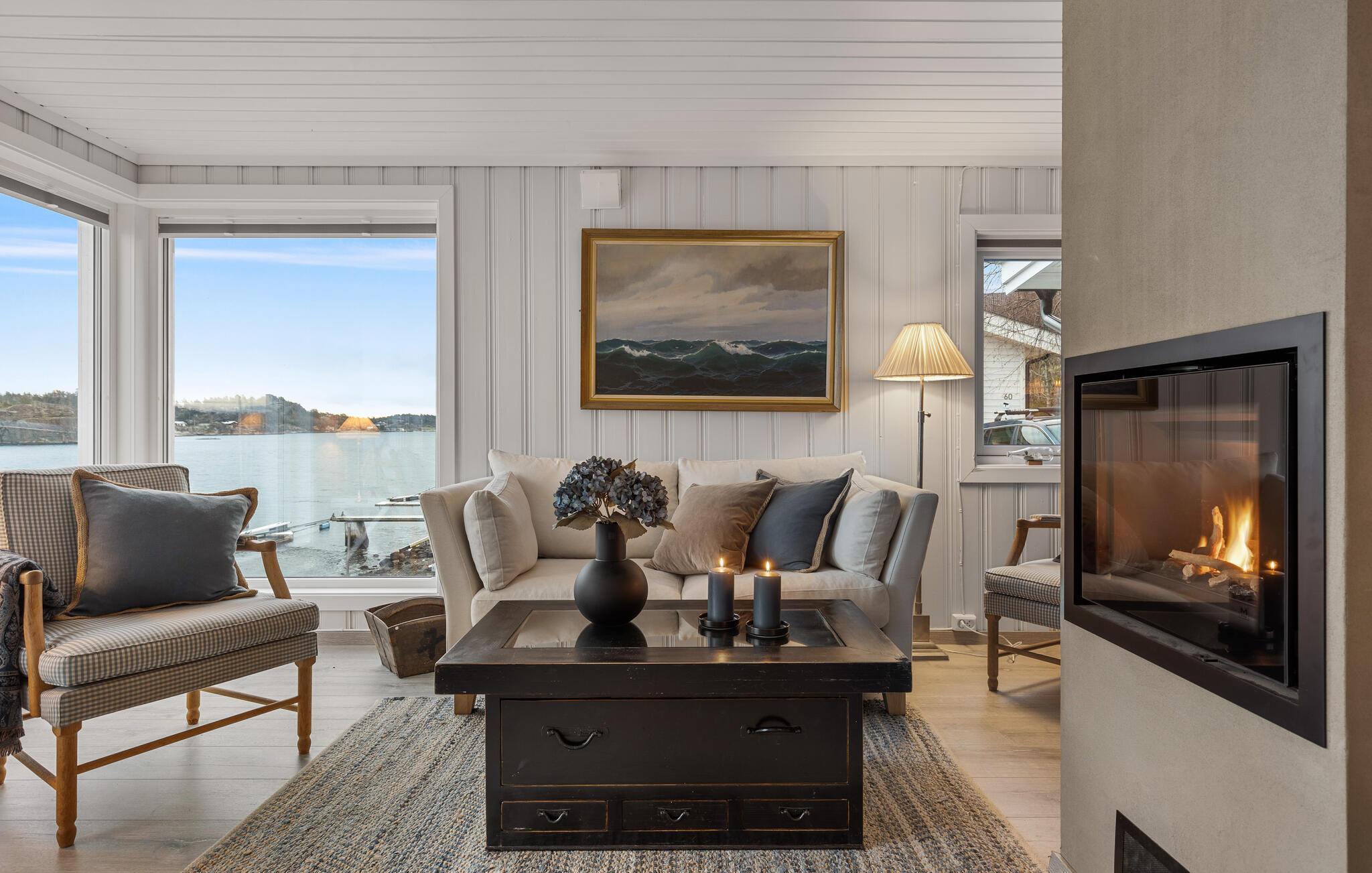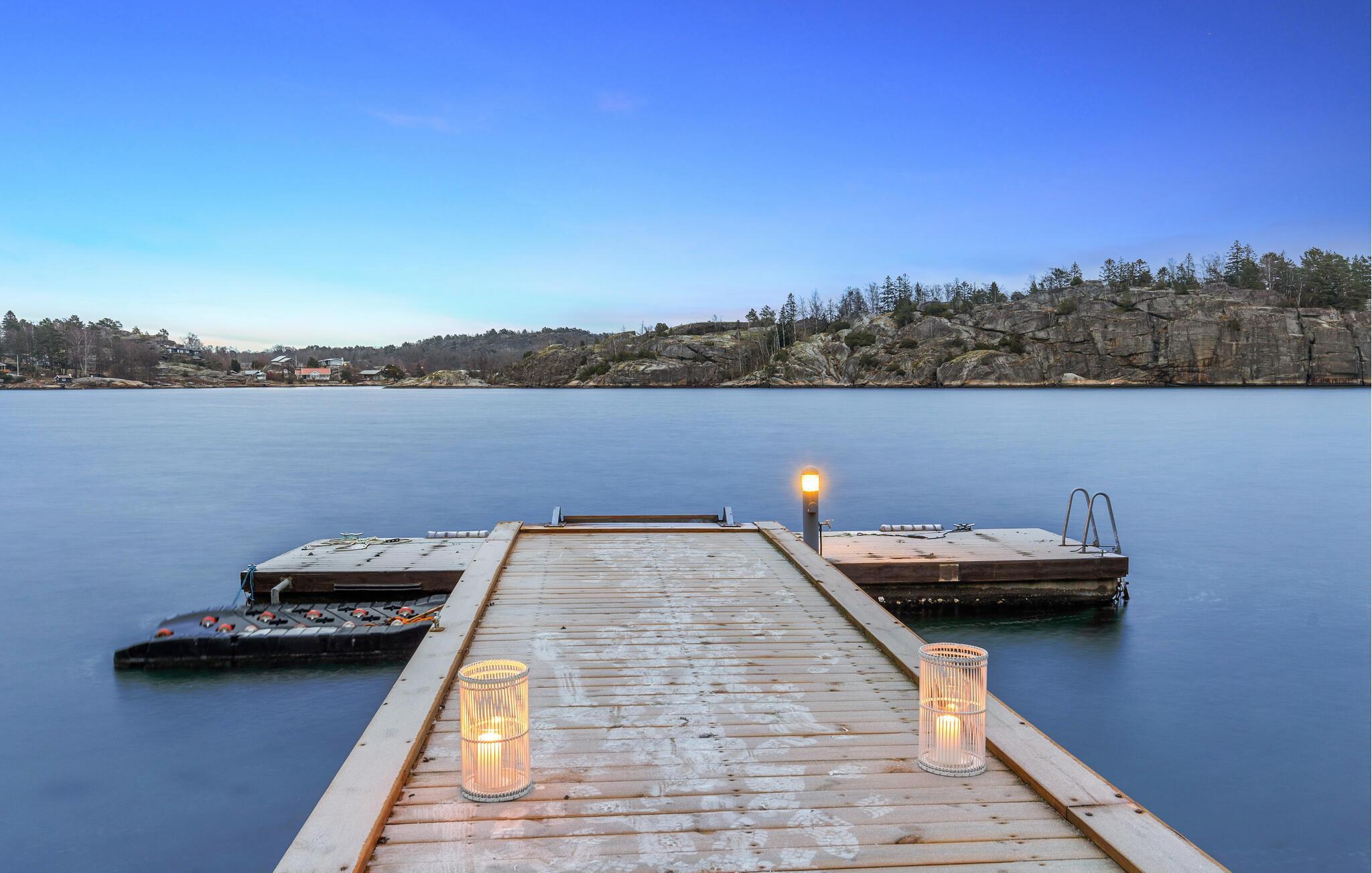 Dette vidunderlige feriehus på Vesterøya er noget særligt med sin fantastiske beliggenhed, egen kystlinje og adgang til en badebro. De store vinduer giver en betagende udsigt over den glitrende fjord og fylder det åbne opholdsrum med lys. På kølige dage skaber pejsen en hyggelig atmosfære, mens den stilfulde indretning og det lyse interiør byder jer velkommen. På terrassen kan I nyde måltider med udsigt over vandet eller bare slappe af og lade roen sænke sig.