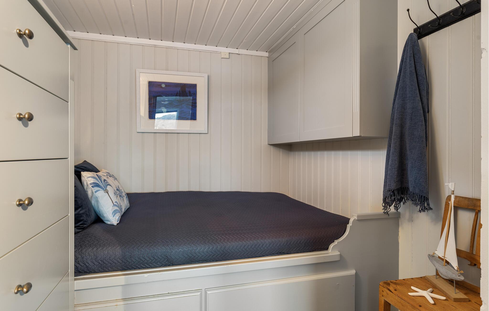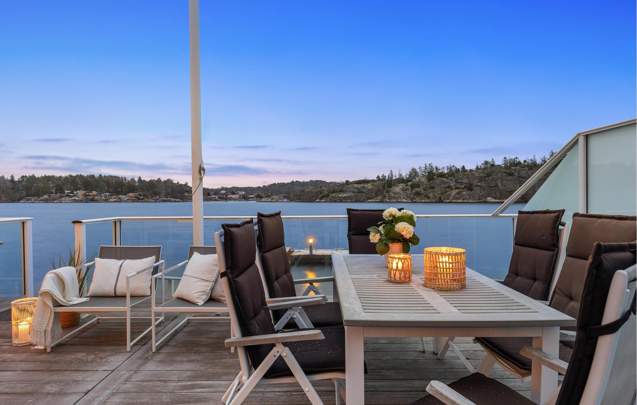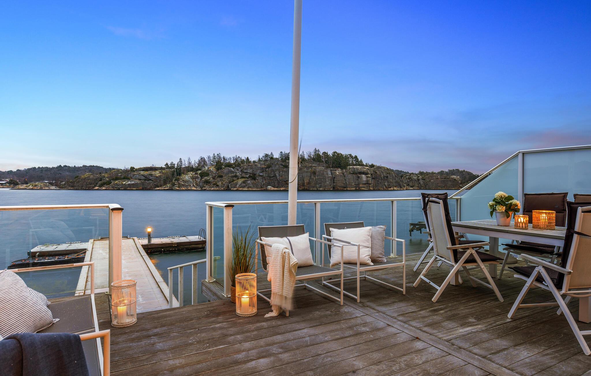 Dette vidunderlige feriehus på Vesterøya er noget særligt med sin fantastiske beliggenhed, egen kystlinje og adgang til en badebro. De store vinduer giver en betagende udsigt over den glitrende fjord og fylder det åbne opholdsrum med lys. På kølige dage skaber pejsen en hyggelig atmosfære, mens den stilfulde indretning og det lyse interiør byder jer velkommen. På terrassen kan I nyde måltider med udsigt over vandet eller bare slappe af og lade roen sænke sig.