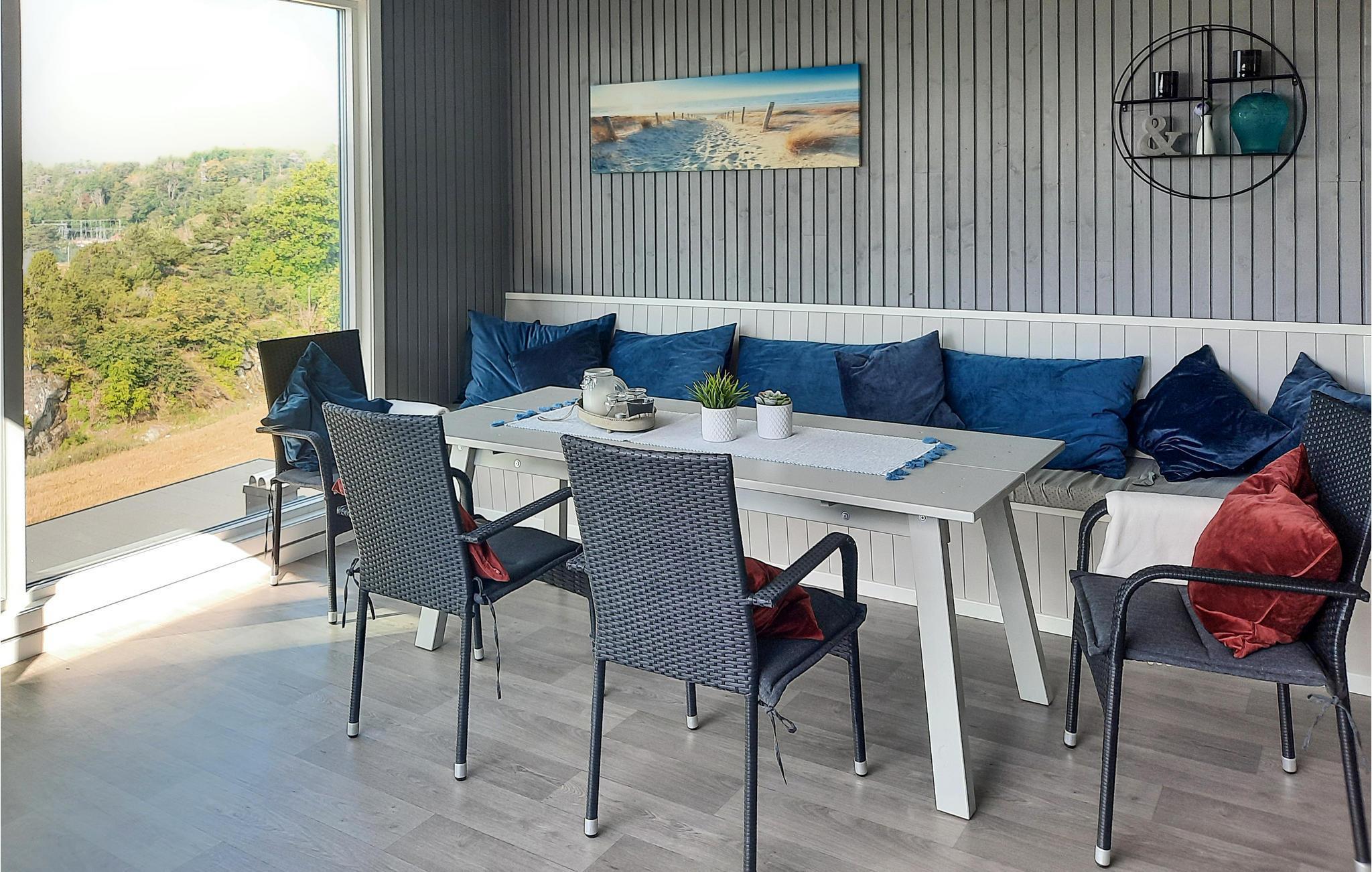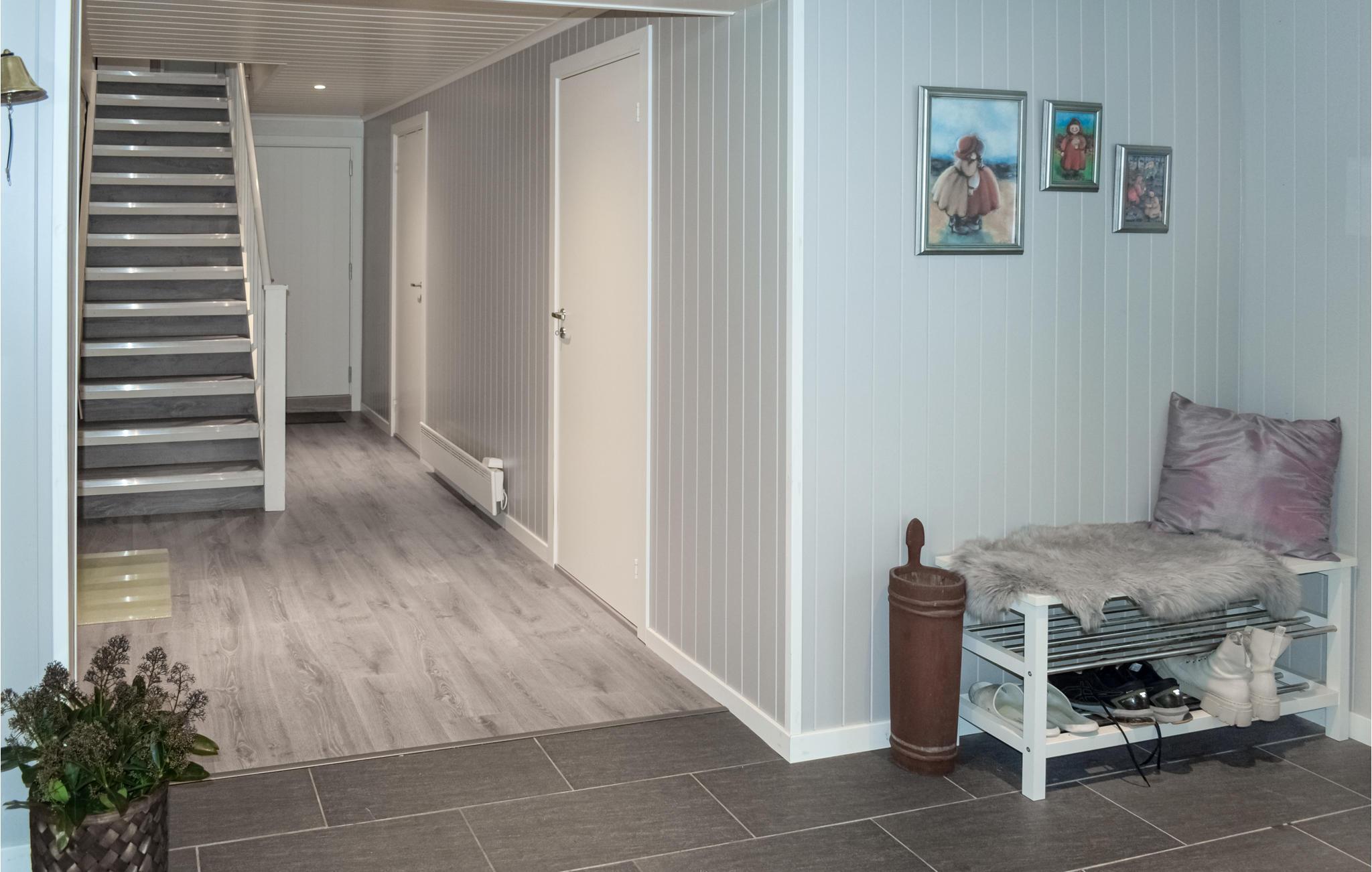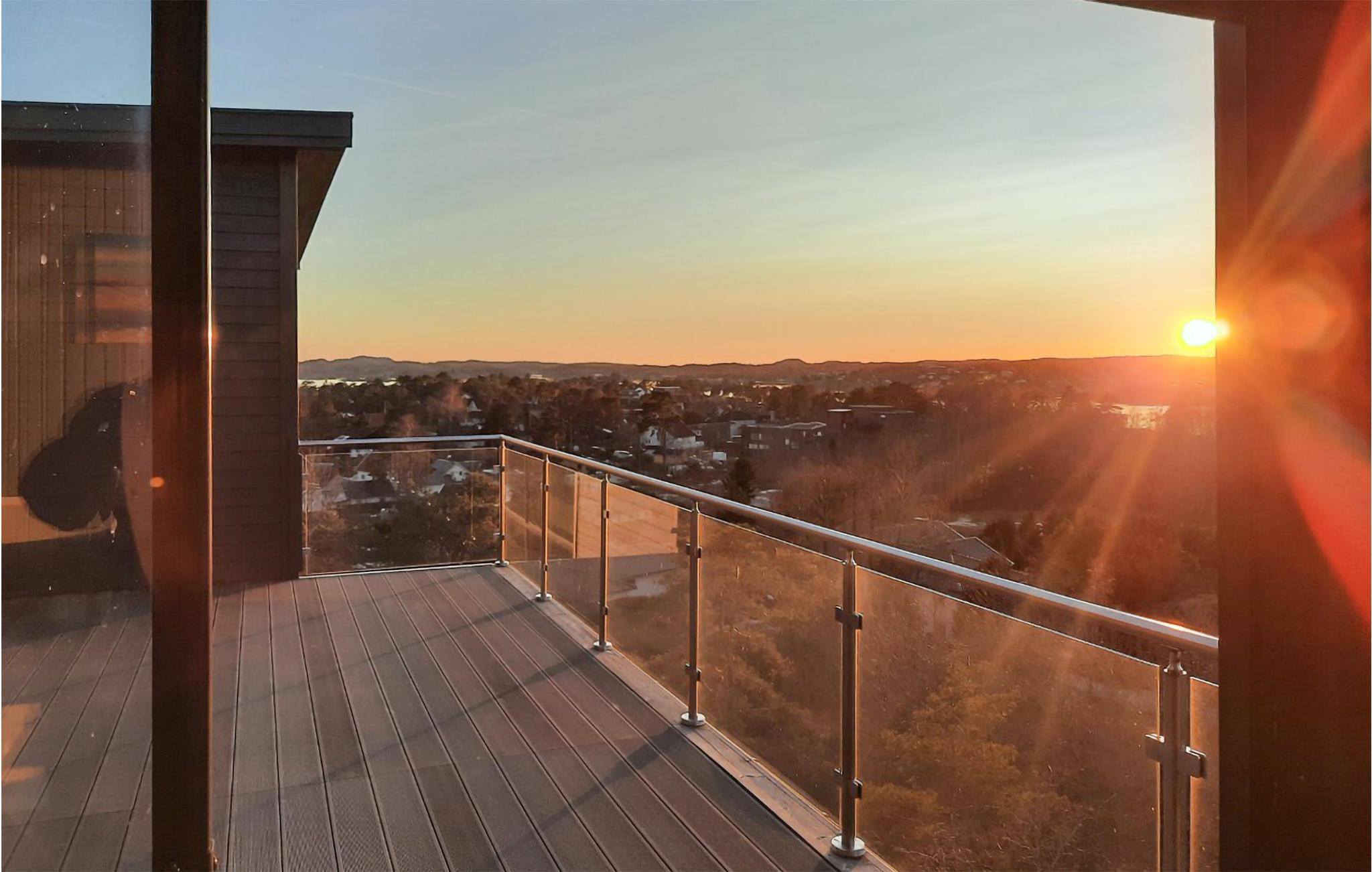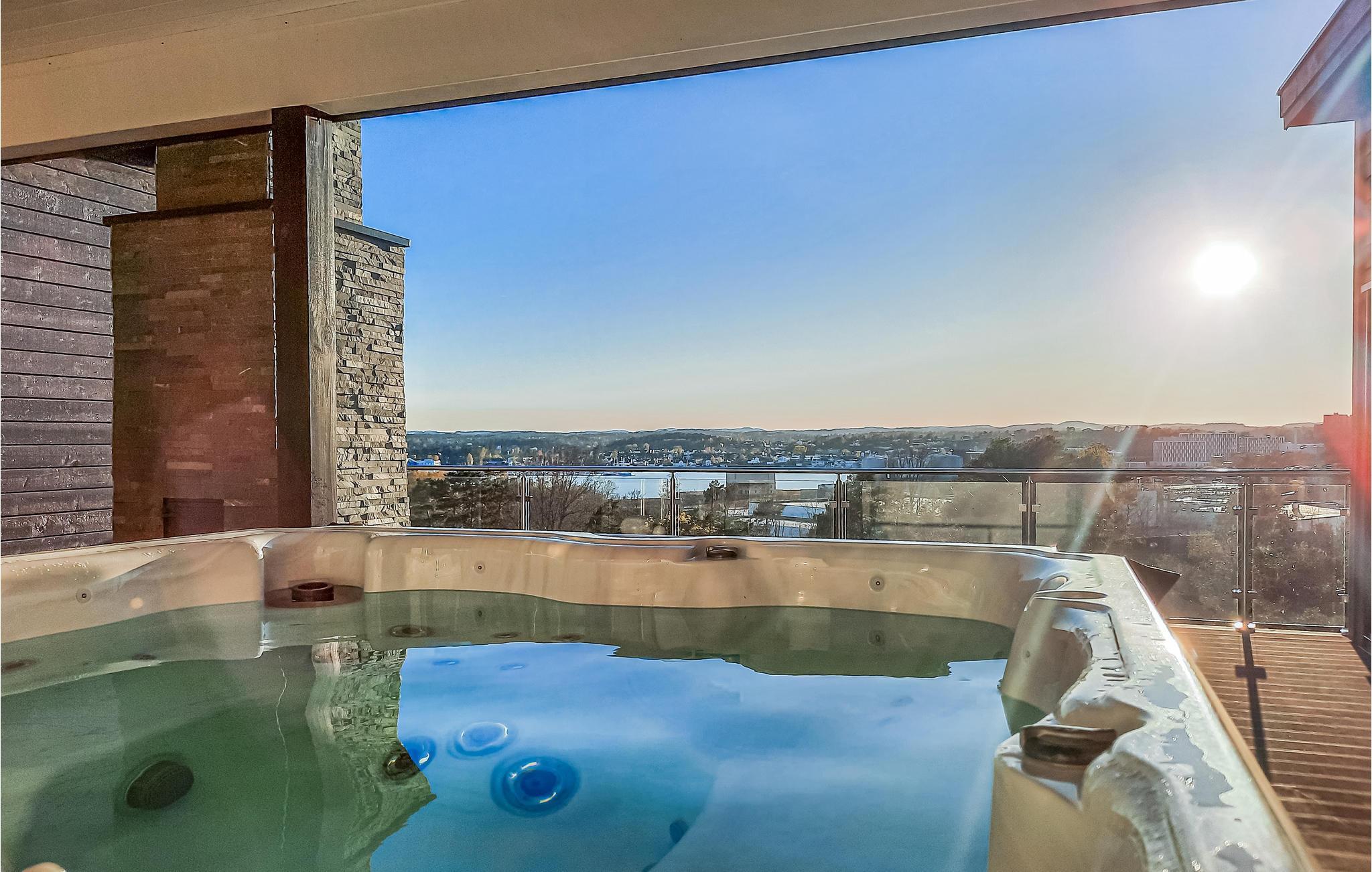 Dette store og rummelige feriehus byder jer velkommen på Vesterøy-halvøen, uden for Sandfjord. Det moderne hus strækker sig over flere etager og er bygget ind i en klippe. Store vinduesfronter giver jer en fantastisk udsigt over landskabet, byen og vandet i næsten alle rum. Nyd indretningen af ??høj kvalitet og kvaliteten af ??udstyret, som bidrager til husets atmosfære. At slappe af i sofaen og spise eller lege ved spisebordet bliver en oplevelse på grund af udsigten. Til jeres personlige wellness-program er der et spabad til rådighed, som lader jer glemme jeres daglige bekymringer.