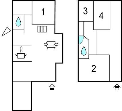 Soveværelse (nr. 2) - 1 Soveplads. (Enkeltseng(e)). 2 Sovepladser. (Dobbeltseng(e)).