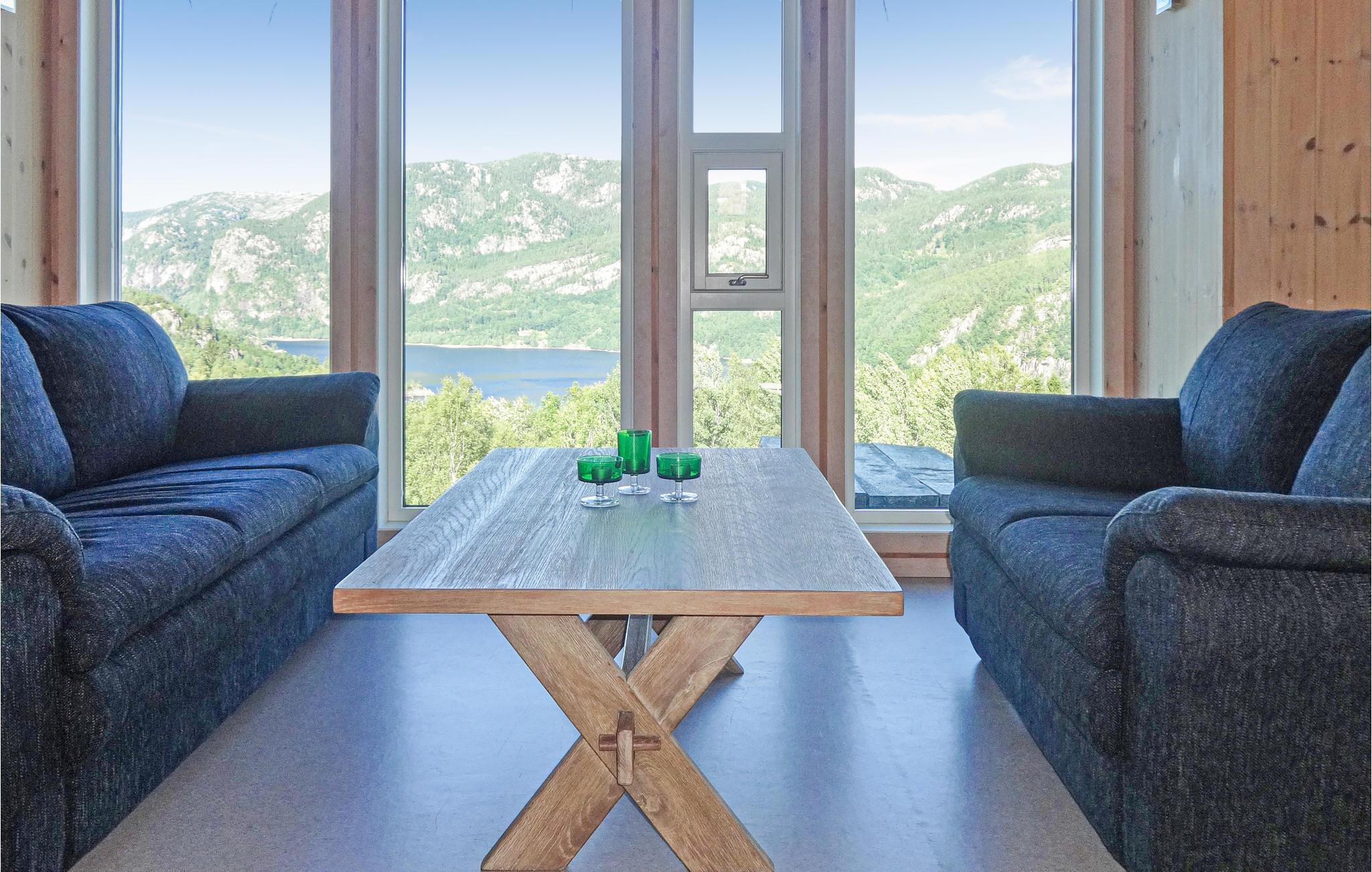 Særdeles velindrettet og veludstyret feriehus beliggende på høj med panoramaudsigt over Sirdalsvatnet. Et pragtfuldt naturområde med vand, skov og fjeld ideelt til vandreture. Rigtig gode fiske- og bademuligheder. Huset er velegnet til kørestolsbrugere. Eget gårdmuseum med Vest-Agders ældste bygning. Der findes husdyr på gården. Besøg 'hollænderbyen' Flekkefjord. Tag på dagsture til Lysefjorden med Preikestolen og Kjerag, Kongeparken og Stavanger. Vi foreslår også en tur på skinnecykel på Flekkefjordbanen.