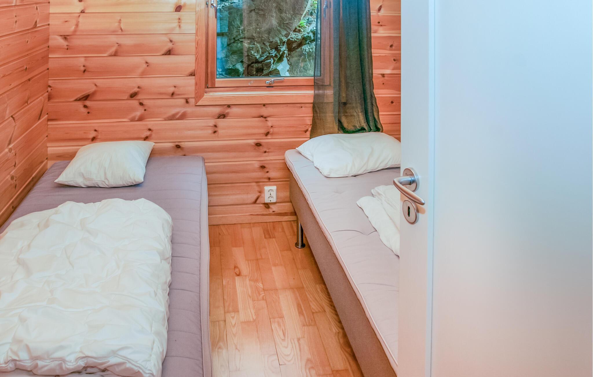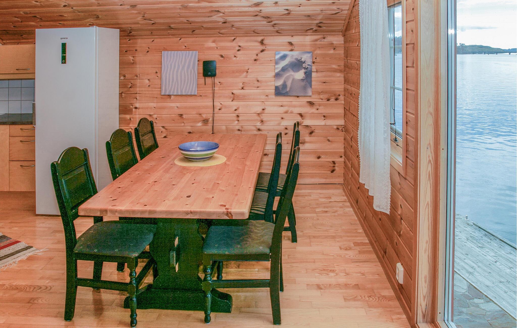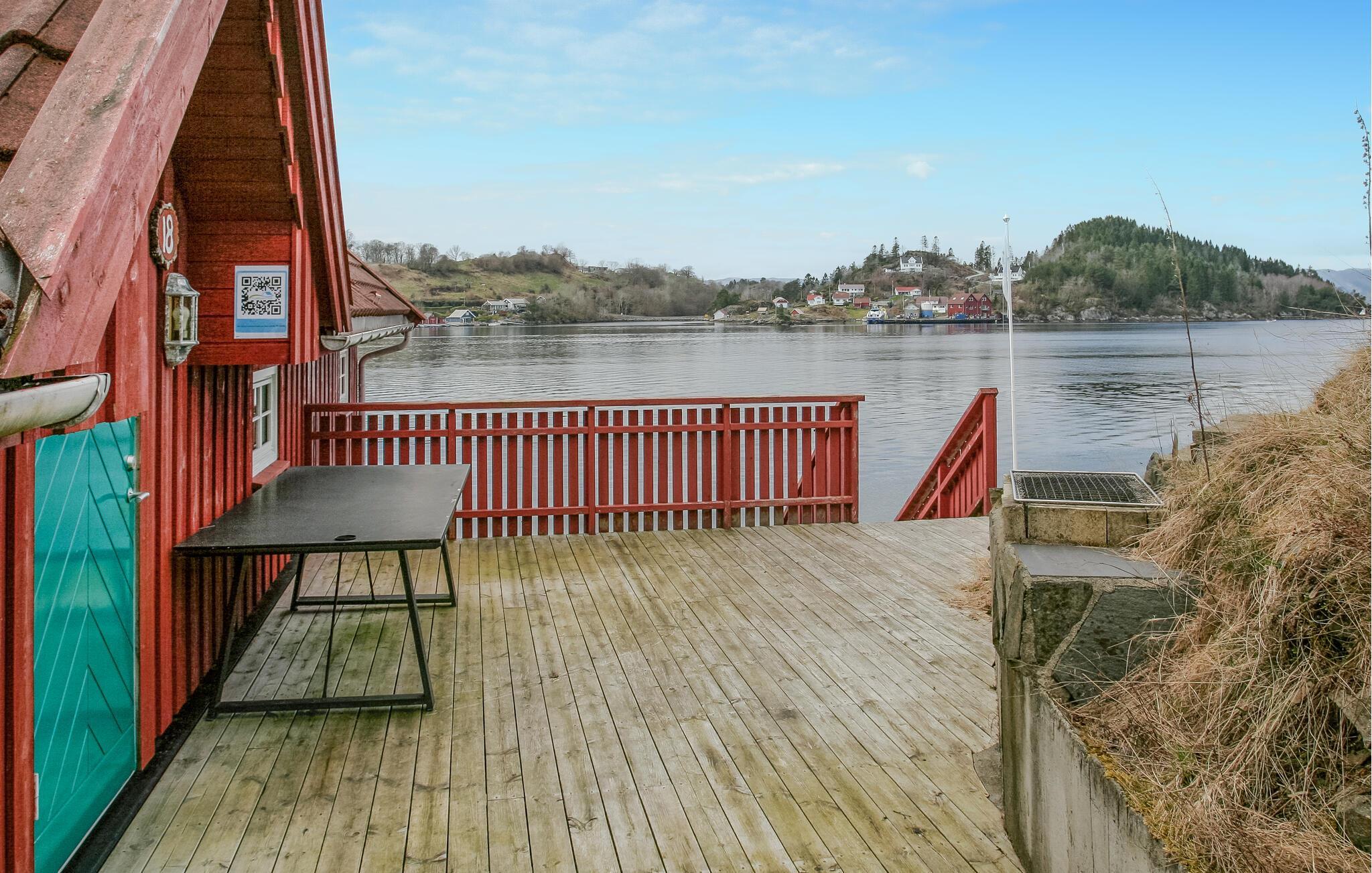 Udendørs lokker den flotte og store solterrasse til mange timer i det gode vejr. Herfra får I en smuk udsigt over vandet og en trappe ned til bredden af fjorden, så fyld dagene op med friske dyp lige ved huset, hvor I også kan fiske og fange noget lækkert til frokosten. Begiv jer også på vandreture og tag hyggelige afstikkere til naboøerne eller Stavanger.