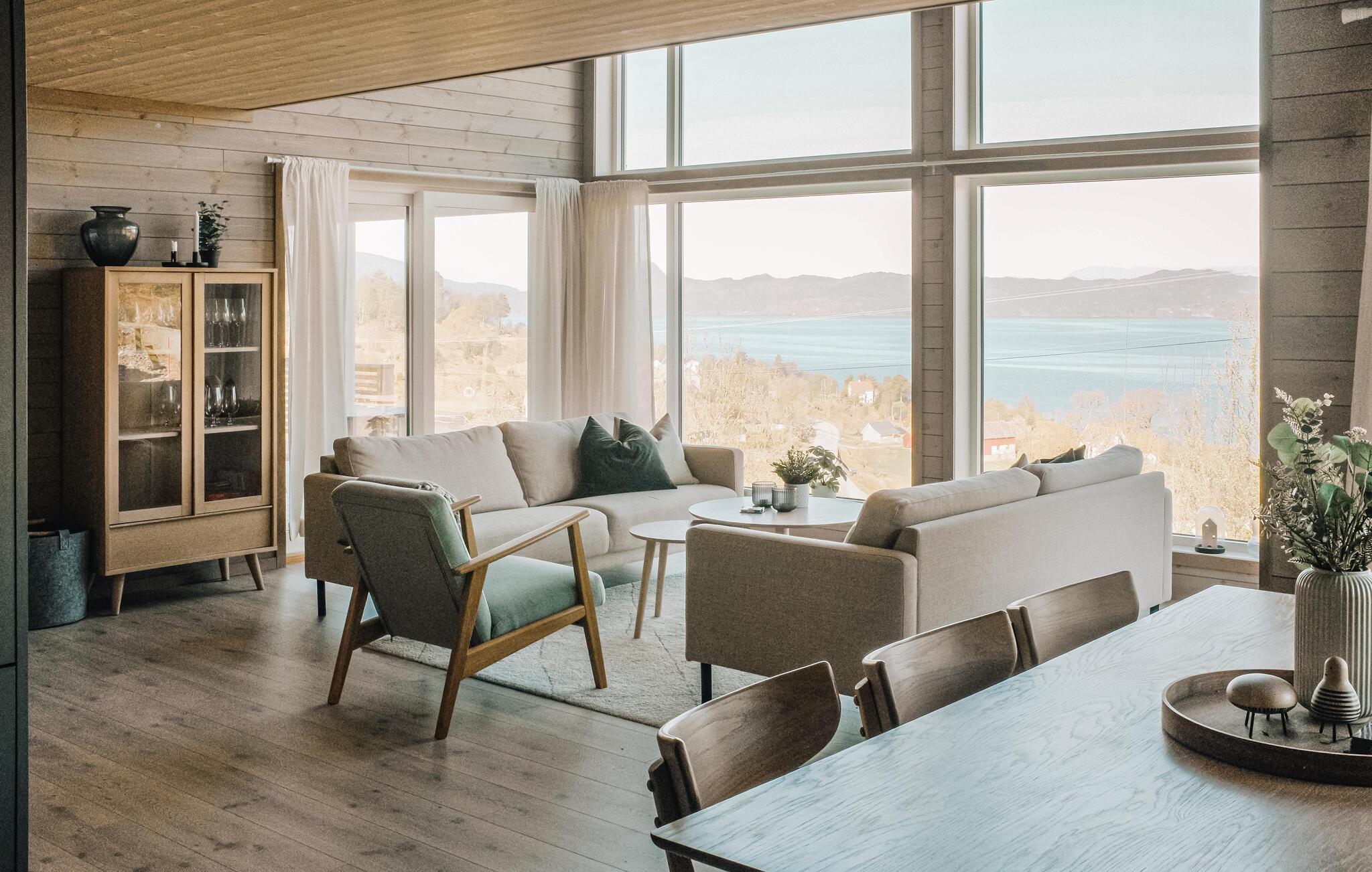 Glæd jer til dette rummelige og moderne feriehus med fjordpanorama.