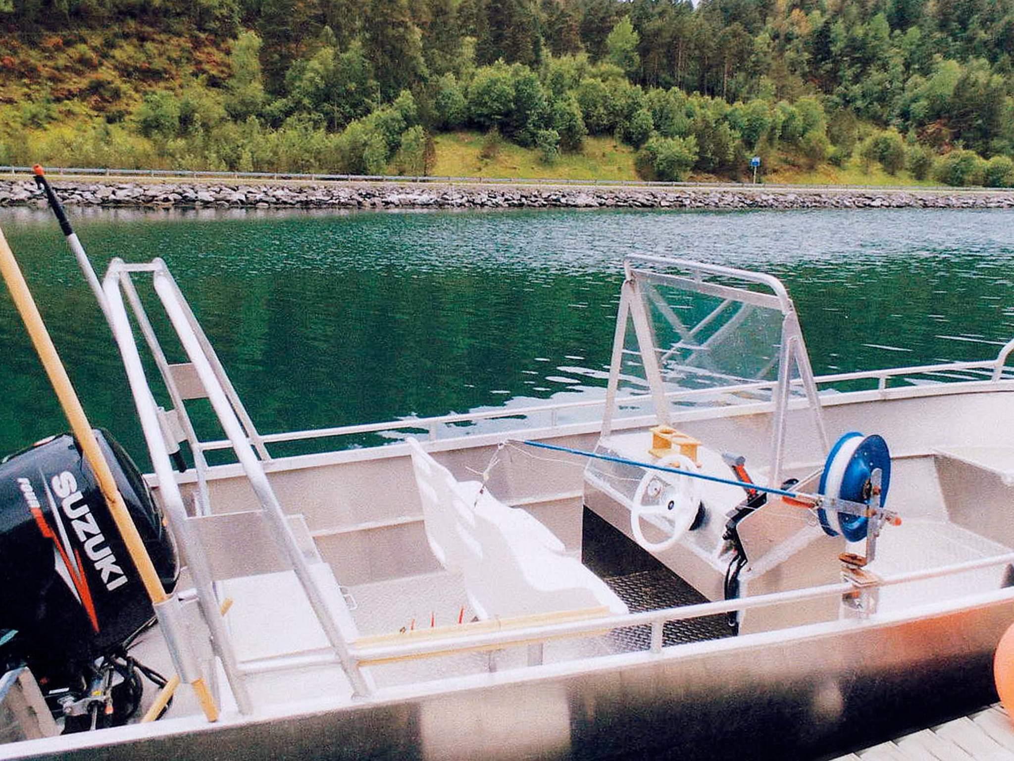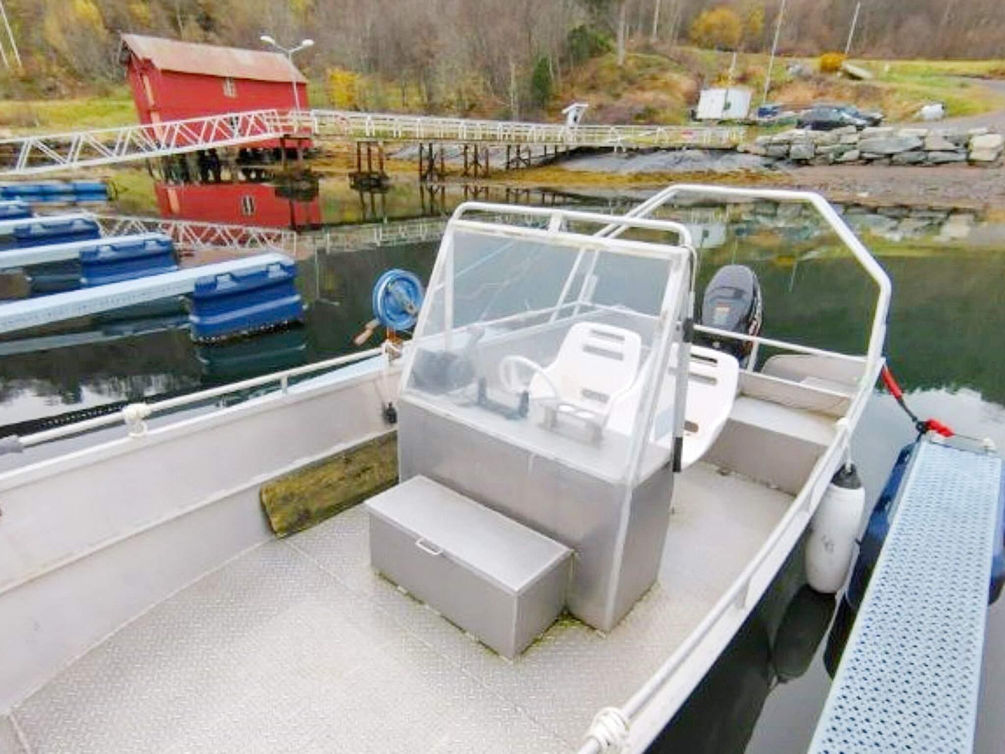 Båt til leie: 19 fots aliuminiumsbåt med 50 HK Suzuki påhengsmotor, styrekonsol/ekkolodd/GPS/kartplotter.