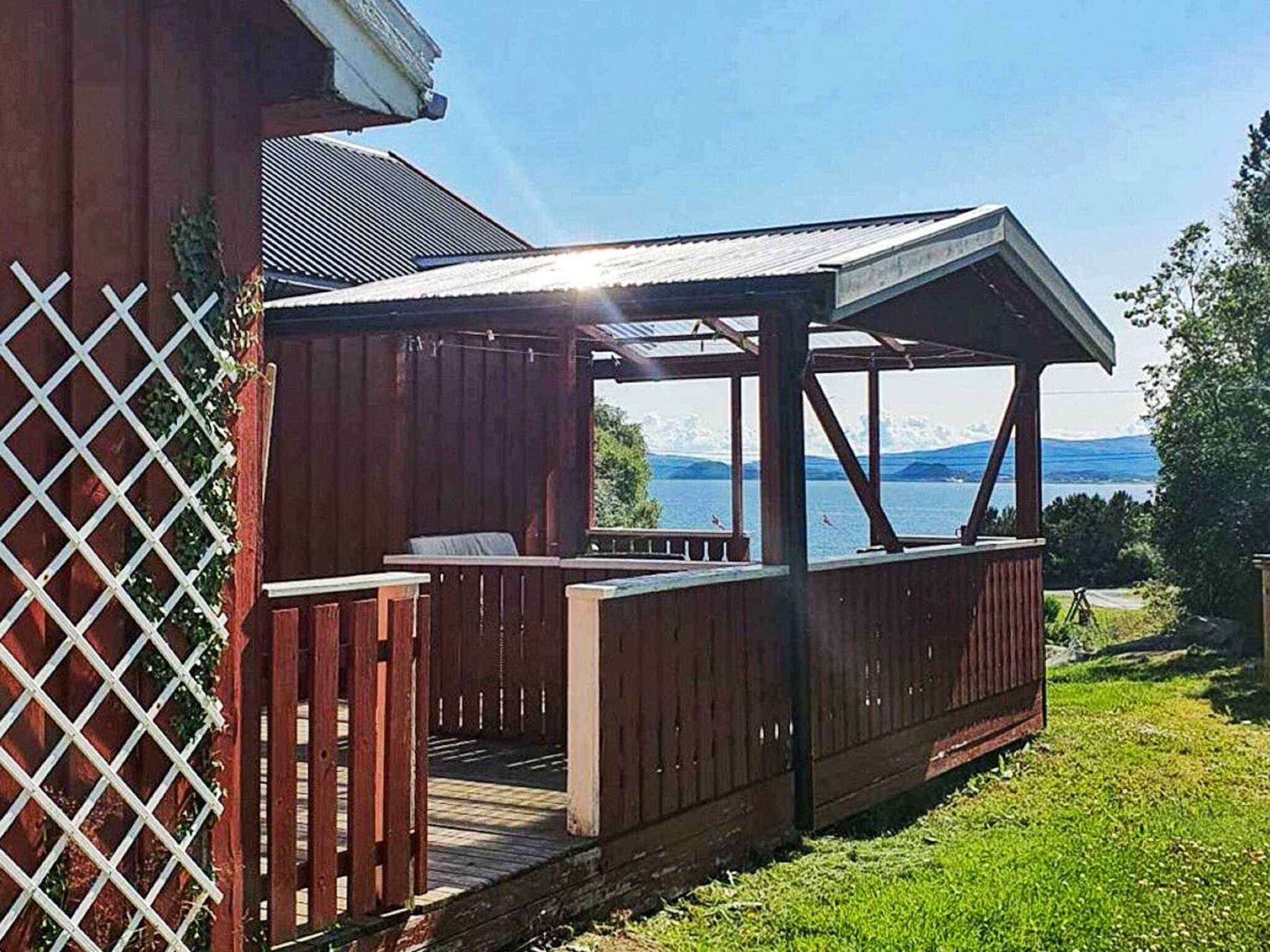 Feriehus med stor terrasse og fin utsikt mot fjorden.