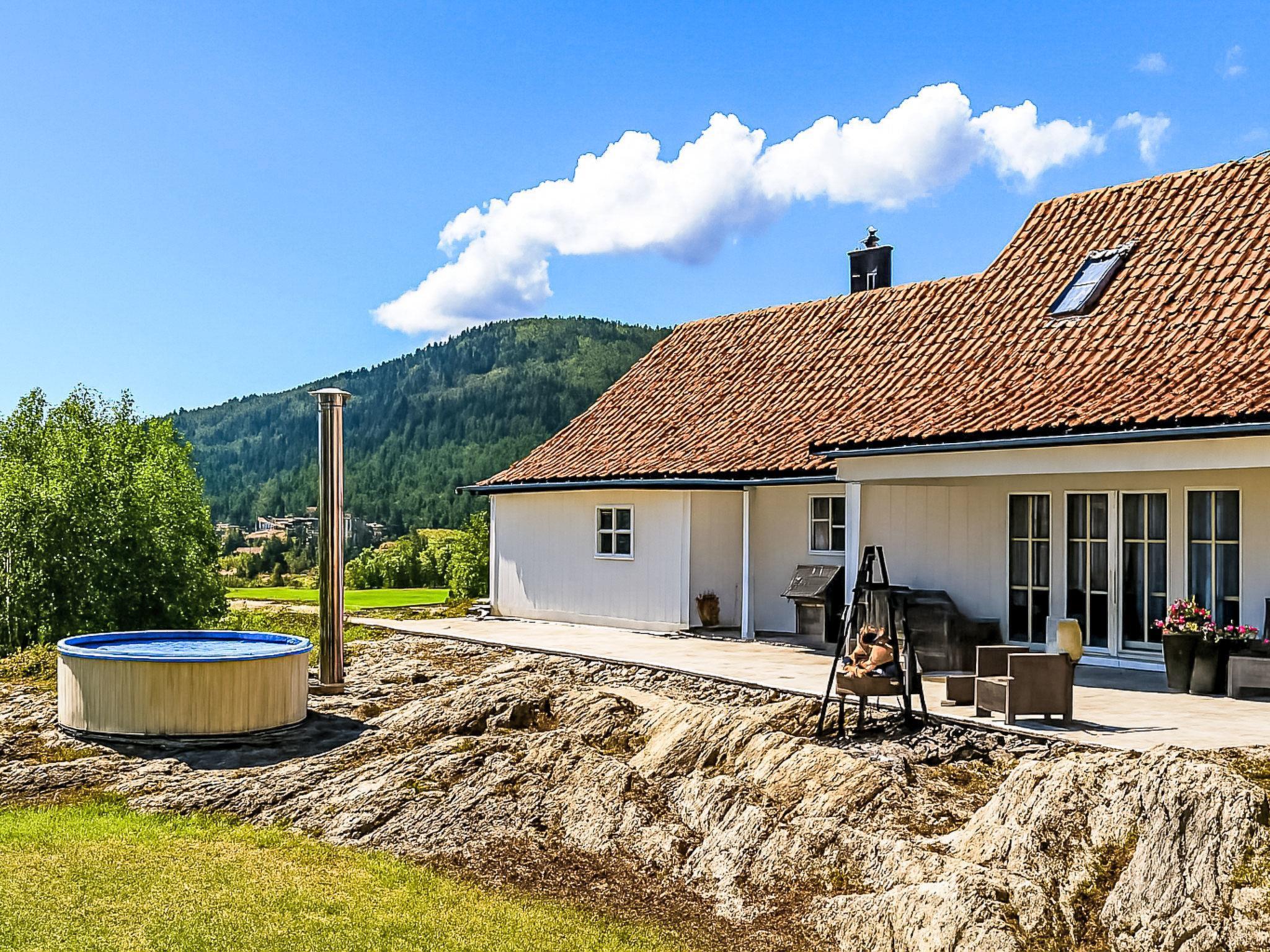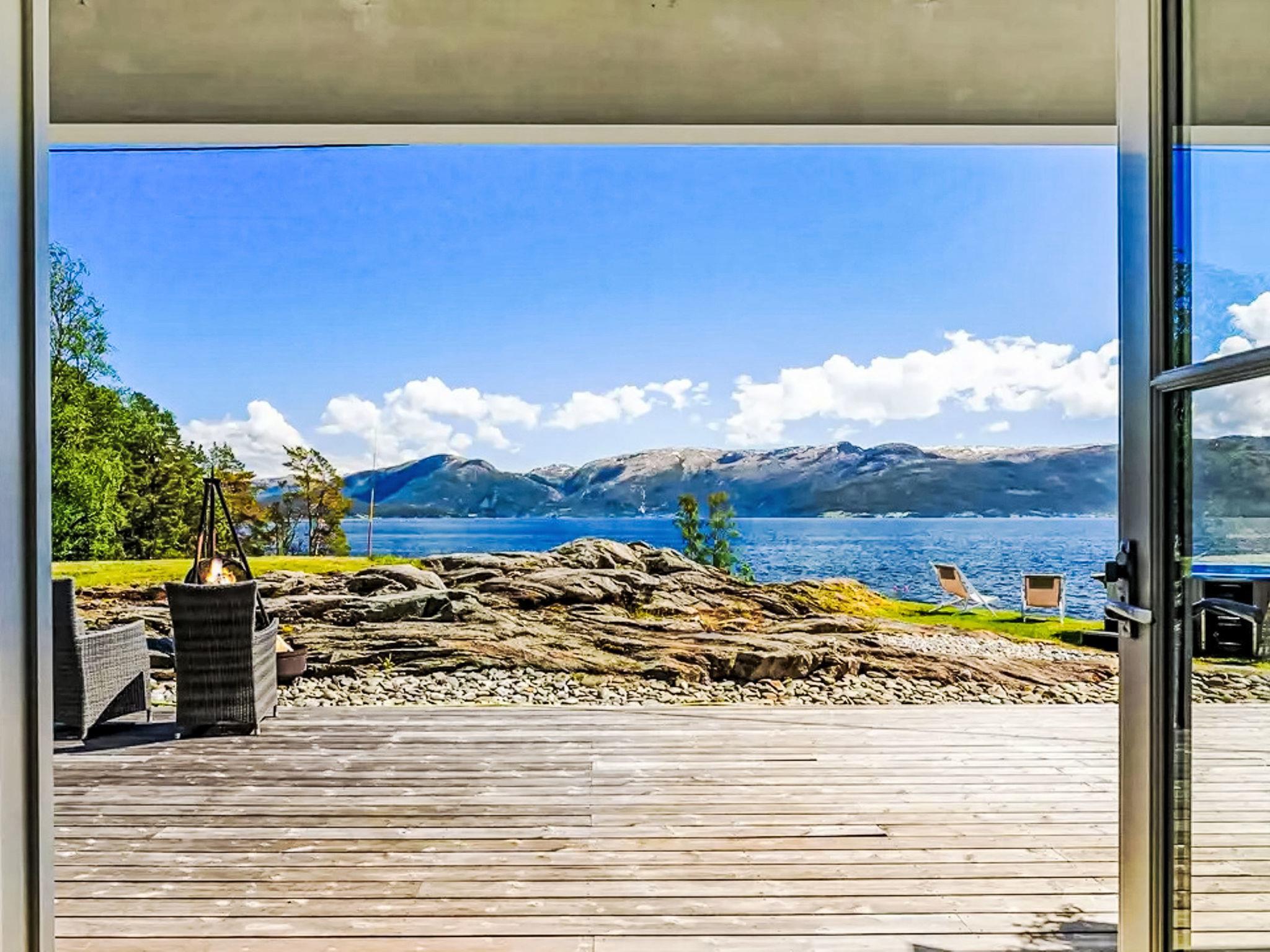 "Holmen", 7-room house 176 m2 on 2 levels. Beautiful and modern furnishings: large living/dining room with panoramic window with dining table, TV connection and digital TV. Exit to the garden, to the terrace. Large kitchen (oven, dishwasher, 4 ceramic glass hob hotplates, microwave, freezer, electric coffee machine). Shower/WC, sep. WC. Electric heating, floor heating. Upper floor: 4 rooms with sloping ceilings, each room with 1 double bed (150 cm, length 200 cm). 1 room with sloping ceilings with 1 double bed (140 cm, length 200 cm). Open gallery with sloping ceilings. Comfortable furnishings in the country house style. 2 large terraces, large, lawn. Terrace furniture, barbecue (portable), deck chairs, sitting area. Very beautiful panoramic view of the sea, the mountains, the countryside, the port and fjord. Facilities: washing machine, dryer, children's high chair. Internet (WiFi, free). Please note: non-smoking house. Smoke alarm, fire extinguisher. Freezer approx. 300 l.