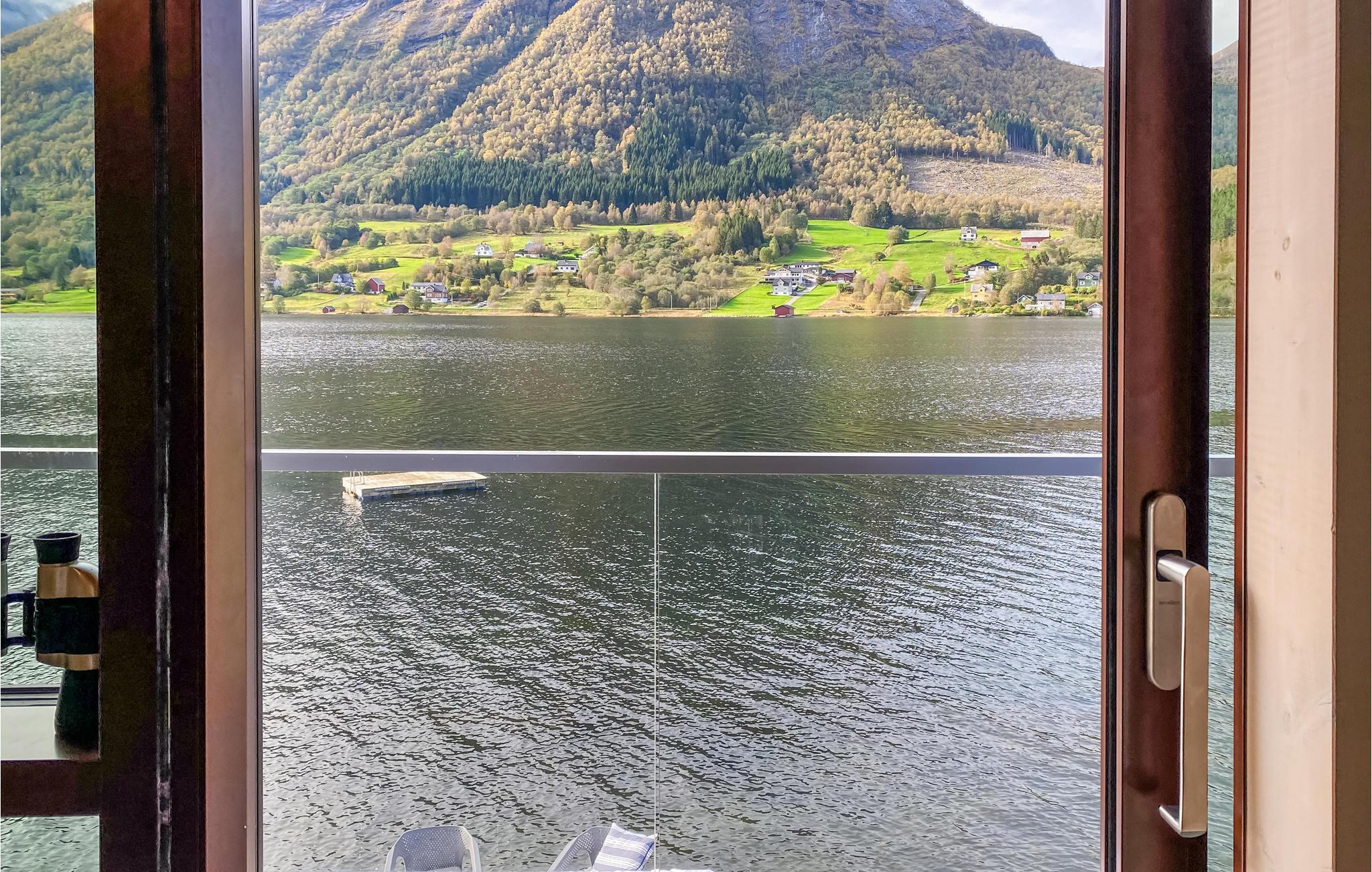 Dette moderne feriehus med en fantastisk beliggenhed direkte ved fjorden er et paradis for naturmennesker. De høje lofter og gulv-til-loft vinduer, som lukker lyset ind og bringer naturen direkte ind i stuen, formidler en luftig følelse af rum, ro og varme og udvisker grænsen mellem inde og ude på smukkeste vis. Det moderne køkken lægger op til at lave mad sammen med udsigt, mens de, der ikke kan lide at lave mad, kan slappe af i sofaerne ved siden af ??den knitrende ild i brændeovnen. Organiser sjove spilleaftener ved spisebordet og planlæg jeres udflugter. Nyd morgenmaden eller aftensmaden med udsigt over det smaragdgrønne fjordvand og eventyrbjergene og indånd den friske luft på træterrassen eller altanen. Gå ud af døren, over terrassen, og så står I lige nede ved den funklende fjord.