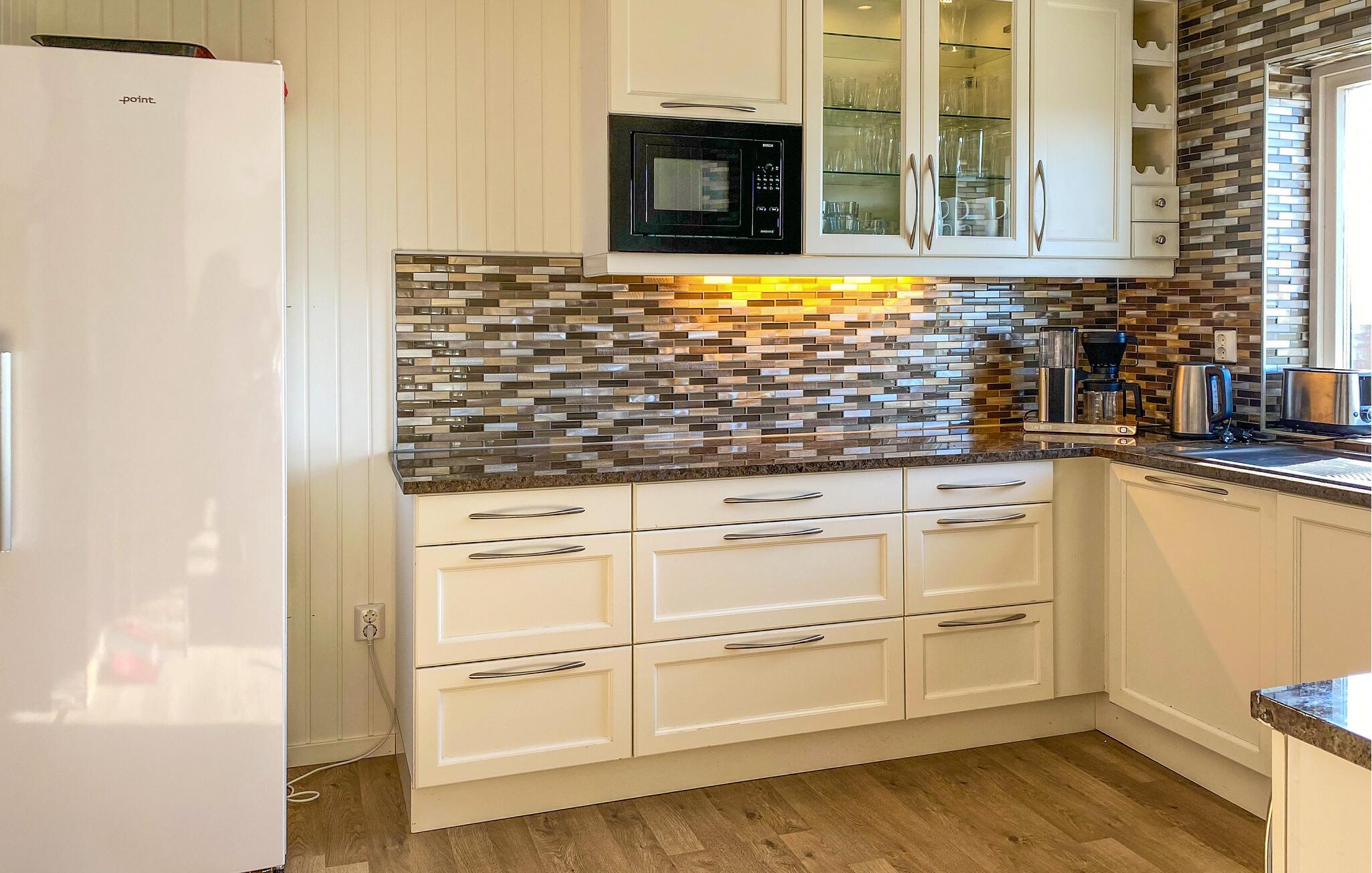 Med en fantastisk beliggenhed ved havet byder dette indbydende og rummelige hus jer velkommen. Det tilbyder en betagende udsigt fra sine lyse værelser og skaber komfortable rammer for jeres ferie, hvor I kan snuppe en frisk dukkert i havet når som helst og fiske året rundt. Efter en begivenhedsrig dag kan I finde jer selv til rette i en hjemlig atmosfære, spise sammen med en smuk udsigt og tilbringe hyggelige aftener ved den hyggelige knitrende pejs.