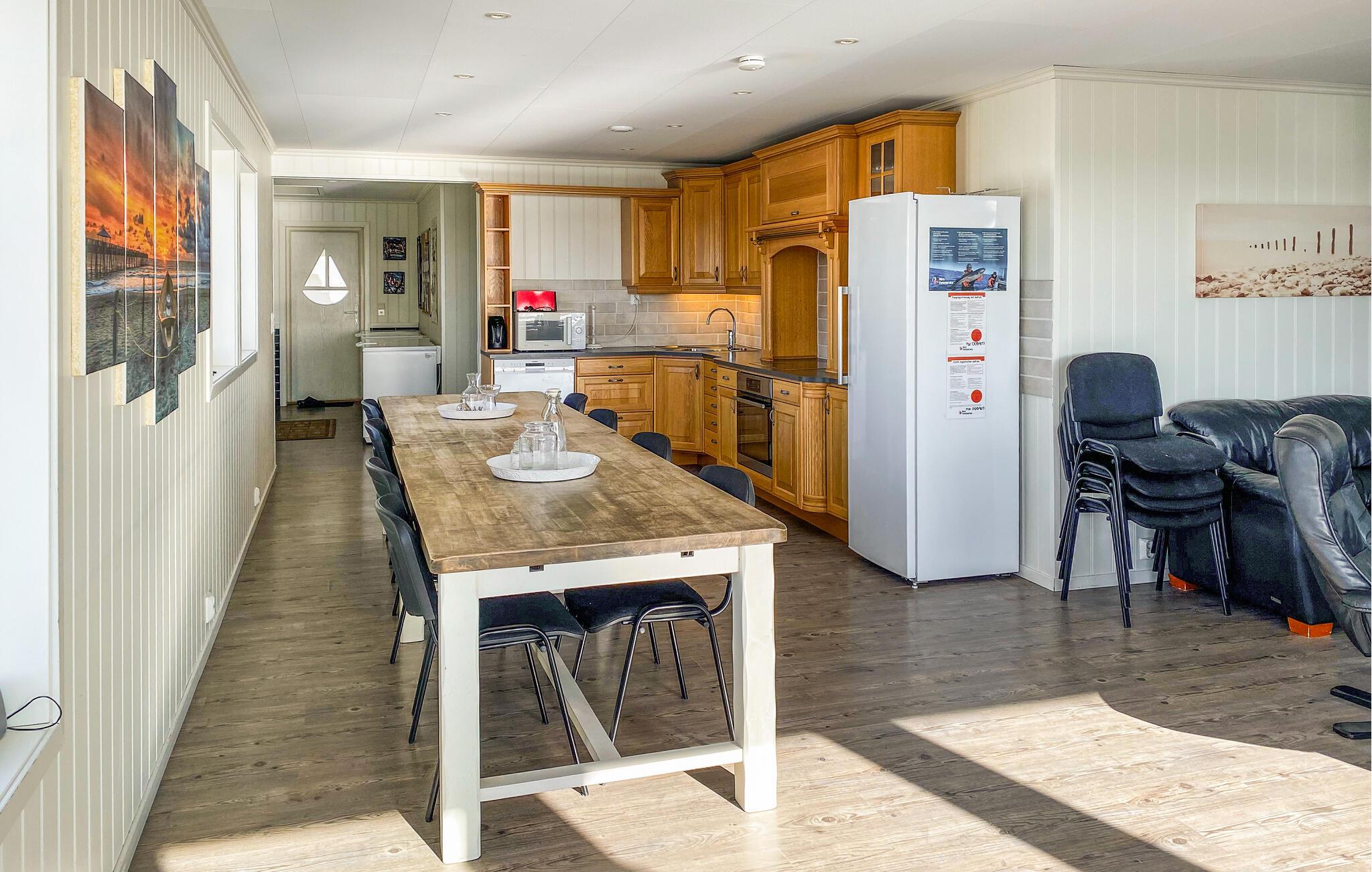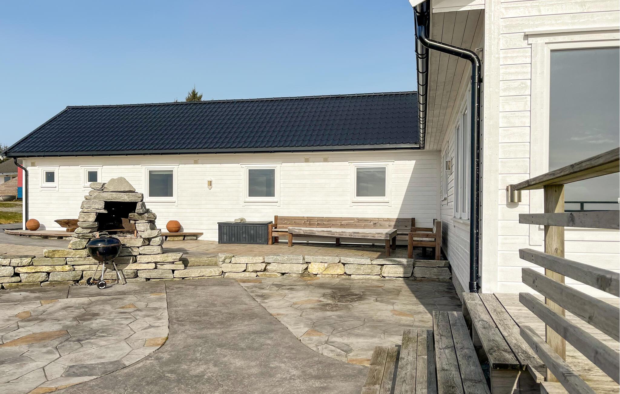 Med en fantastisk beliggenhed ved havet byder dette indbydende og rummelige hus jer velkommen. Det tilbyder en betagende udsigt fra sine lyse værelser og skaber komfortable rammer for jeres ferie, hvor I kan snuppe en frisk dukkert i havet når som helst og fiske året rundt. Efter en begivenhedsrig dag kan I finde jer selv til rette i en hjemlig atmosfære, spise sammen med en smuk udsigt og tilbringe hyggelige aftener ved den hyggelige knitrende pejs.