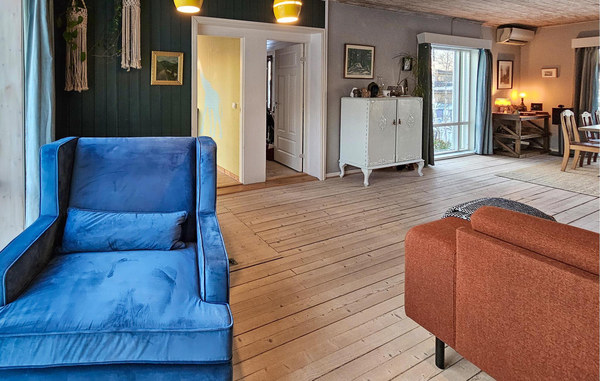 Idyllisk beliggende, nogle få skridt fra bade- og fiskemuligheder i fjorden, byder dette indbydende hus jer velkommen, hvor I kan tilbringe en afslappende tid i smukke naturomgivelser. En hyggelig opholdsoplevelse venter jer i de smagfulde værelser i tiltalende farver. Nyd den smukke udsigt, mens I laver mad sammen, og glæd jer til hyggelige aftener ved den hyggelige knitrende brændeovn.