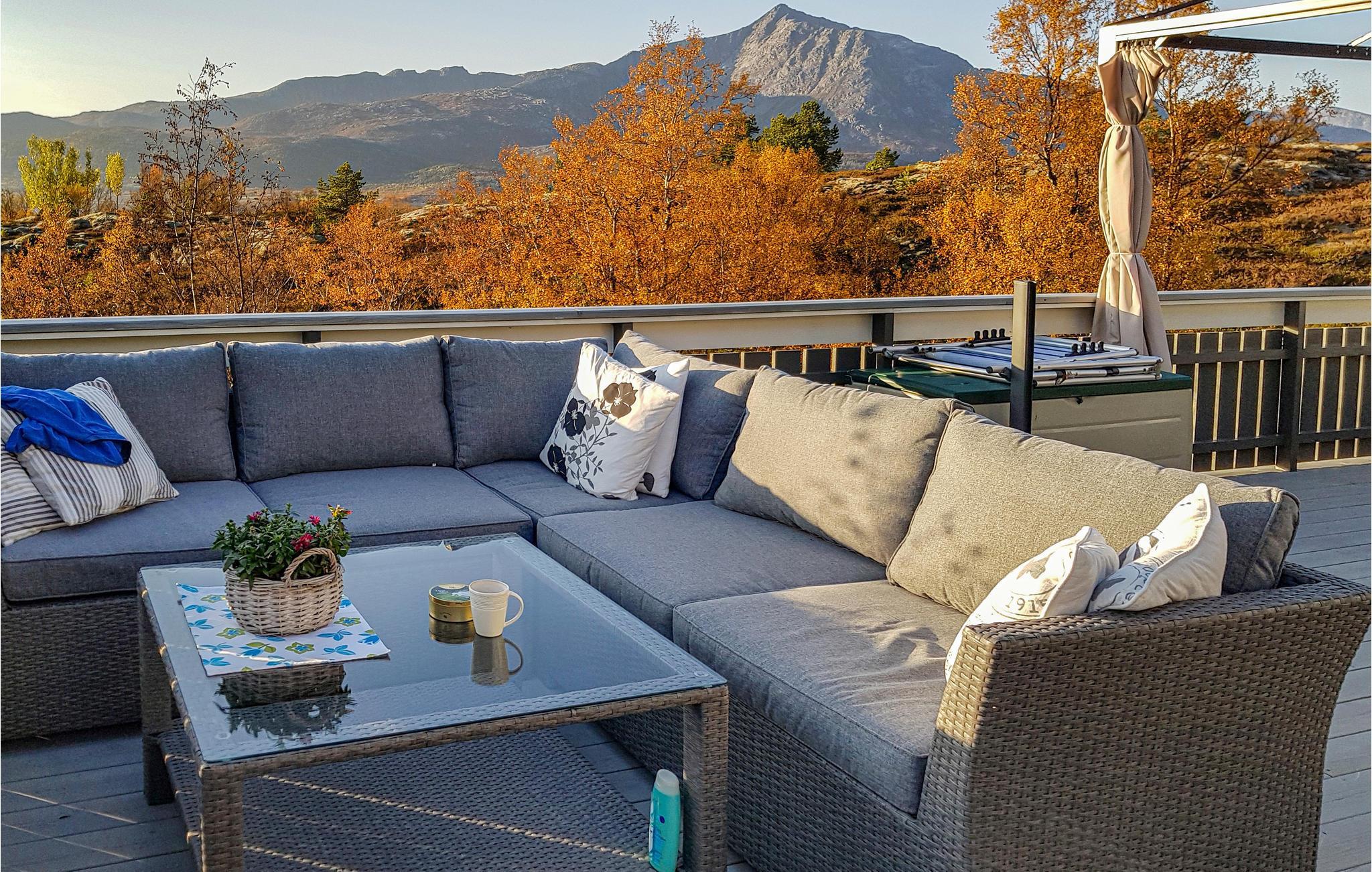 Feriehuset ligger på Tjeldøya og er meget idyllisk med udsigt til fjorden. Om sommeren er det en ren fornøjelse at bo her i den uberørte natur. Midt på ??sommeren kan I være heldige at have sol næsten døgnet rundt, om vinteren måske et par ugers mørke, og på en klar dag kan I være heldige at se nordlyset på himlen.