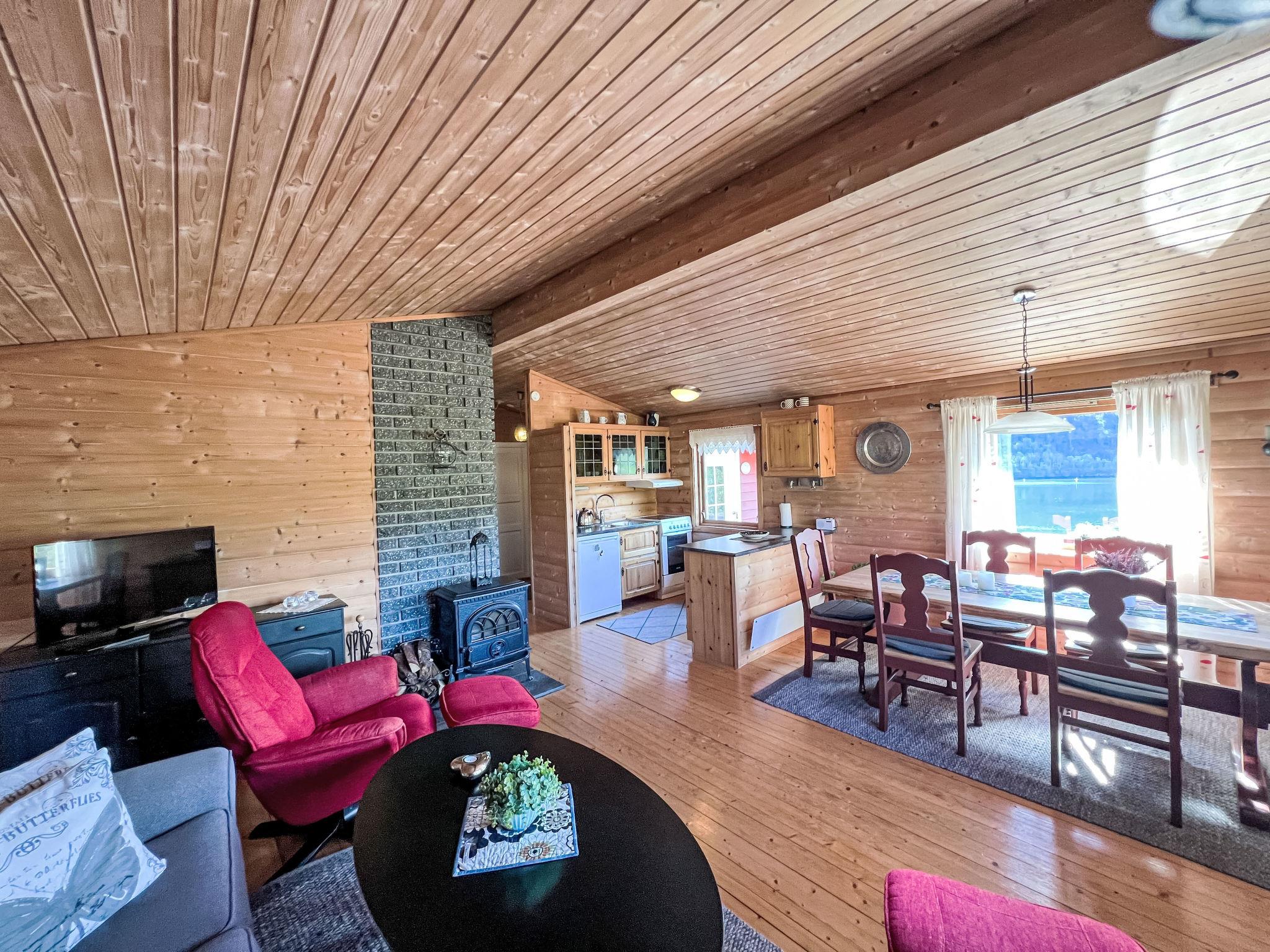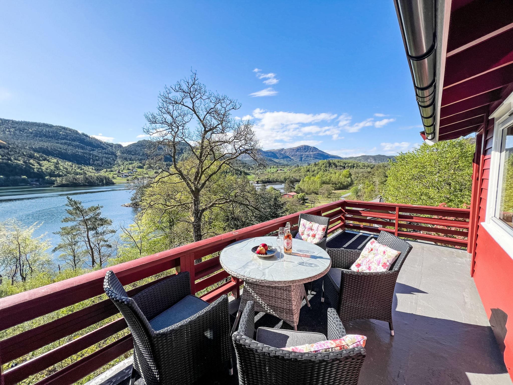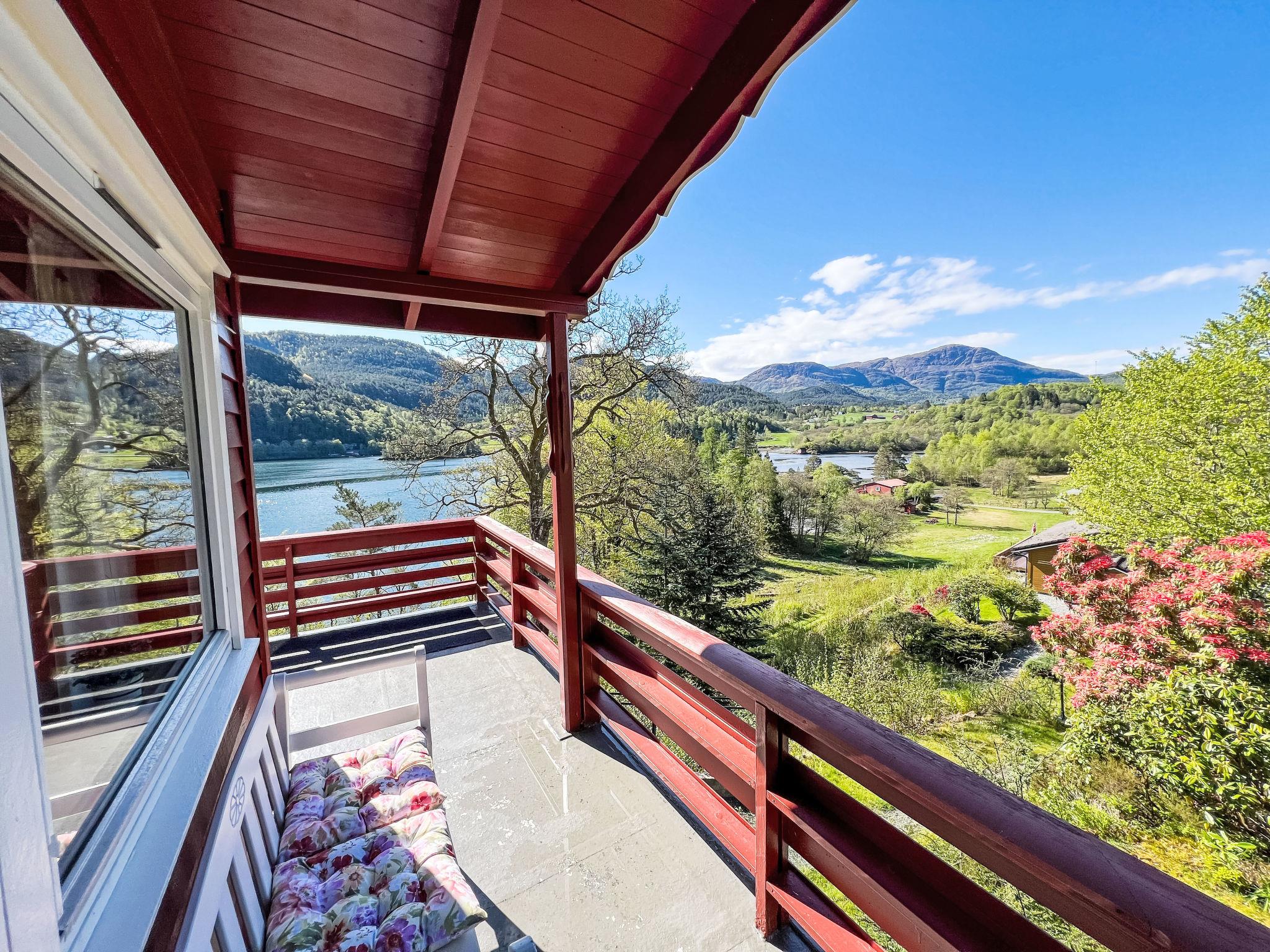 "Tussebu", 5-room house 63 m2. Tasteful and cosy furnishings: living/dining room with Scandinavian wood stove, dining table, TV and radio. Exit to the balcony. 1 room 5 m2 with 1 bed (90 cm, length 200 cm). 1 room 7 m2 with 1 double bed (150 cm, length 200 cm). 1 room 5 m2 with 1 bed (75 cm, length 200 cm). Small, open kitchen (oven, 4 ceramic glass hob hotplates, toaster, kettle, freezer, electric coffee machine). Exit to the balcony. Shower/WC. Electric heating, forced-air heating. On the lower ground floor: luggage room. Wooden floors. Comfortable furnishings in the country house style. Large balcony 20 m2, large garden. Terrace furniture, barbecue (portable), deck chairs, sitting area. Very beautiful panoramic view of the sea, the mountains, the countryside and fjord. Facilities: washing machine, iron. Internet (WiFi, free). Please note: non-smoking house. Maximum 1 pet/ dog allowed. Fire extinguisher. TV via fiber. Note: 10 steps up to the house. 924531169