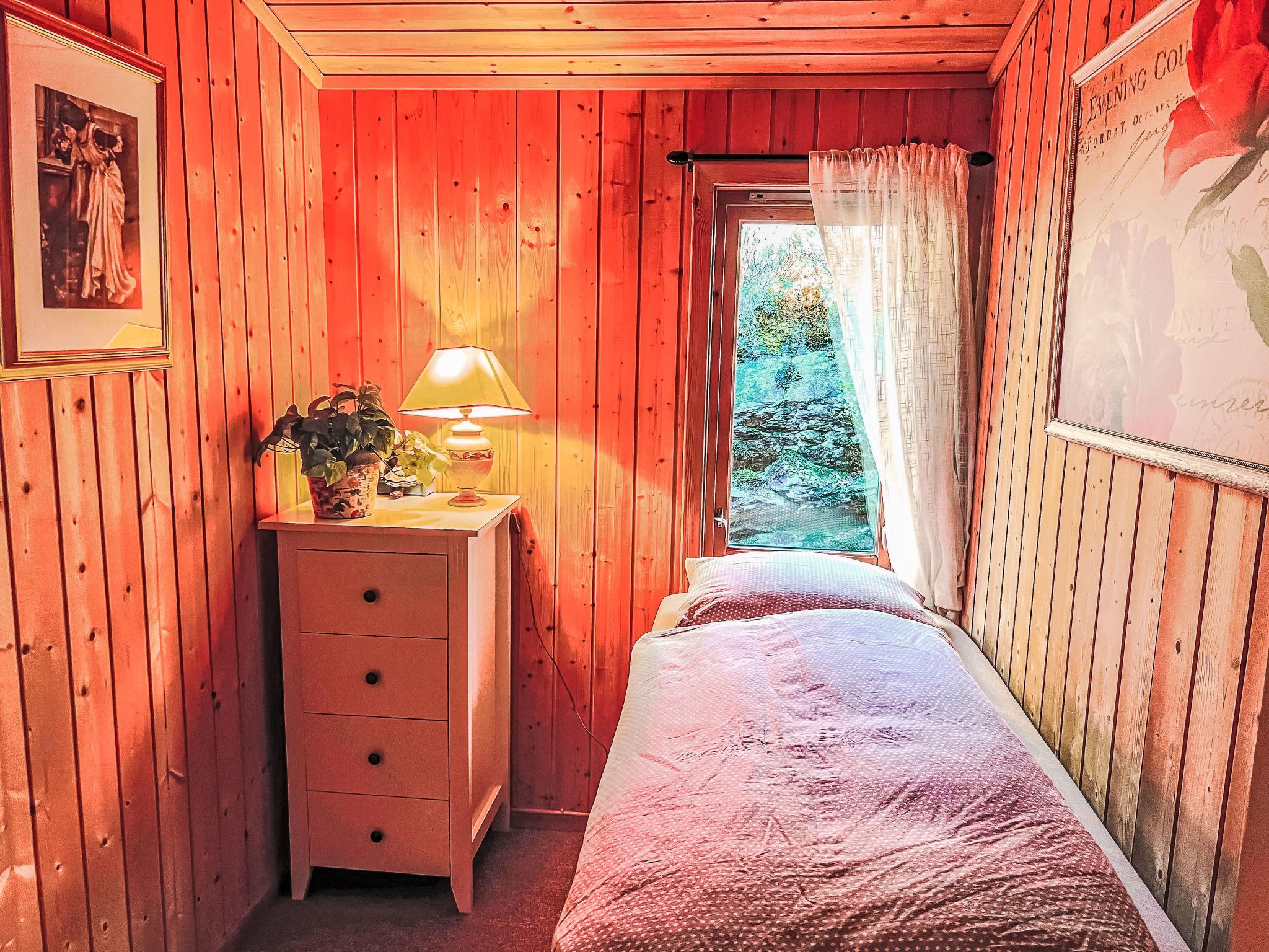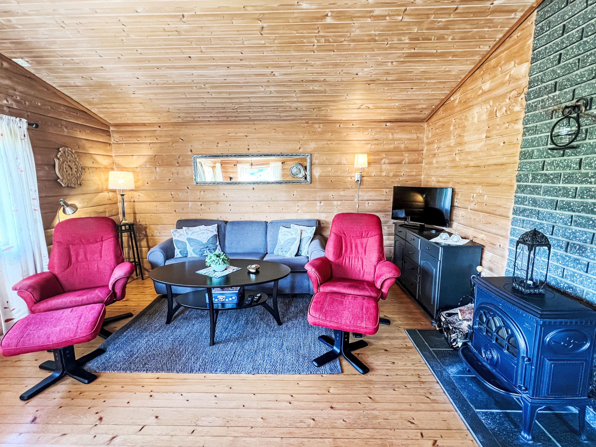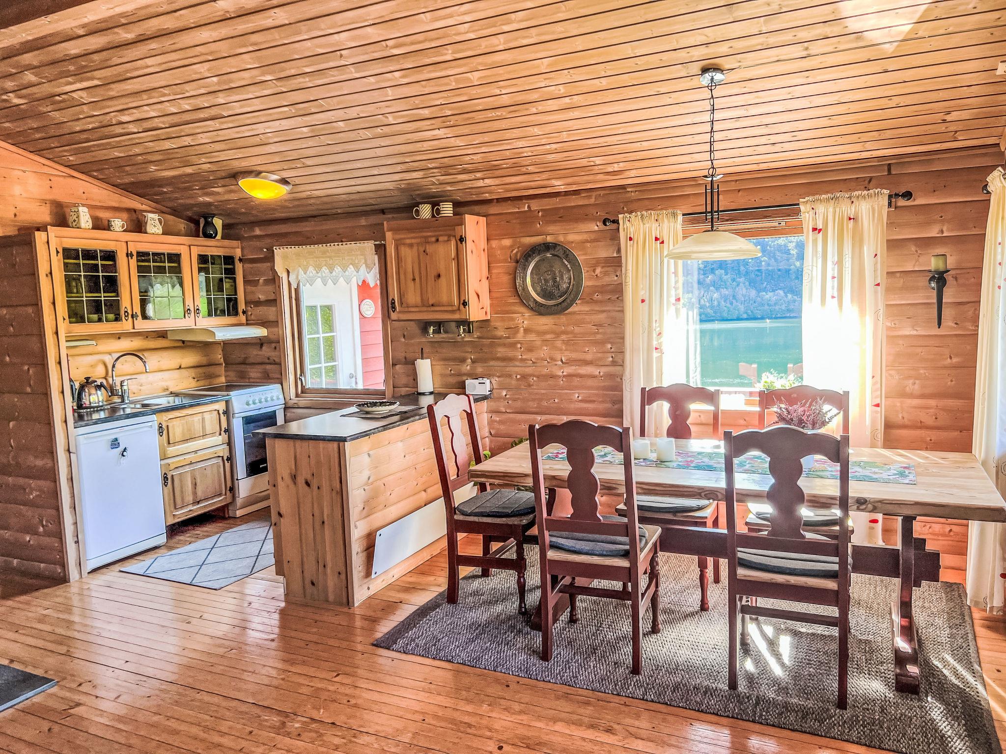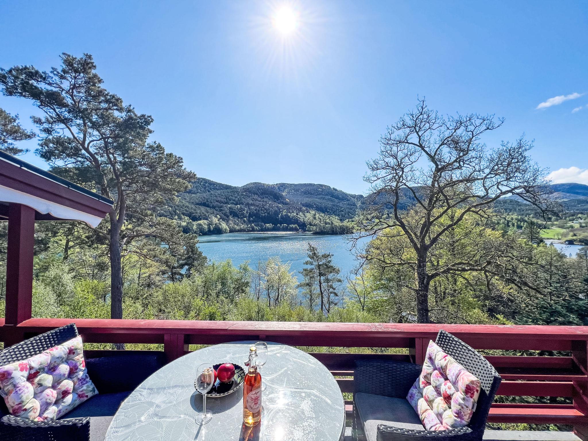"Tussebu", 5-room house 63 m2. Tasteful and cosy furnishings: living/dining room with Scandinavian wood stove, dining table, TV and radio. Exit to the balcony. 1 room 5 m2 with 1 bed (90 cm, length 200 cm). 1 room 7 m2 with 1 double bed (150 cm, length 200 cm). 1 room 5 m2 with 1 bed (75 cm, length 200 cm). Small, open kitchen (oven, 4 ceramic glass hob hotplates, toaster, kettle, freezer, electric coffee machine). Exit to the balcony. Shower/WC. Electric heating, forced-air heating. On the lower ground floor: luggage room. Wooden floors. Comfortable furnishings in the country house style. Large balcony 20 m2, large garden. Terrace furniture, barbecue (portable), deck chairs, sitting area. Very beautiful panoramic view of the sea, the mountains, the countryside and fjord. Facilities: washing machine, iron. Internet (WiFi, free). Please note: non-smoking house. Maximum 1 pet/ dog allowed. Fire extinguisher. TV via fiber. Note: 10 steps up to the house. 924531169