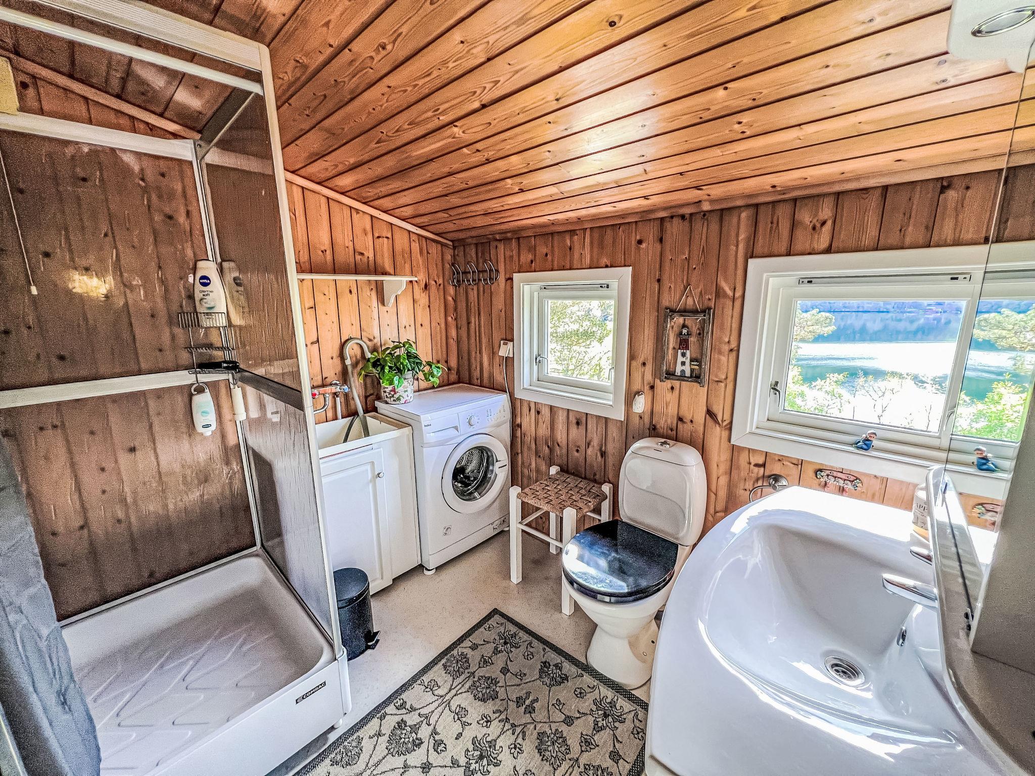 Cosy, rustic country house "Tussebu", built in 1987, renovated in 2015, surrounded by trees. 2 km from the centre of Lunde, 12 km from the centre of Våge, 60 km from the centre of Bergen, in a sunny position, 5 m from the edge of the forest, 100 m from the sea. Private: natural state property, beautiful, well-kept garden with lawn and trees. Motor boat (on order). Motor access (400 m via unmade road). Parking (for 2 cars) at the house. Shop 12 km, grocery 2 km, restaurant 12 km, bus stop "Malkenesvegen" 1.5 km, railway station "Bergen" 60 km, ferry "Våge" 12 km, sandy beach "Apalvika, Lundavegen" 3 km. Golf course (9 hole) 18 km, walking paths from the house 750 m, children's playground 12 km, fishing possibilities 250 m. Nearby attractions: Trolltunga Odda 100 km, Såto – the highest mountain on Tysnes 12 km, Boat rental and fishing guide in Uggdal 15 km. The boathouse is located about 250 m from the house, a nature trail through the forest down to the fjord.