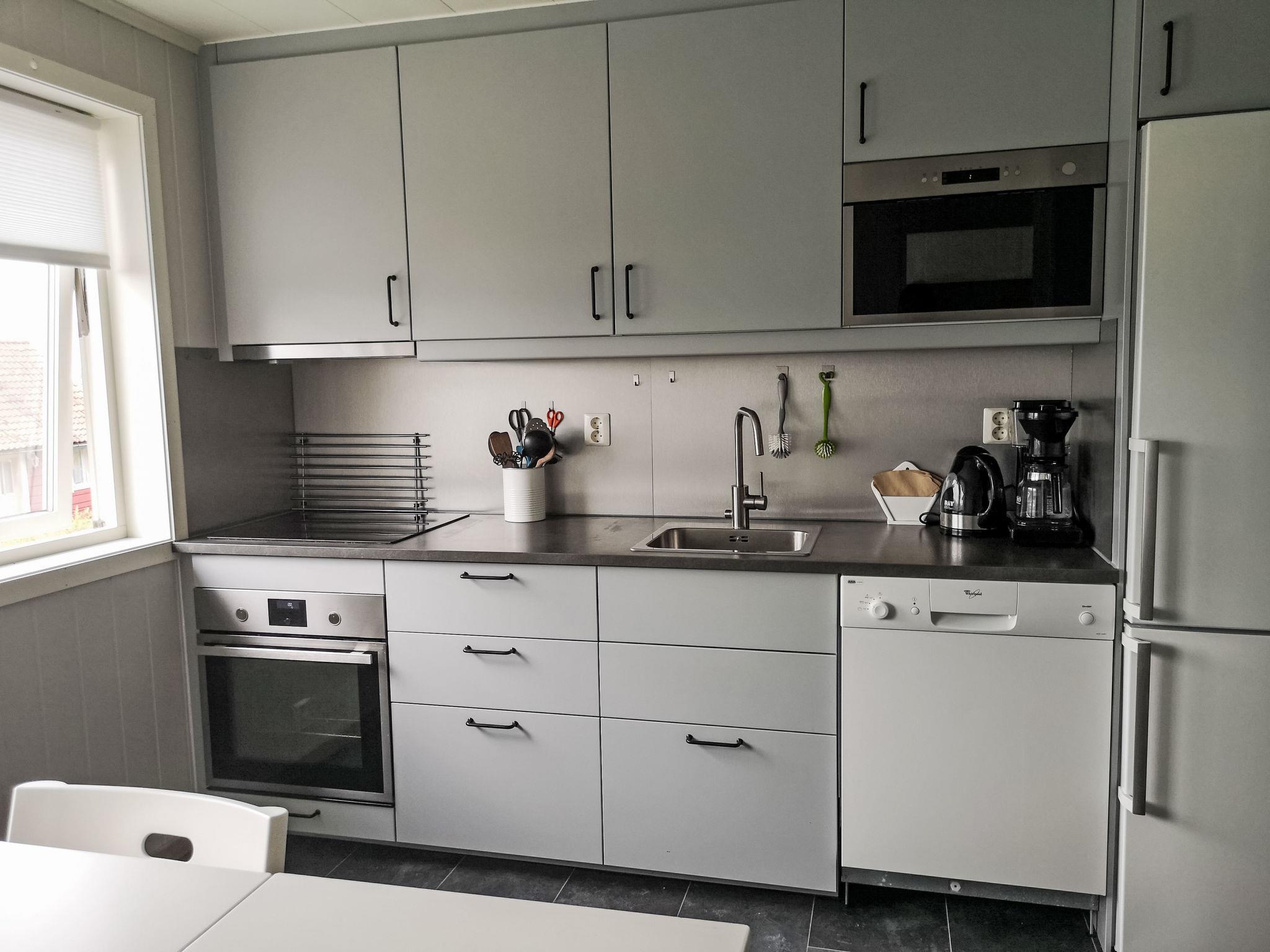 "Mjellhaugen", 5-room apartment 96 m2 on 1st floor. Partly renovated in 2018, practical furnishings: living/dining room with Scandinavian wood stove, dining table, satellite TV and international TV channels. 1 room with 1 double bed. 1 children's room with 3 sleeping facilities. 1 room with 1 bed (90 cm, length 200 cm). 1 room with 2 beds. Kitchen (4 hot plates, oven, dishwasher, microwave, freezer, electric coffee machine). Shower/WC. Electric heating. Patio. Barbecue (portable). View of the sea. Facilities: washing machine, baby cot. Internet (WiFi, free). Please note: maximum 2 pets/ dogs allowed. Smoke alarm. Freezer approx. 200 l. Bed layout is flexible. There are more sleeping options available than the maximum number of people allowed which may, however, not be exceeded. 924531169