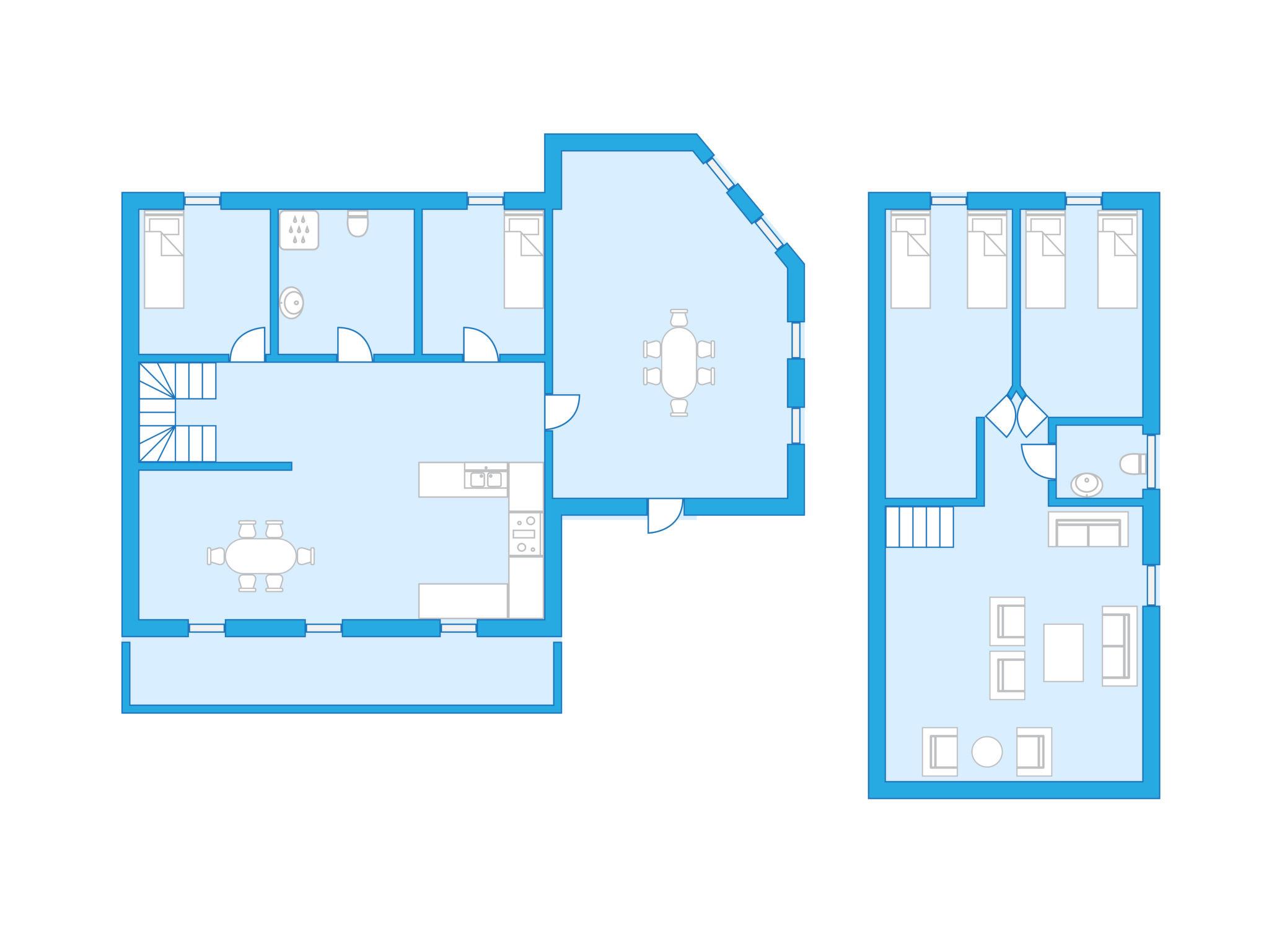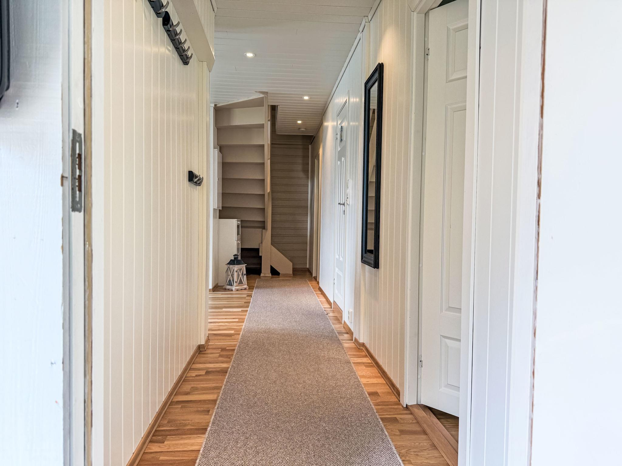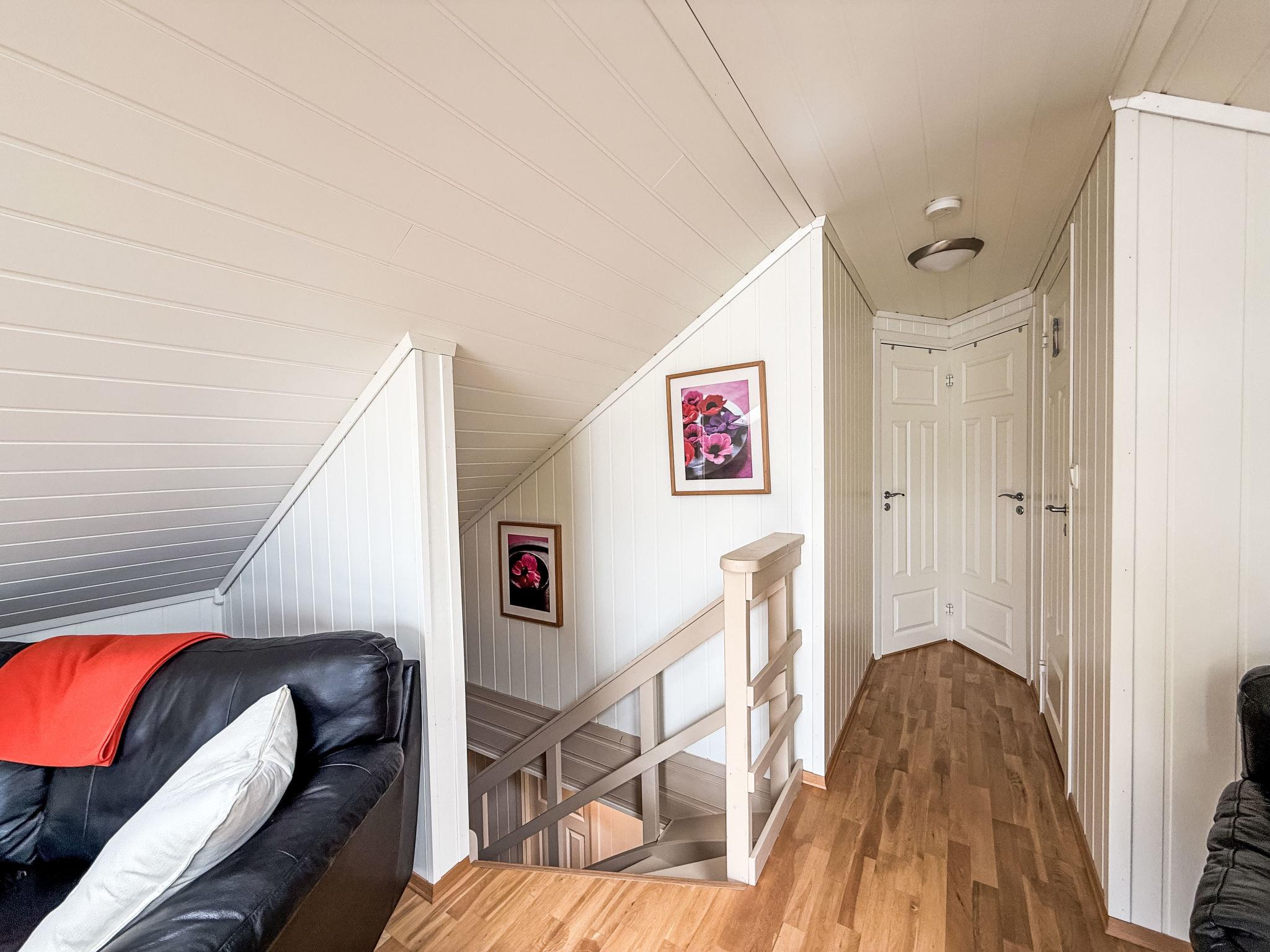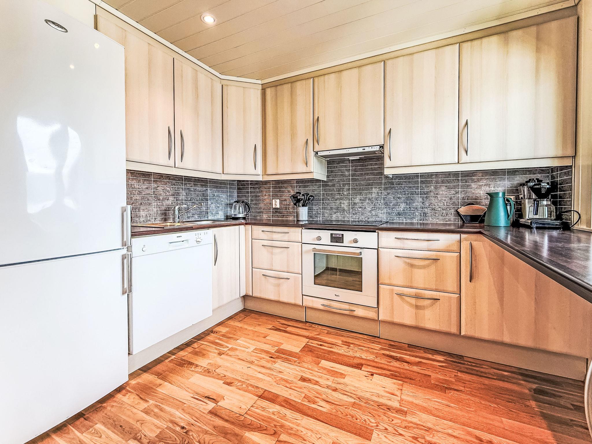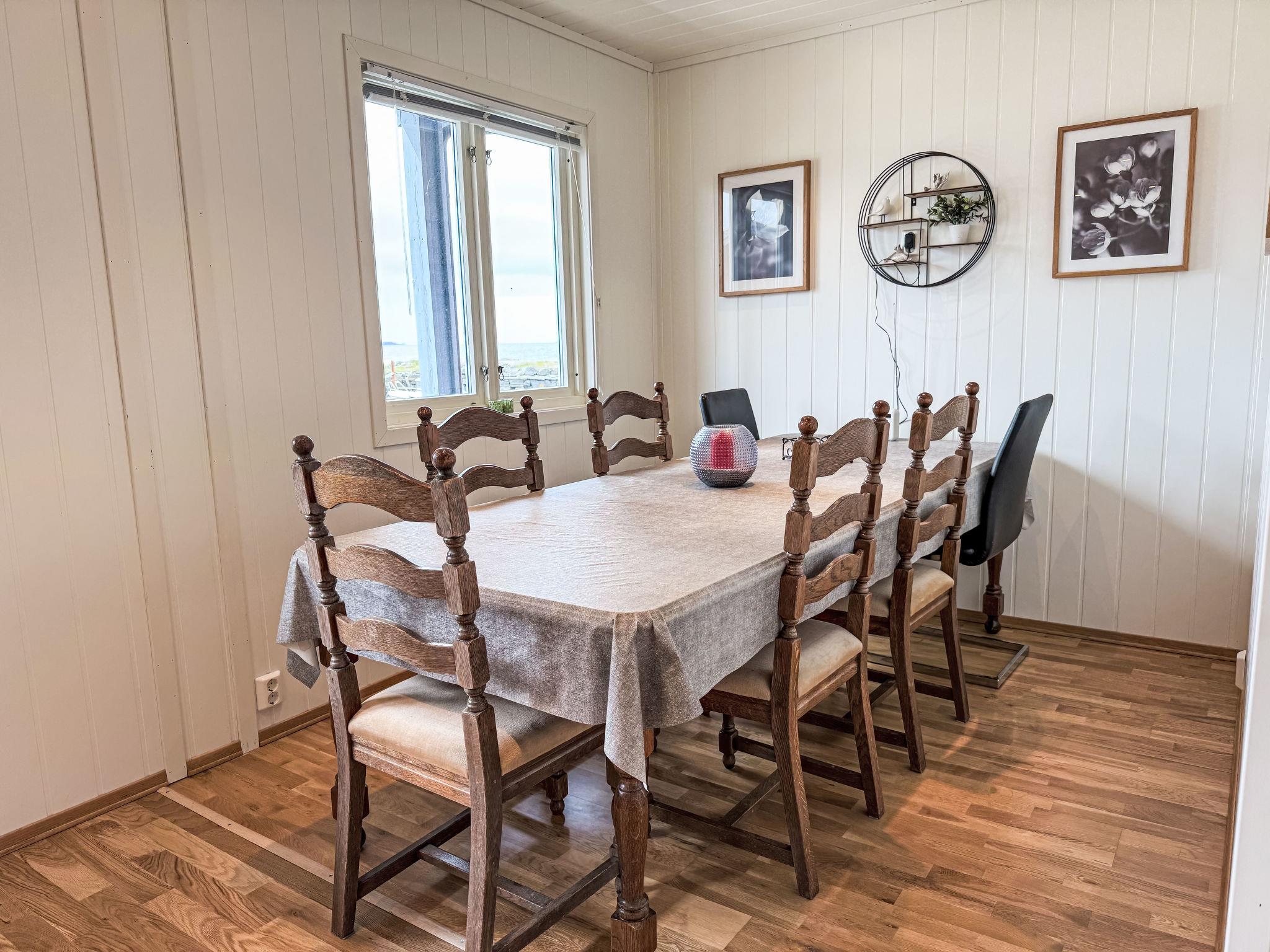 "Rorbu", 5-room house 112 m2 on 2 levels. Beautiful and tasteful furnishings: living room with winter garden. 2 rooms, each room with 1 bed (90 cm, length 200 cm). Kitchen (oven, dishwasher, 4 ceramic glass hob hotplates, toaster, kettle, microwave, freezer, electric coffee machine) with dining table. Shower/WC. Upper floor: living room with Scandinavian wood stove, satellite TV, international TV channels and DVD. 2 rooms, each room with 2 beds (90 cm, length 200 cm). Sep. WC. Electric heating, underfloor heating. Parquet floors. Terrace 30 m2 partly roofed. Terrace furniture, barbecue. View of the river. Facilities: washing machine. Internet (WiFi, free). Please note: maximum 1 pet/ dog allowed. Smoke alarm, fire extinguisher. 924531169