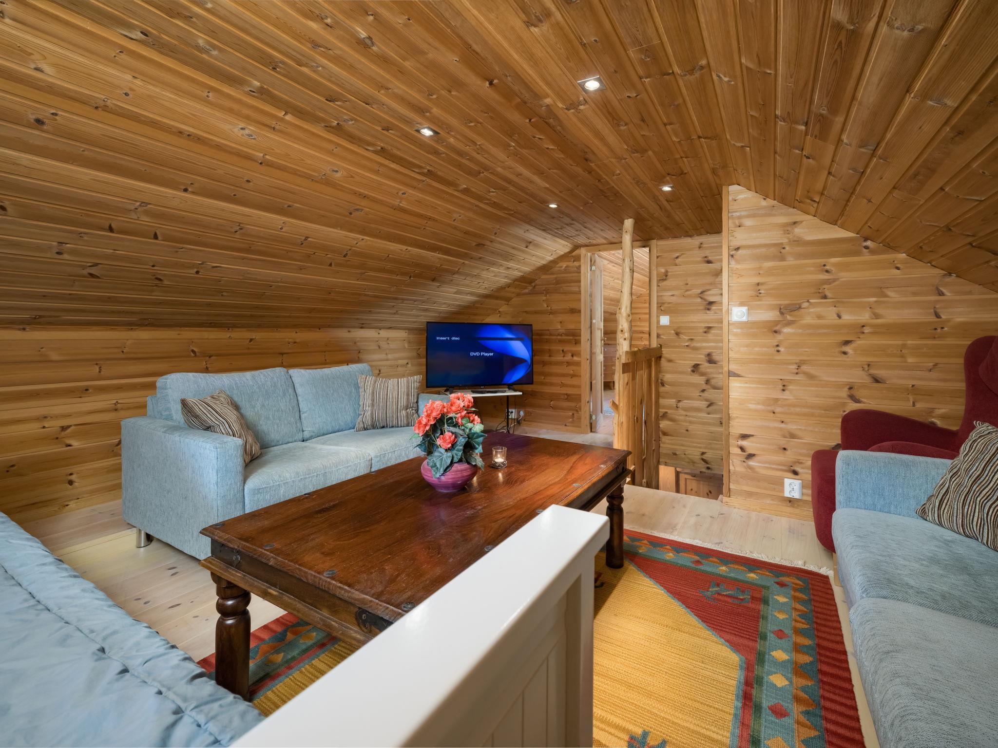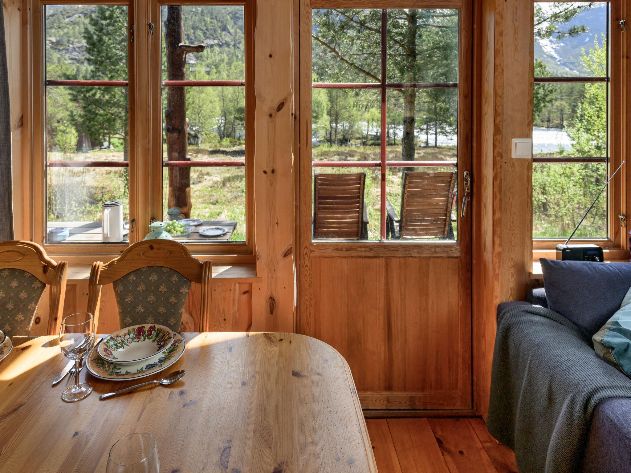 "Myravatnet", 4-room house 98 m2 on 2 levels. Cosy and wooden furniture furnishings: living/dining room with Scandinavian wood stove, dining table, satellite TV, international TV channels and DVD. Exit to the terrace. 2 rooms, each room with 1 double bed (150 cm, length 200 cm). Open kitchen (4 hot plates, oven, dishwasher, toaster, kettle, freezer, electric coffee machine). Shower/WC, Sauna. Upper floor: (steep stair) open gallery with 1 double bed. Electric heating, underfloor heating. Terrace roofed. Terrace furniture, barbecue (portable). View of the lake. Facilities: washing machine. Please note: maximum 2 pets/ dogs allowed. Smoke alarm, fire extinguisher. Freezer approx. 60 l. Instead of an enclosed bedroom, some sleeping areas are located in an open-plan area (gallery, alcove, etc.). 924531169