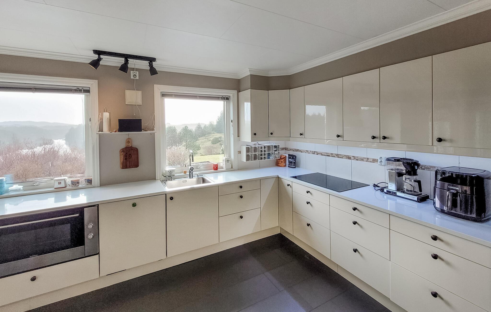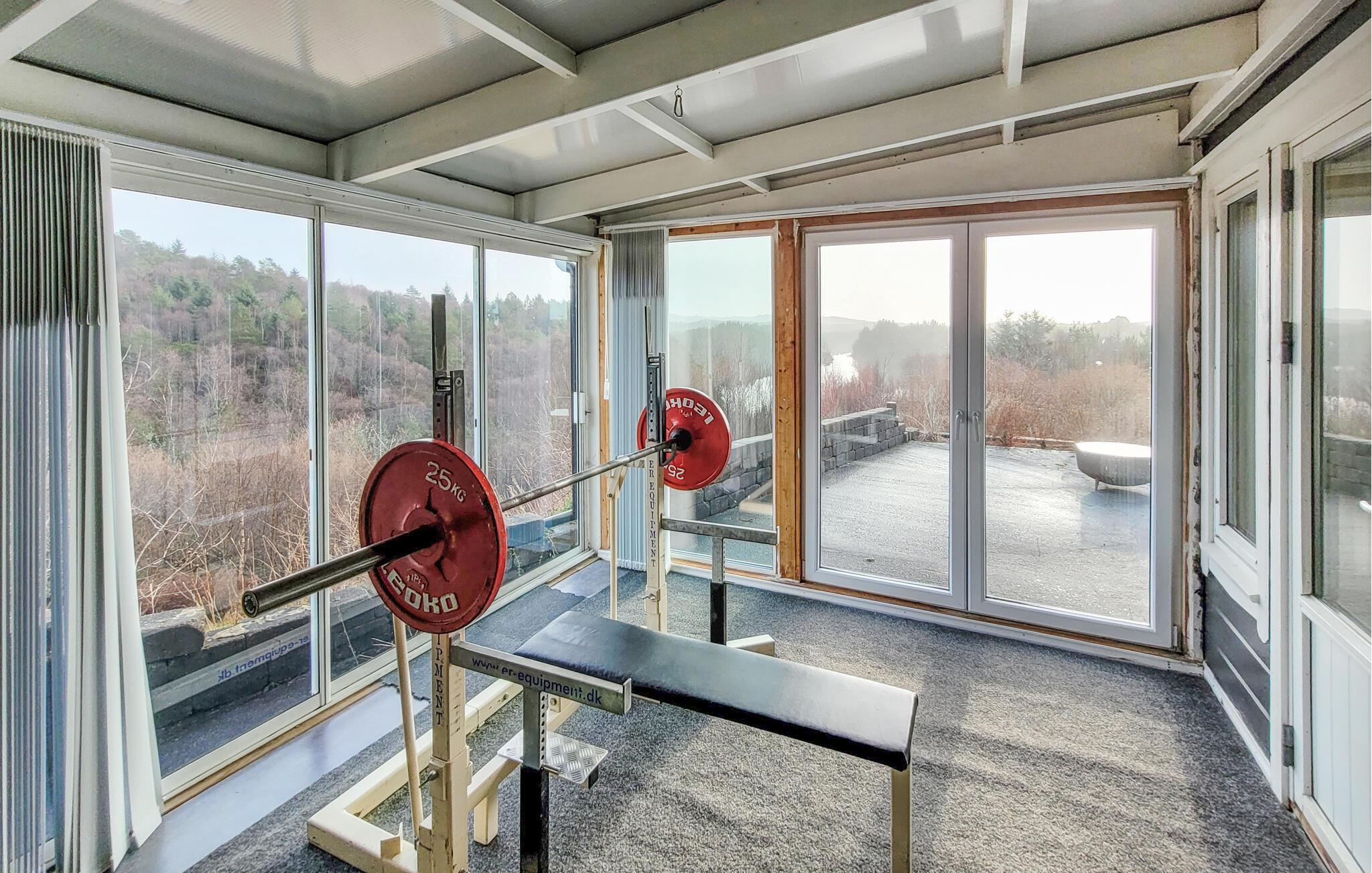 Dette feriehus venter på jeres besøg i den vestlige del af Sveio-halvøen. Gør jer selv komfortabel i den moderne atmosfære og glæd jer til hyggelige aftener med god mad i det komfortable køkken-alrum. Her giver de store vinduer en smuk udsigt over fjorden, både mens I laver mad og spiser. Hvis I gerne vil træne i løbet af jeres ferie, har huset et veludstyret fitnessrum, også med en vidunderlig udsigt. Om morgenen kan I gå ud på balkonen eller terrassen og indånde den friske morgenluft. I forhaven finder I blåbærhække, så I kan plukke blåbær direkte fra haven i sæsonen.